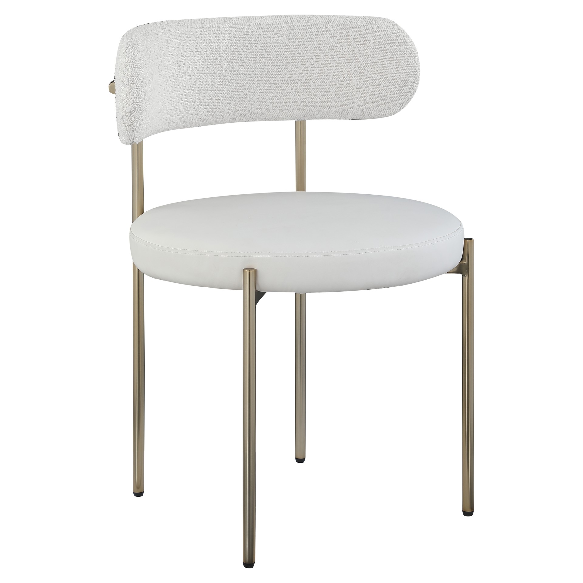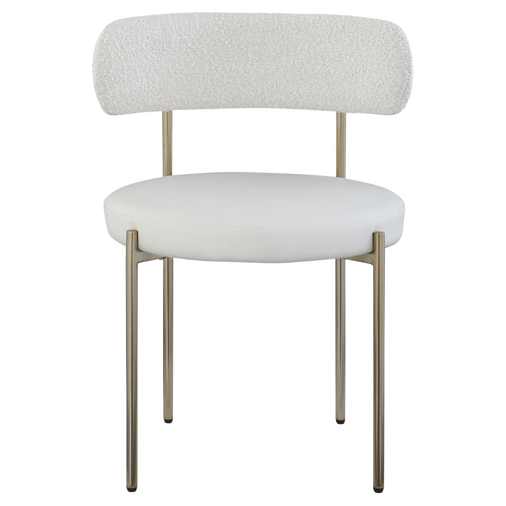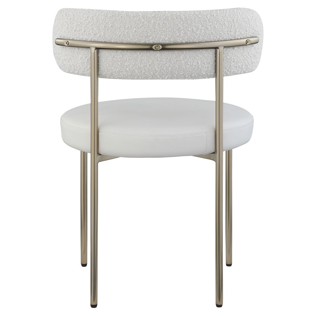 Give your dining room a modern boost with this Beacon vegan leather and boucle fabric dining chair.