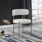 This pretty chair has the contemporary design elements you're looking for, from its curvy back to its thickly padded seat and brushed brass-finished metal frame.