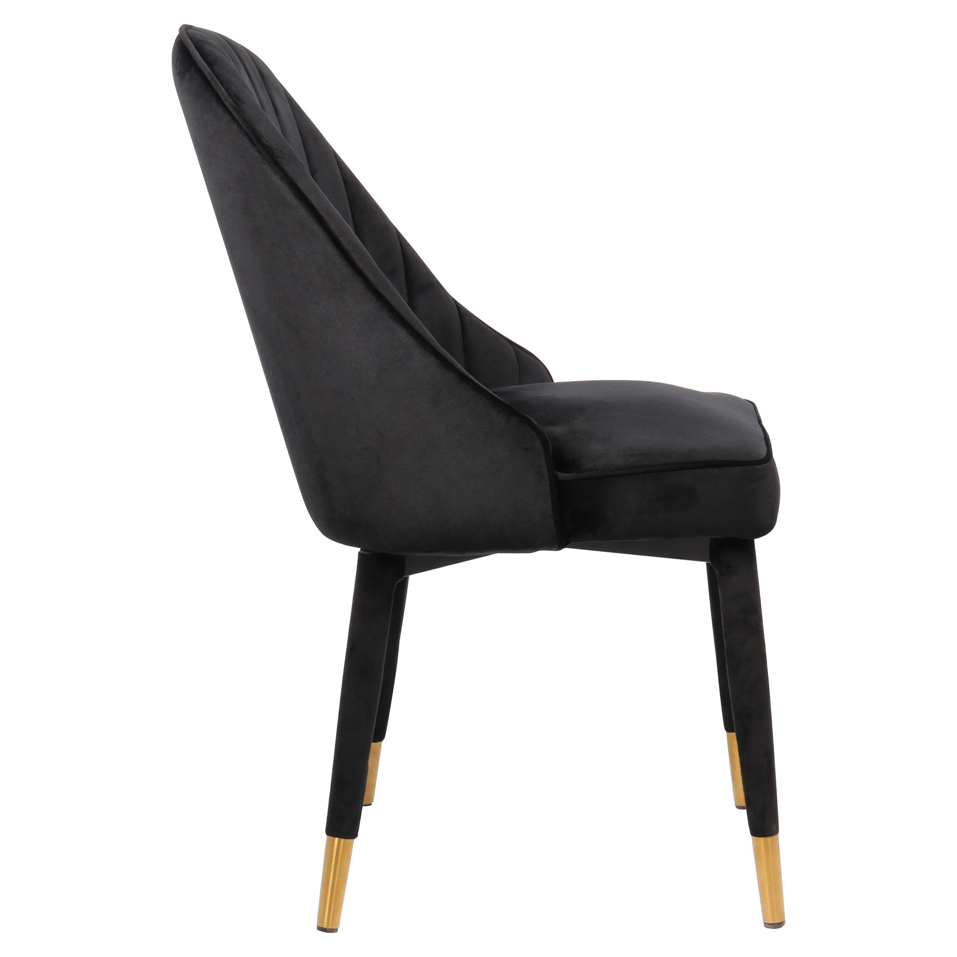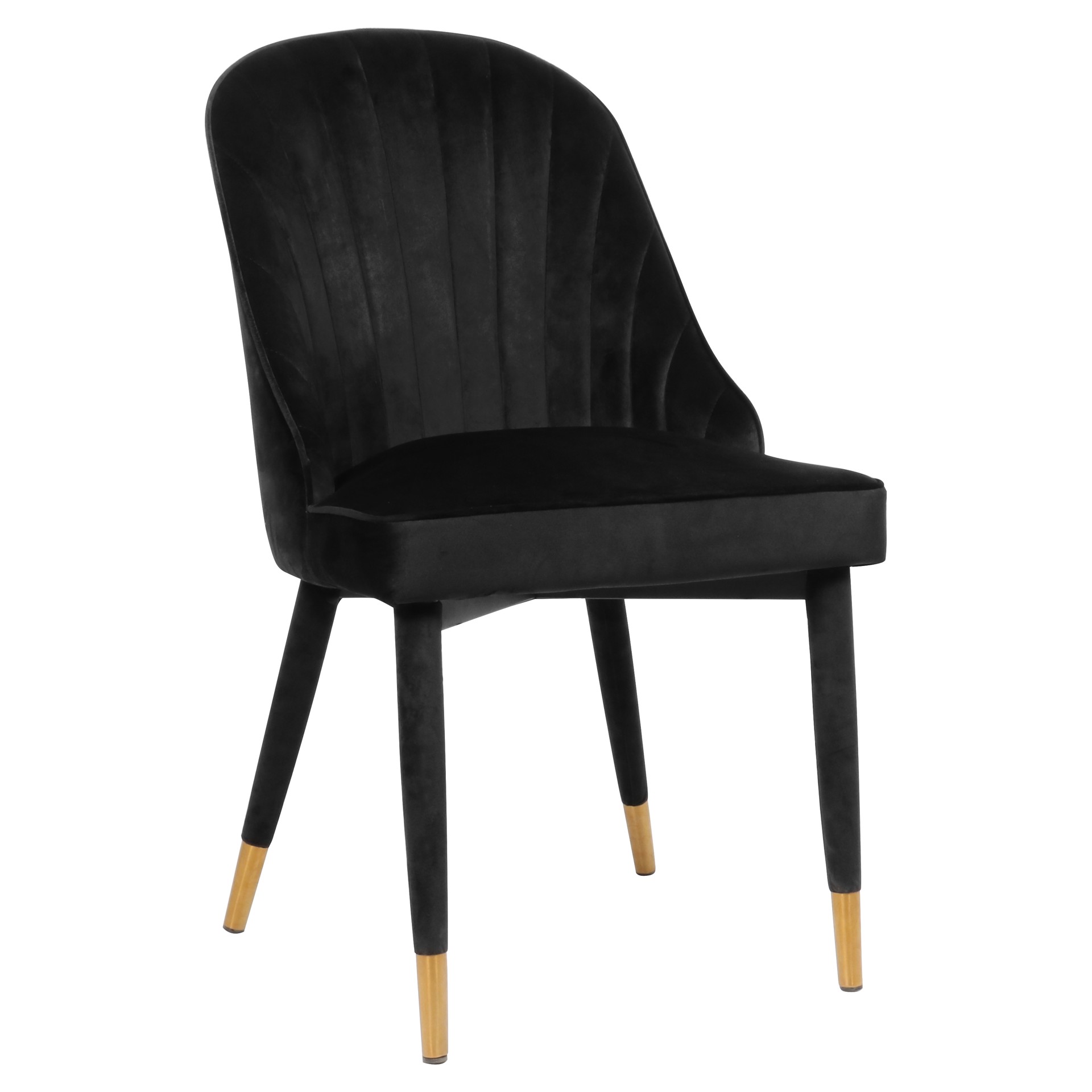 Sumptuously appointed soft black velvet upholstery covers the chair's exterior, adding to its luxurious, upscale look and its soft, sleek feel.