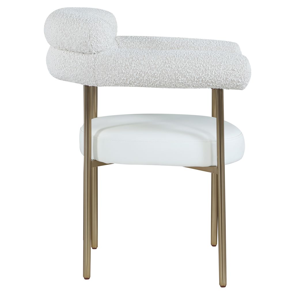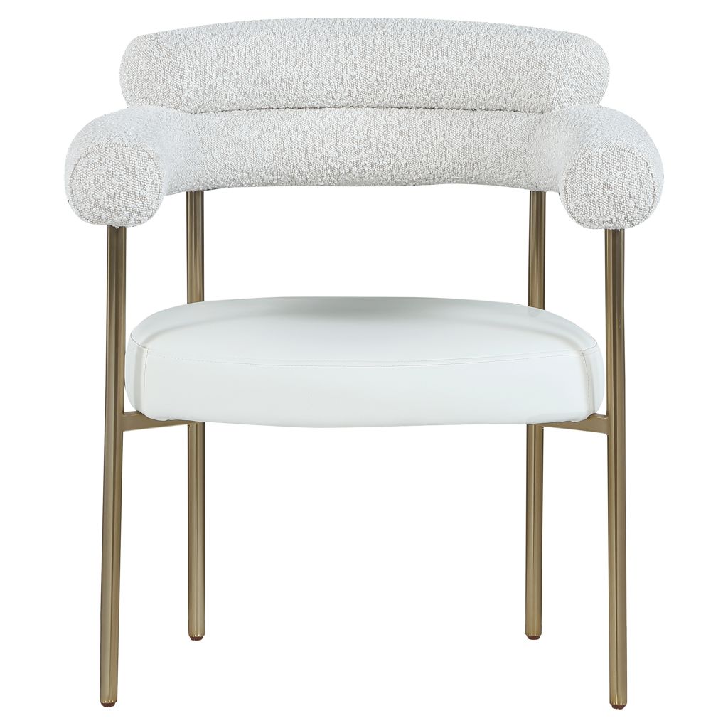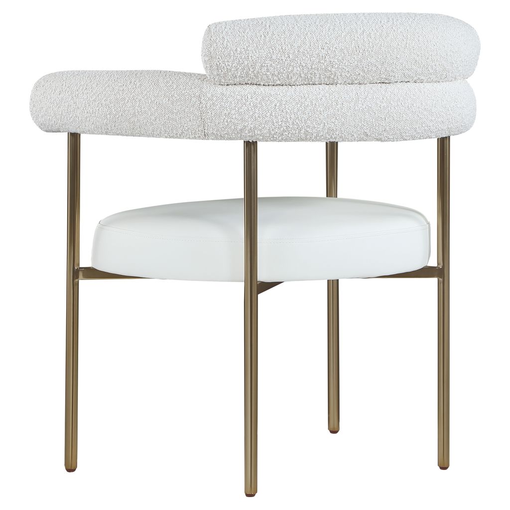 Comfort comes to mealtime with this Blake boucle fabric and faux leather dining chair.