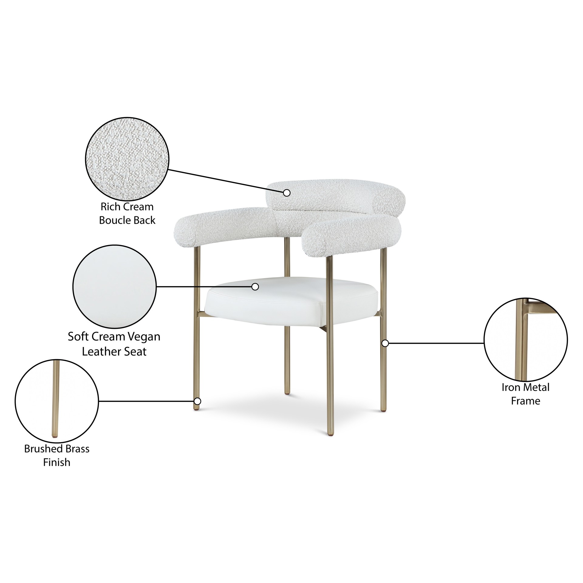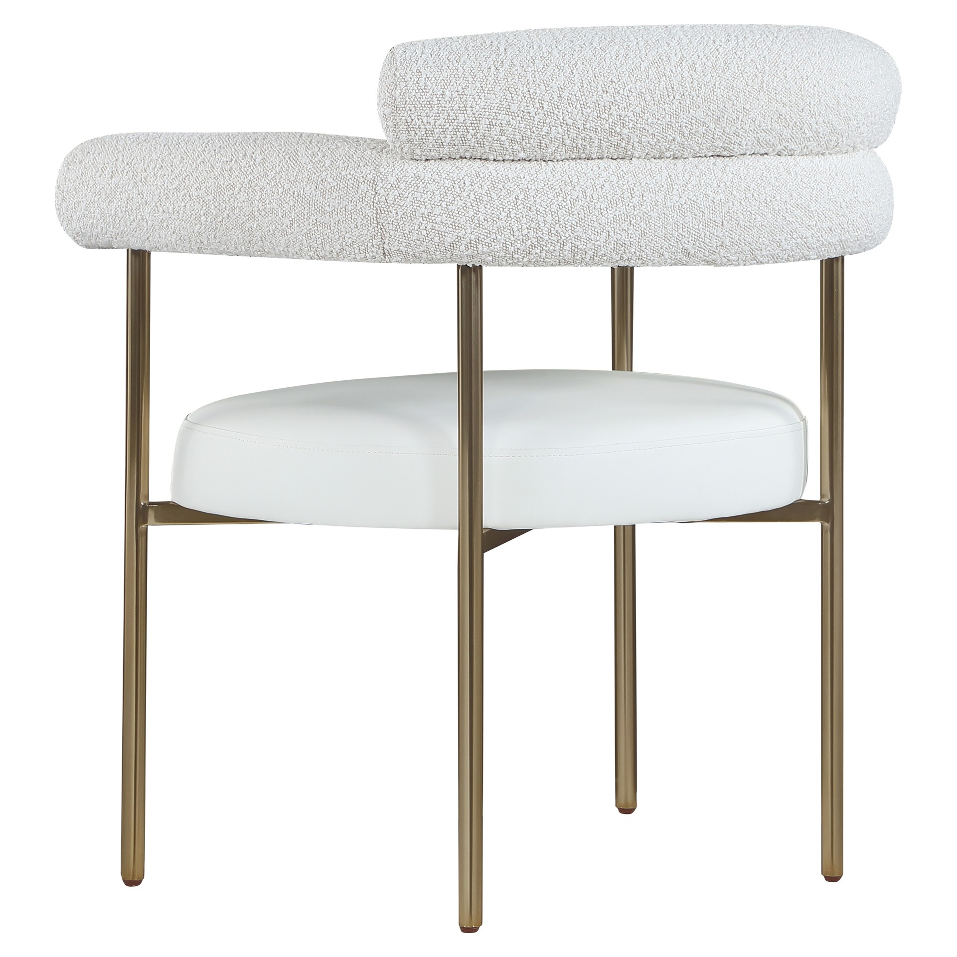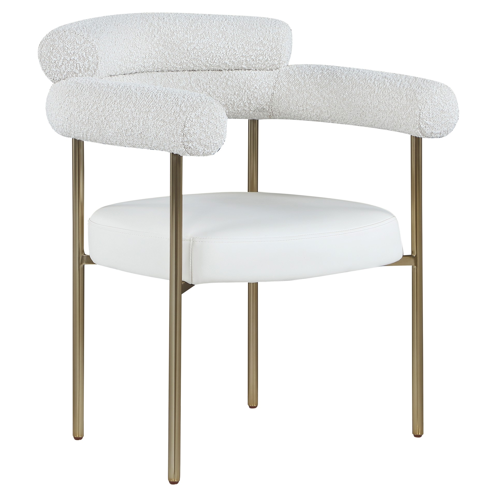 Comfort comes to mealtime with this Blake boucle fabric and faux leather dining chair.