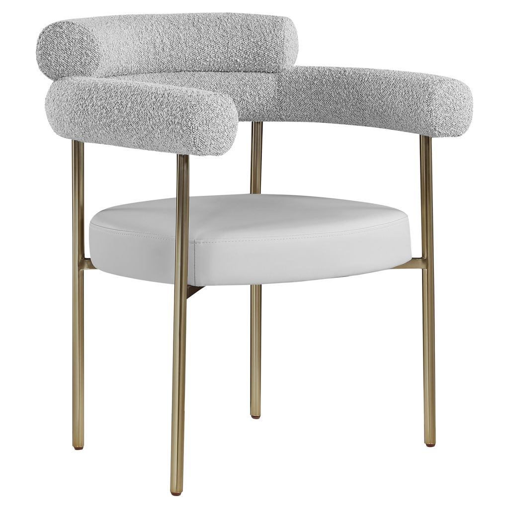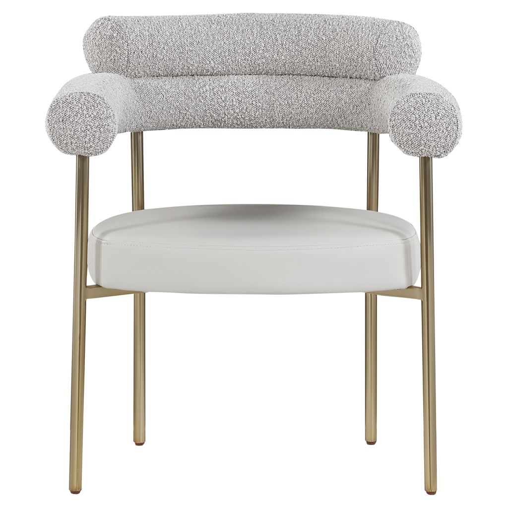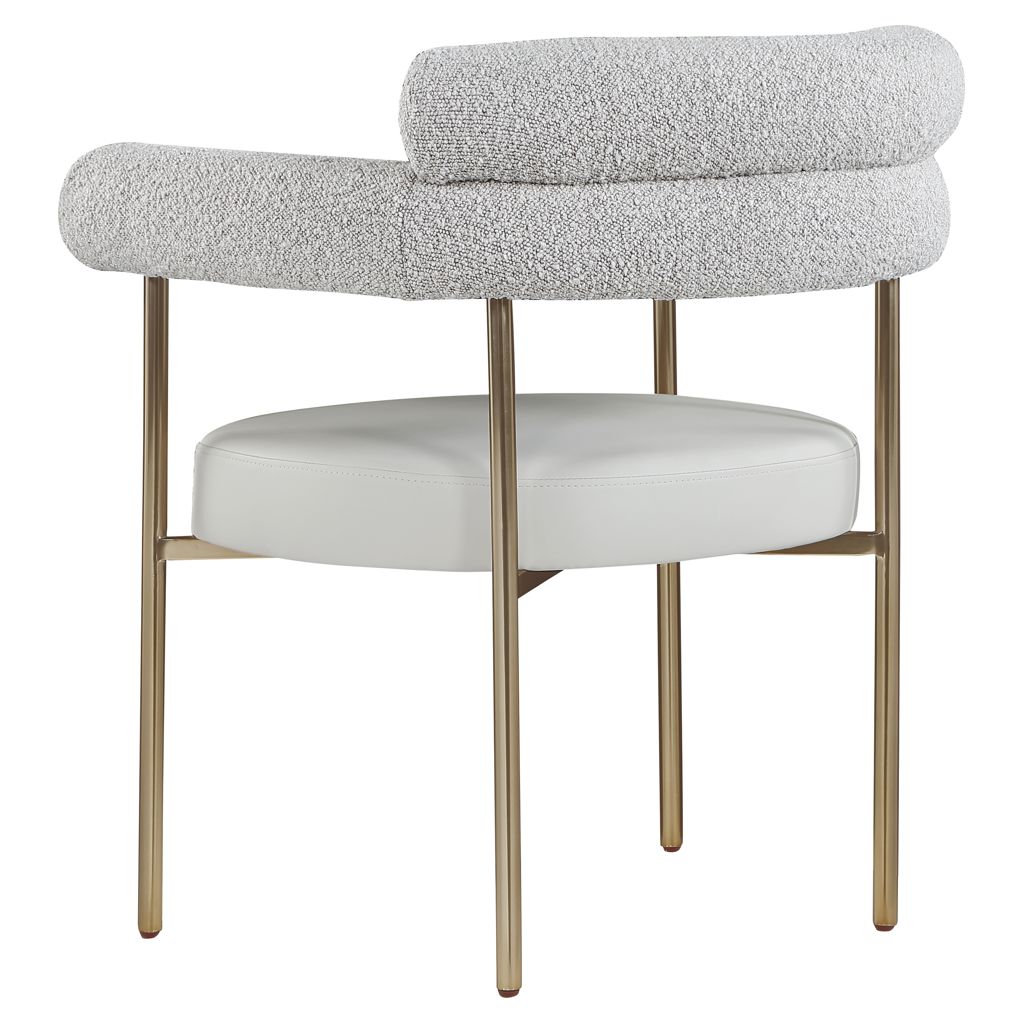 Comfort comes to mealtime with this Blake boucle fabric and faux leather dining chair.