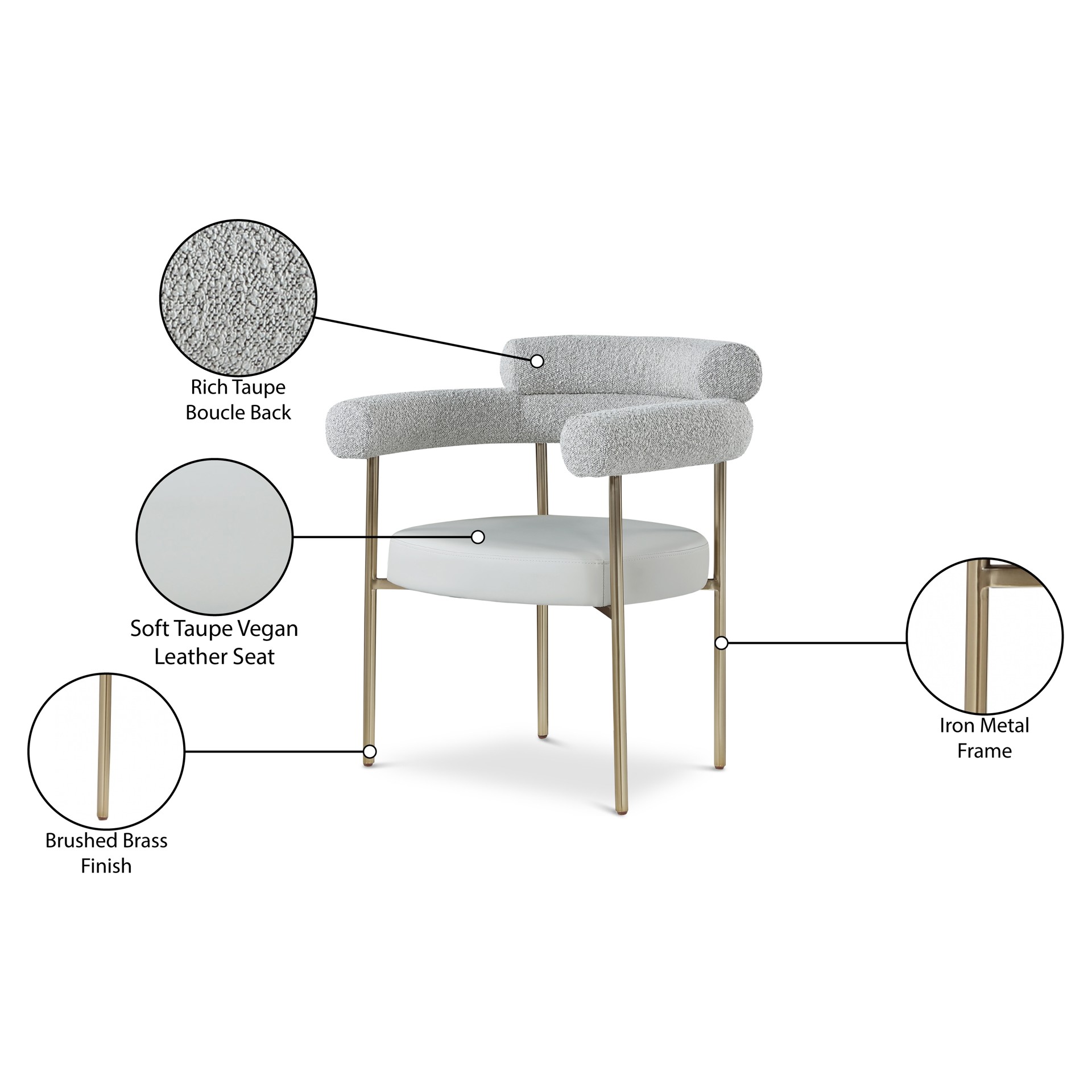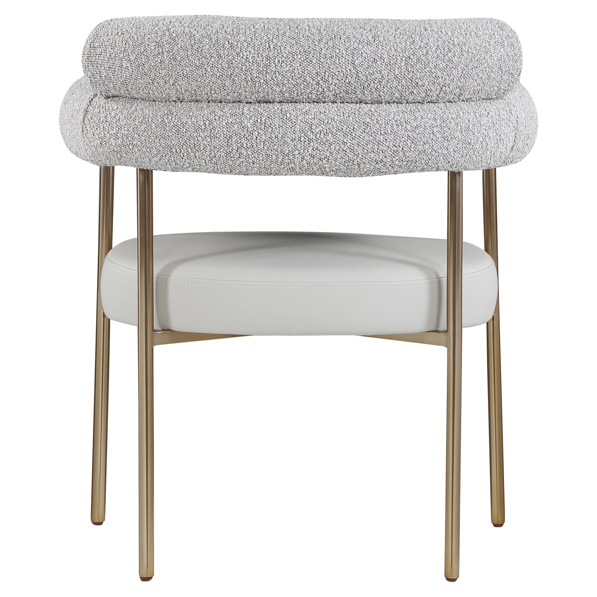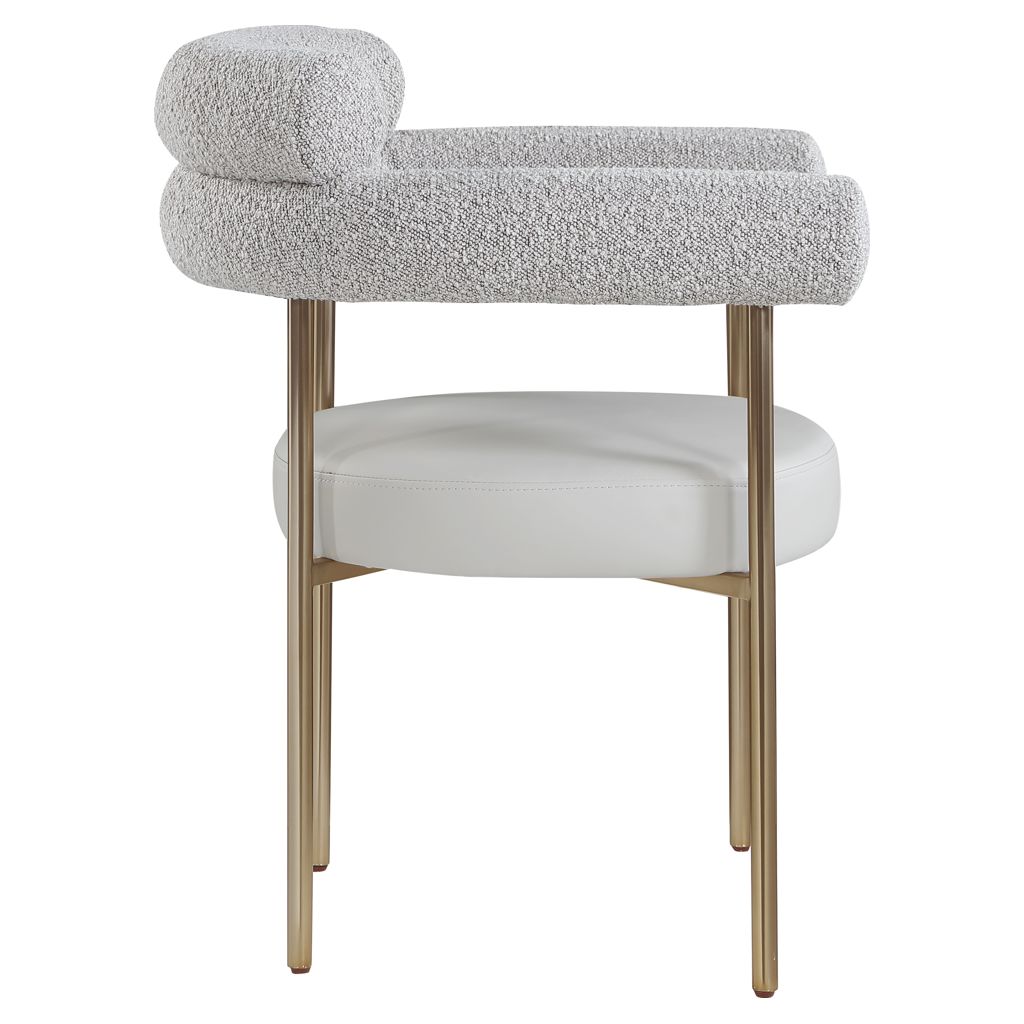 Comfort comes to mealtime with this Blake boucle fabric and faux leather dining chair.