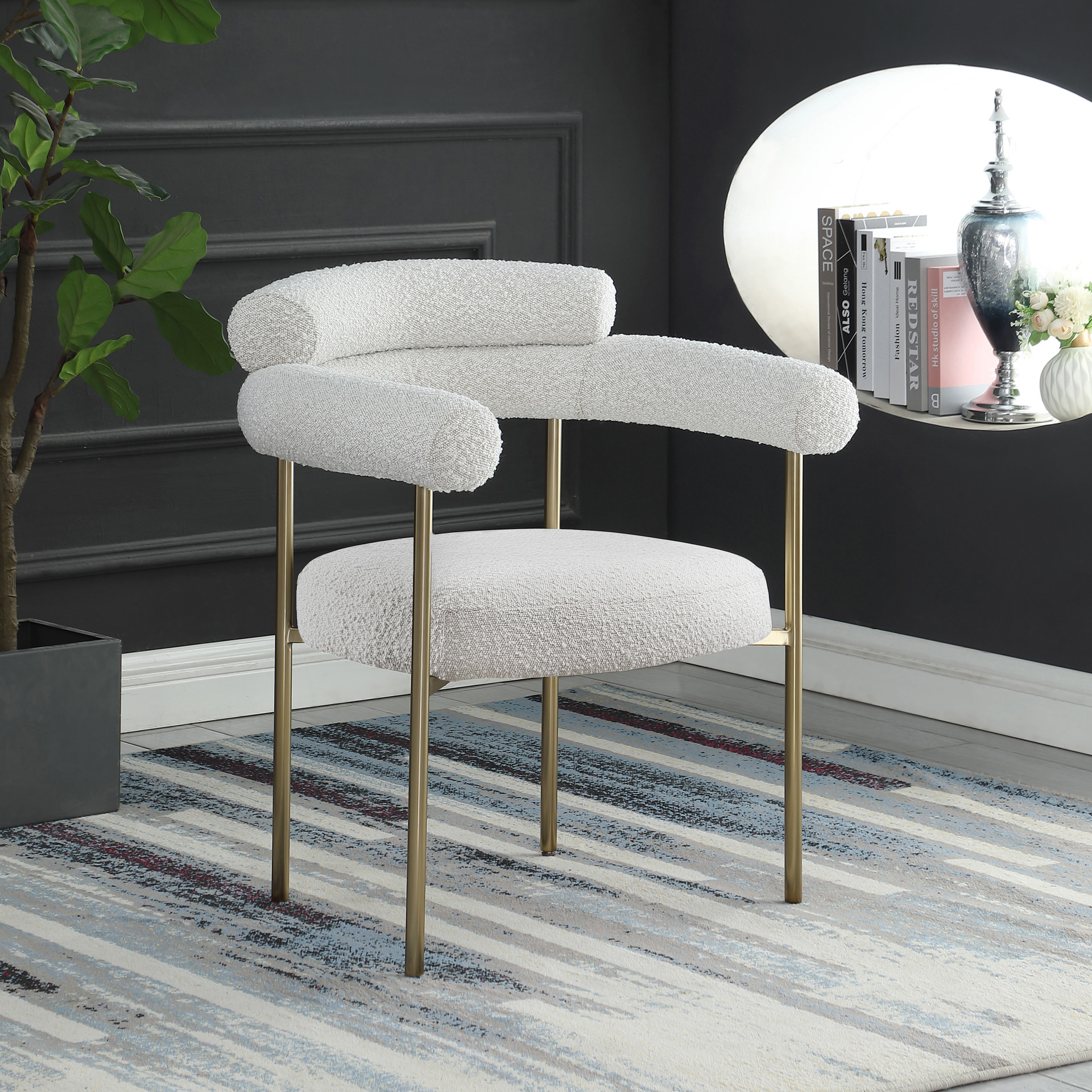 Comfort comes to mealtime with this Blake boucle fabric dining chair.