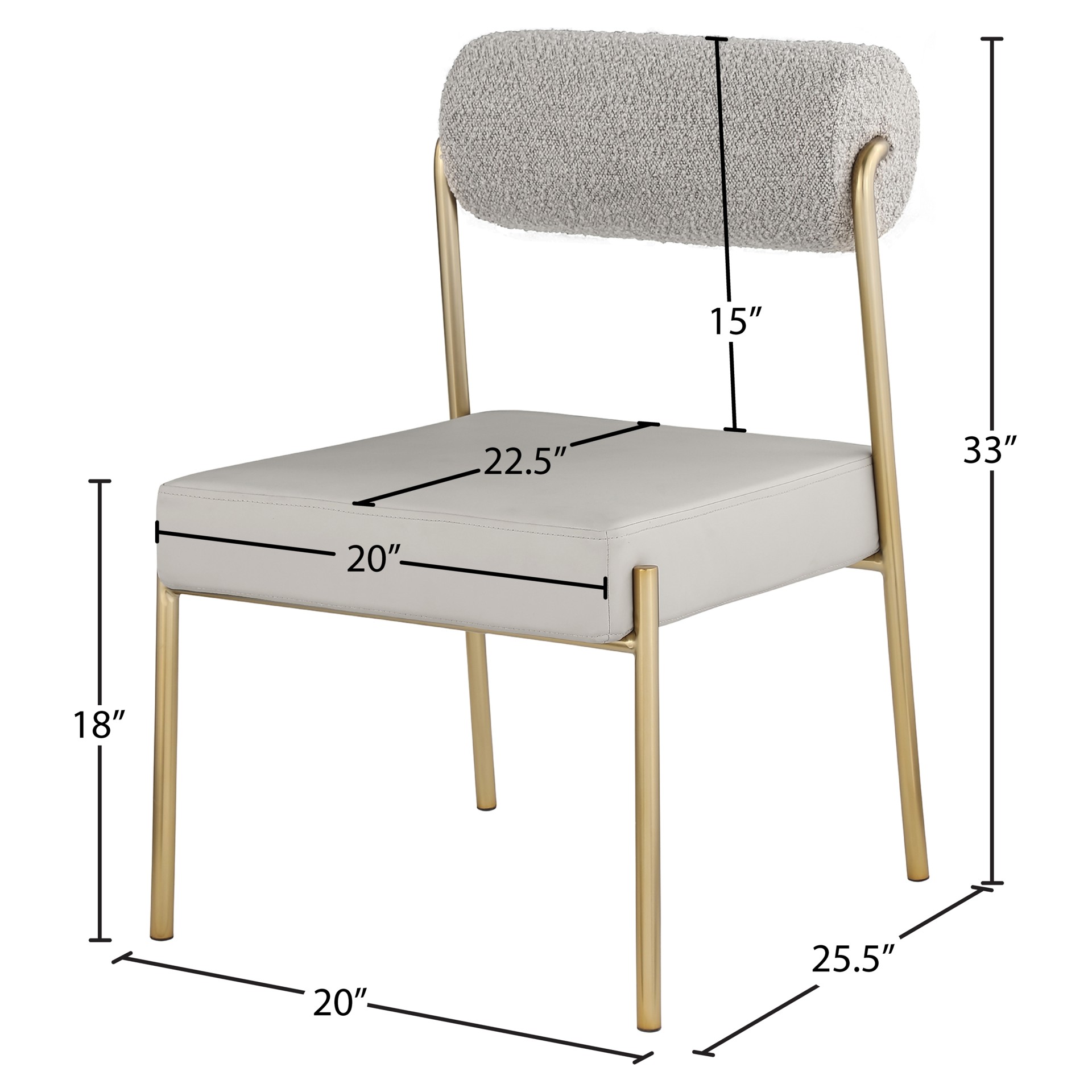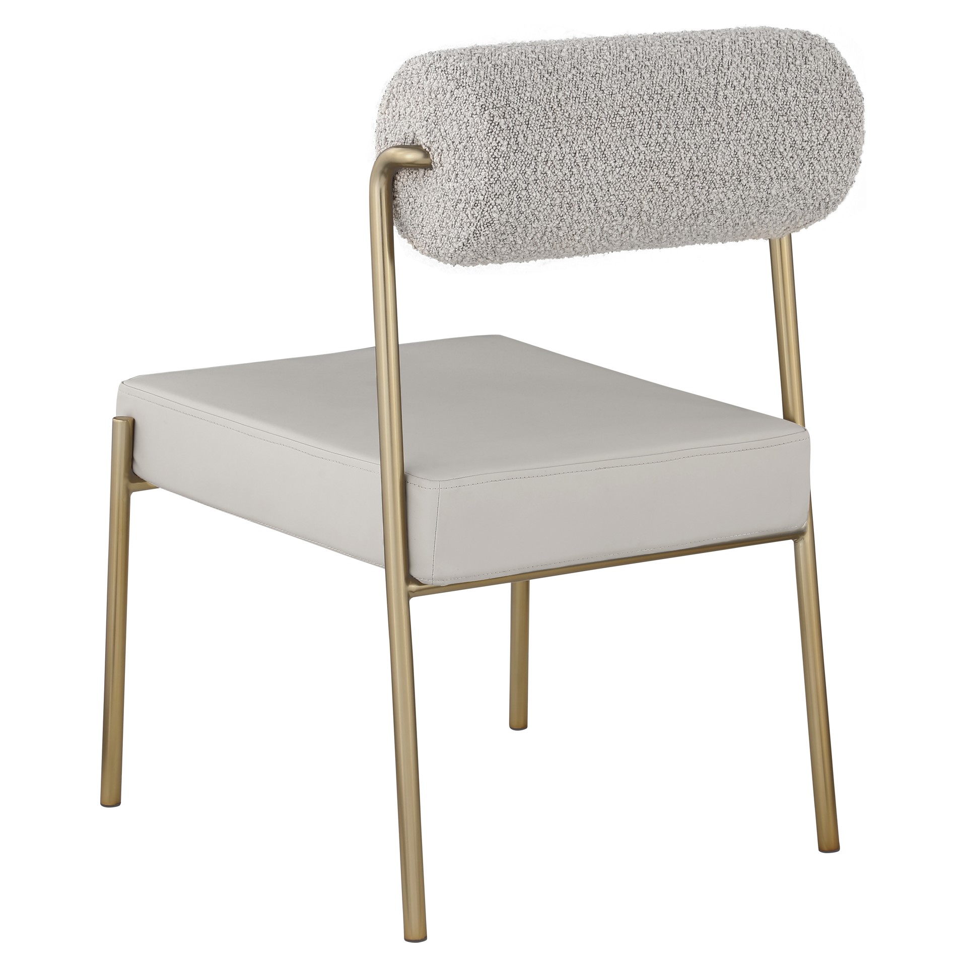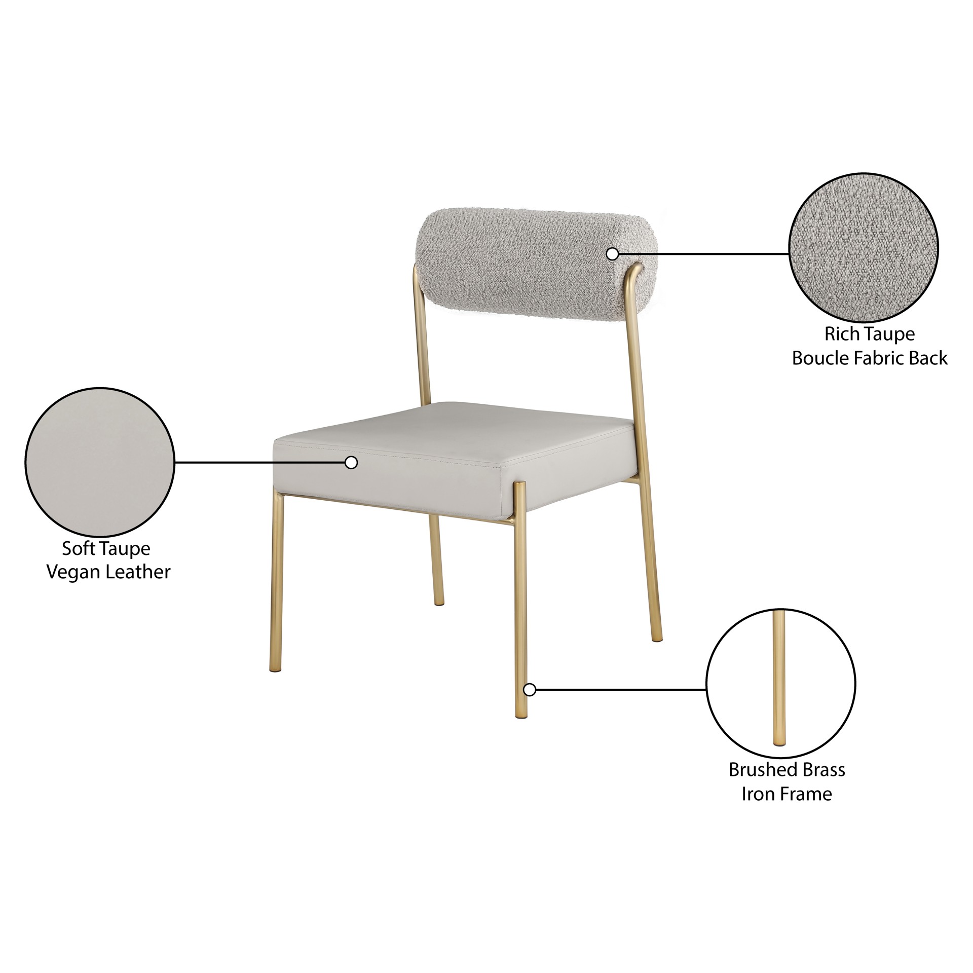 Transform your dining area with this Carly taupe faux leather seat/boucle fabric back dining chair.
