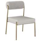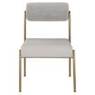 Its brushed brass iron frame ensures stability and durability, so you can enjoy this chair for years to come. This chair is perfect for any home featuring a contemporary design.