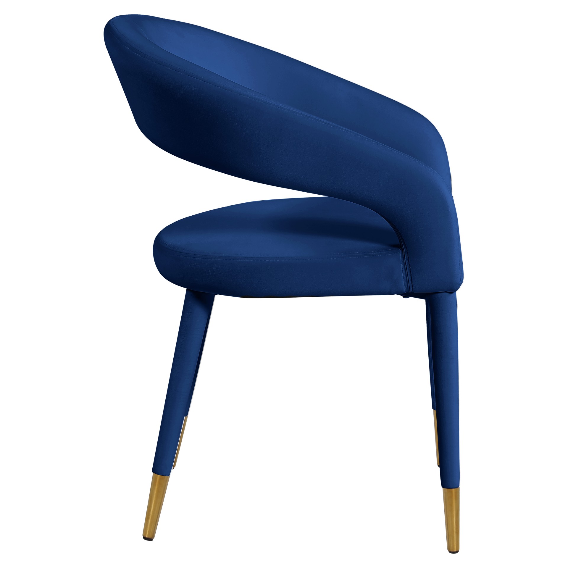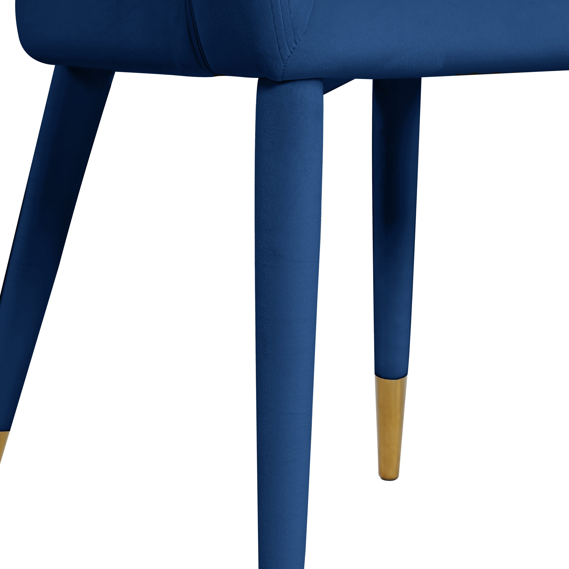 Soft navy velvet upholstery makes this dining chair a sleek and inviting option for pairing with your favorite dining table.