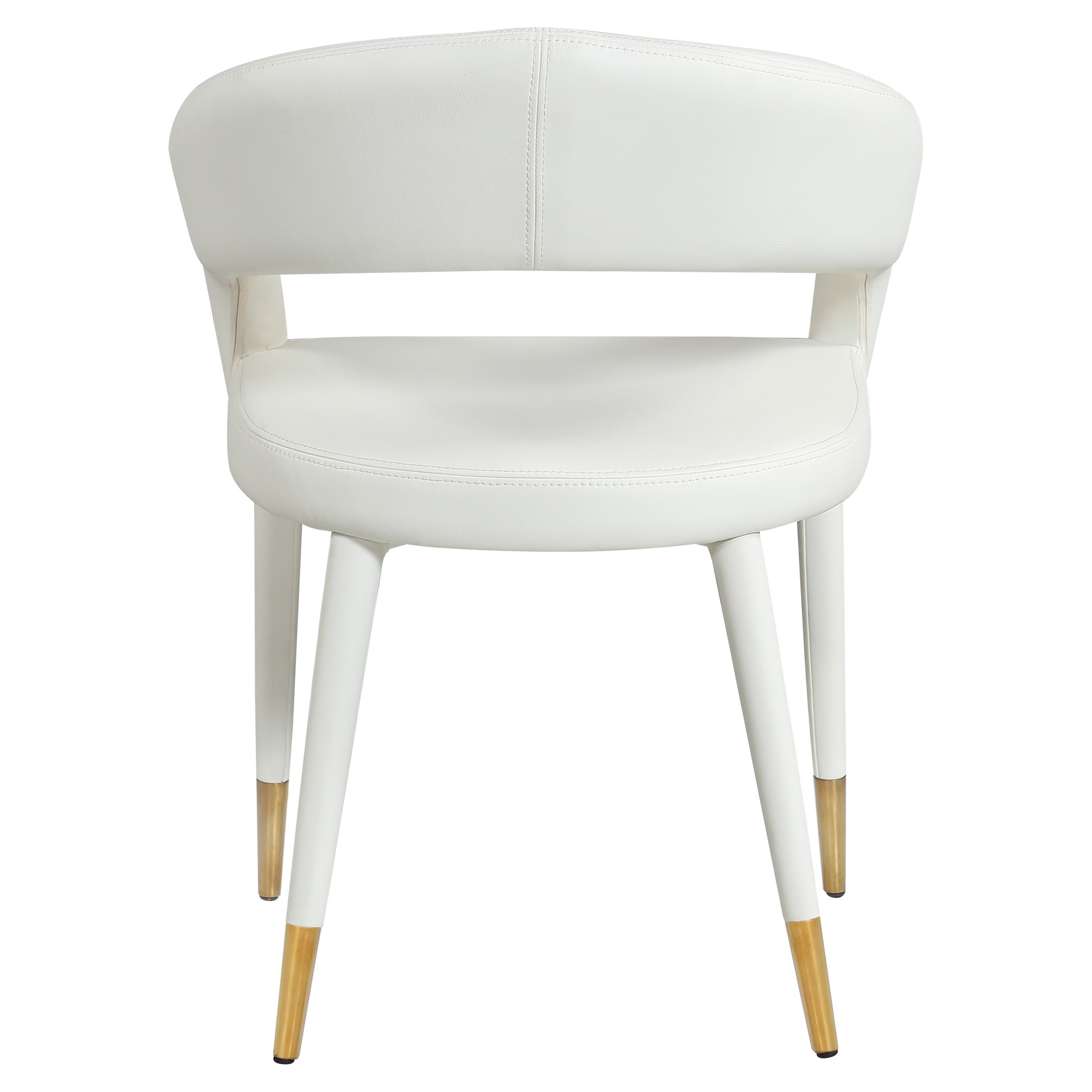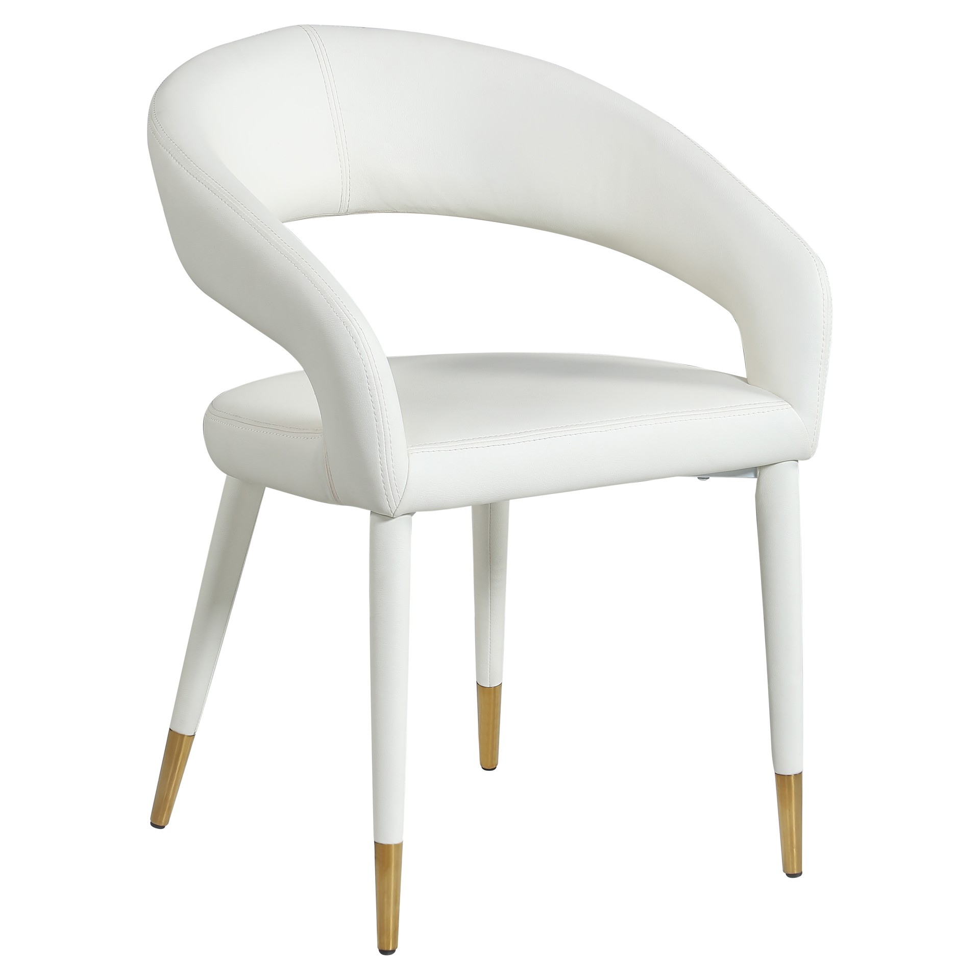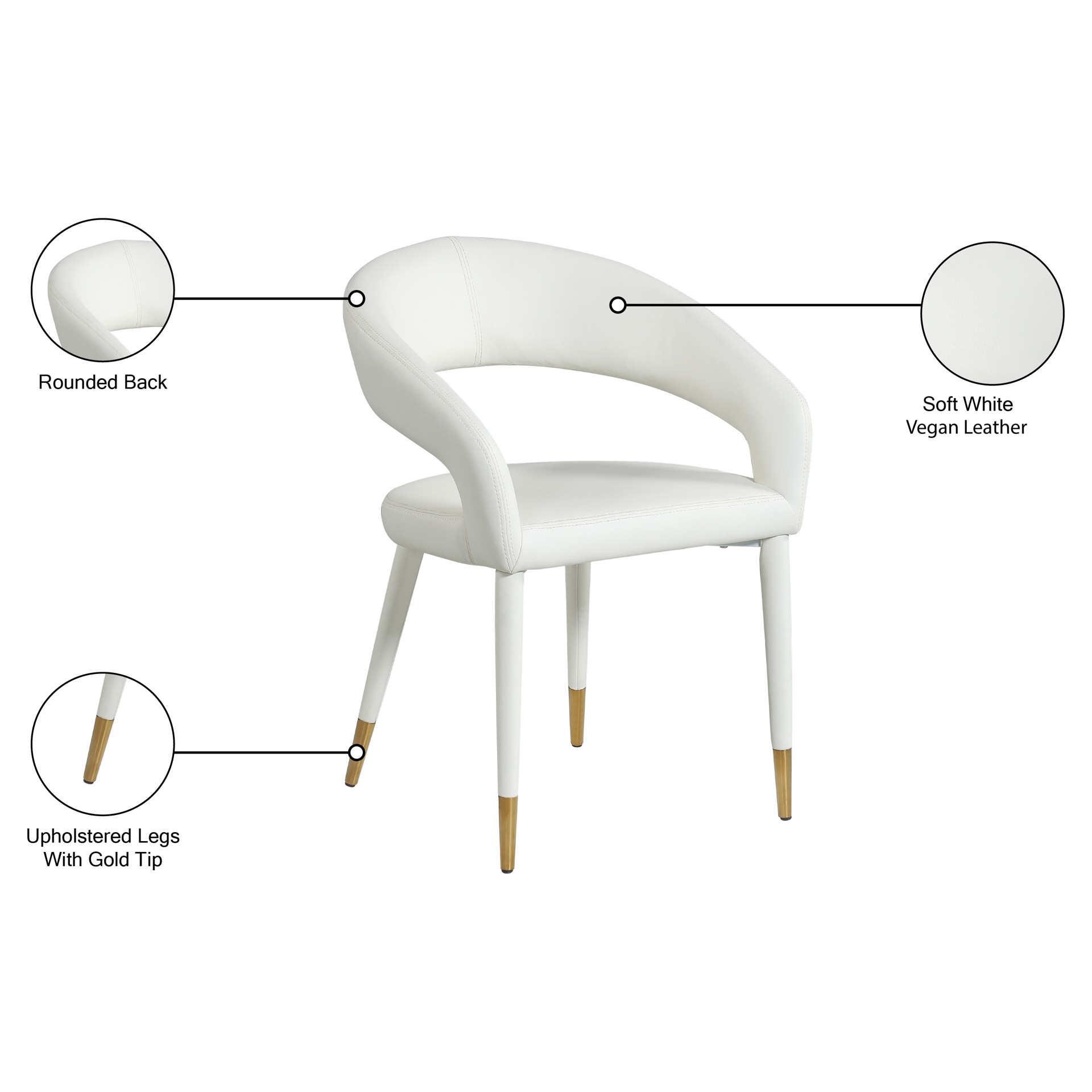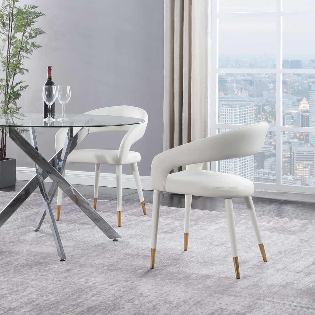 The rounded back adds comfort to mealtime and lends the chair a chic, eye-grabbing touch, while tapered legs topped with gold tips give the chair an elegant finish.