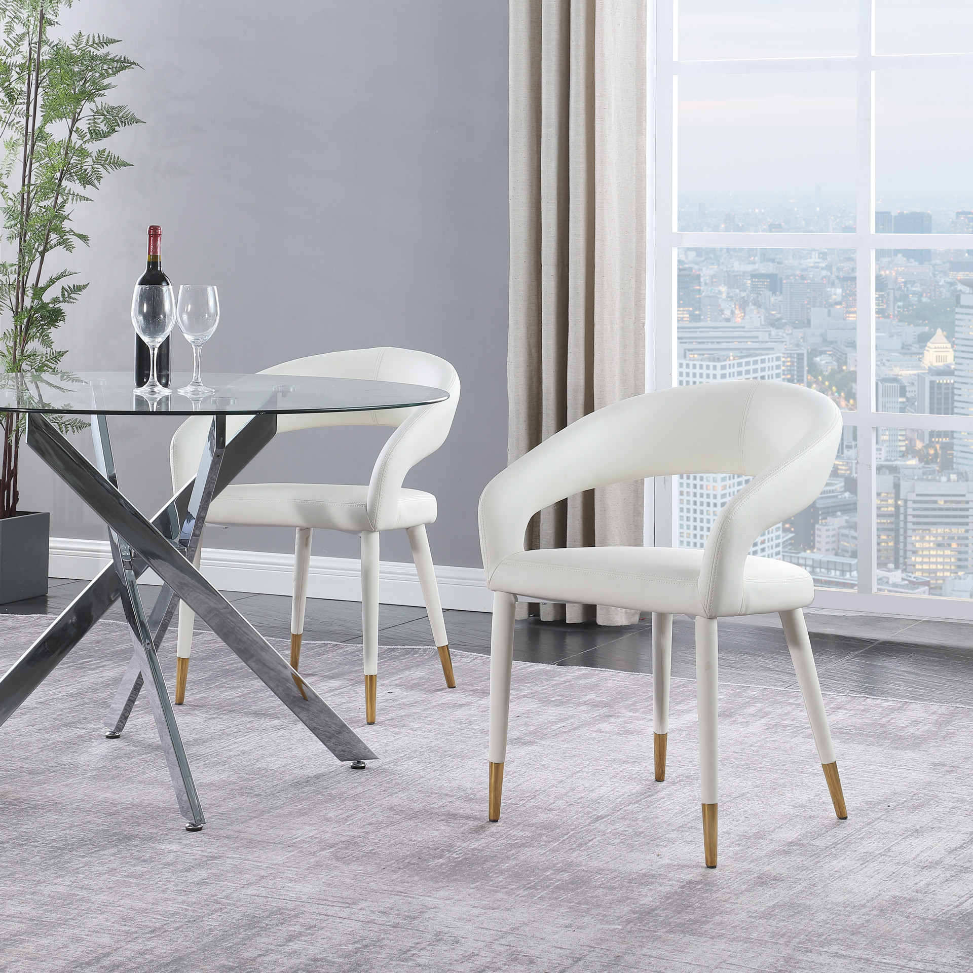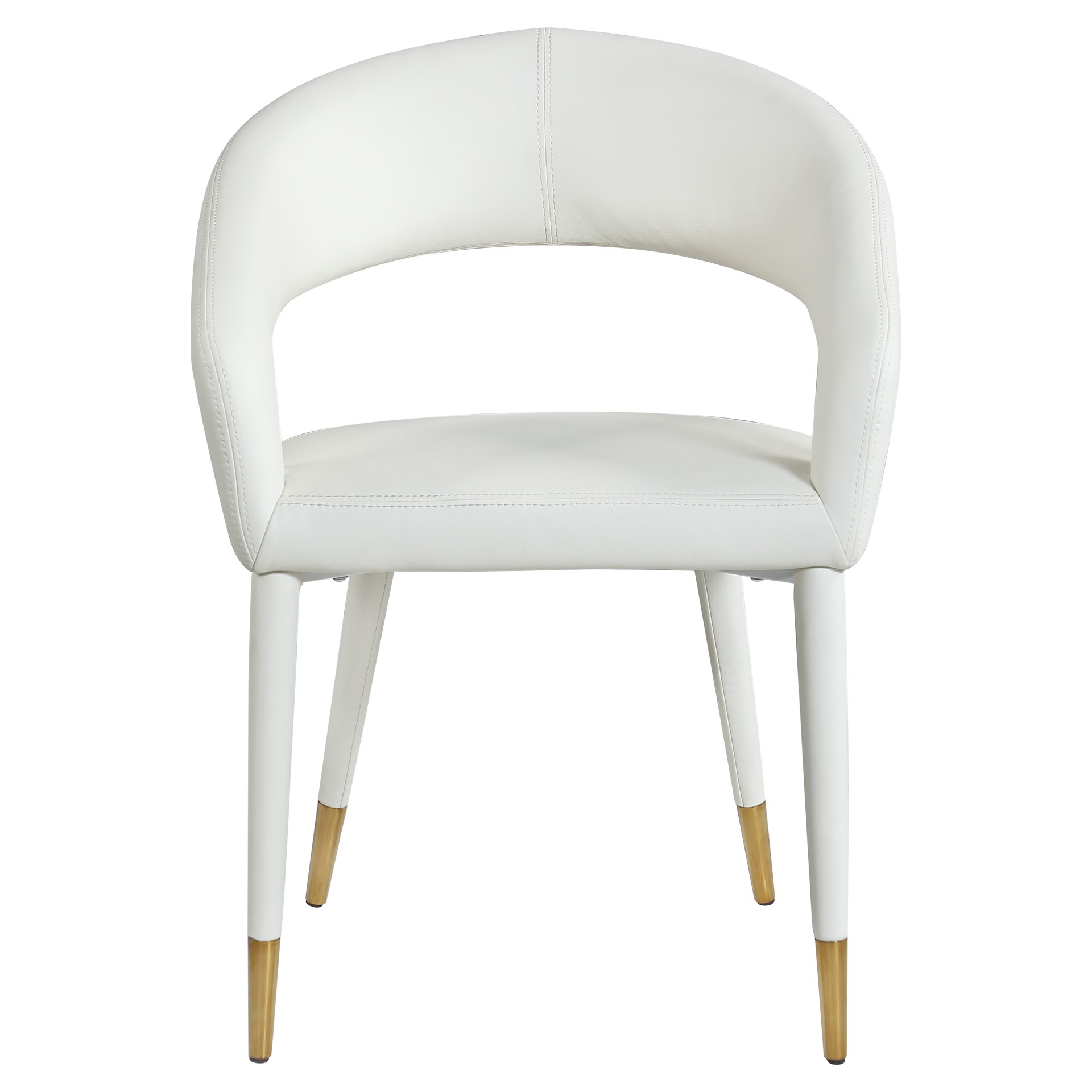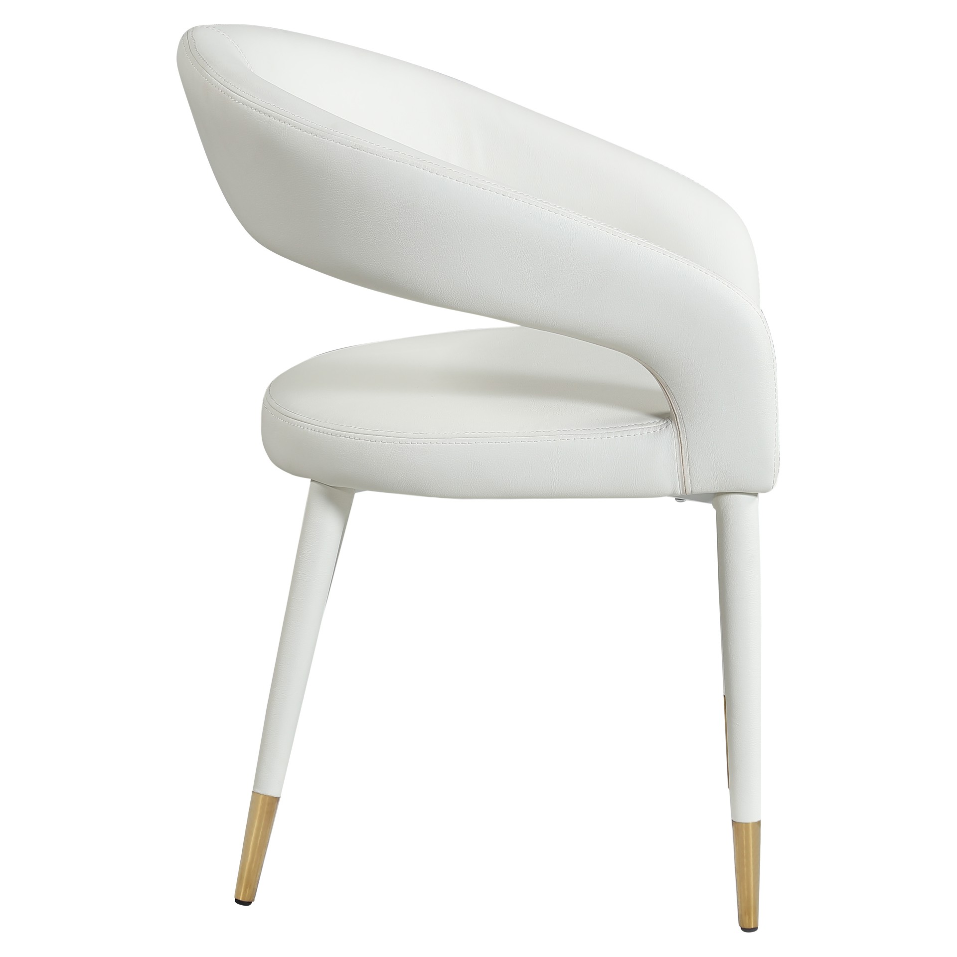 The rounded back adds comfort to mealtime and lends the chair a chic, eye-grabbing touch, while tapered legs topped with gold tips give the chair an elegant finish.
