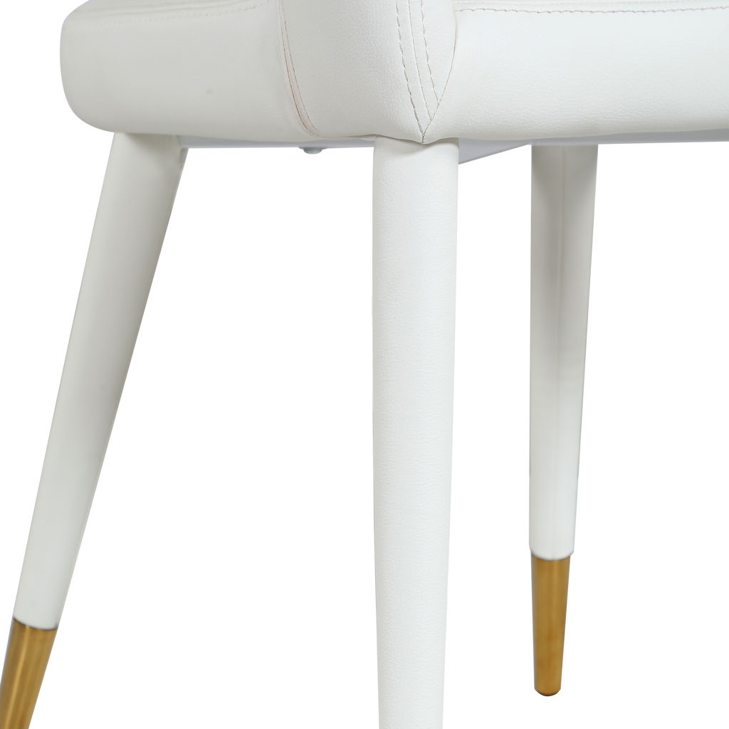 Soft white faux leather upholstery makes this dining chair a sleek and inviting option for pairing with your favorite dining table.