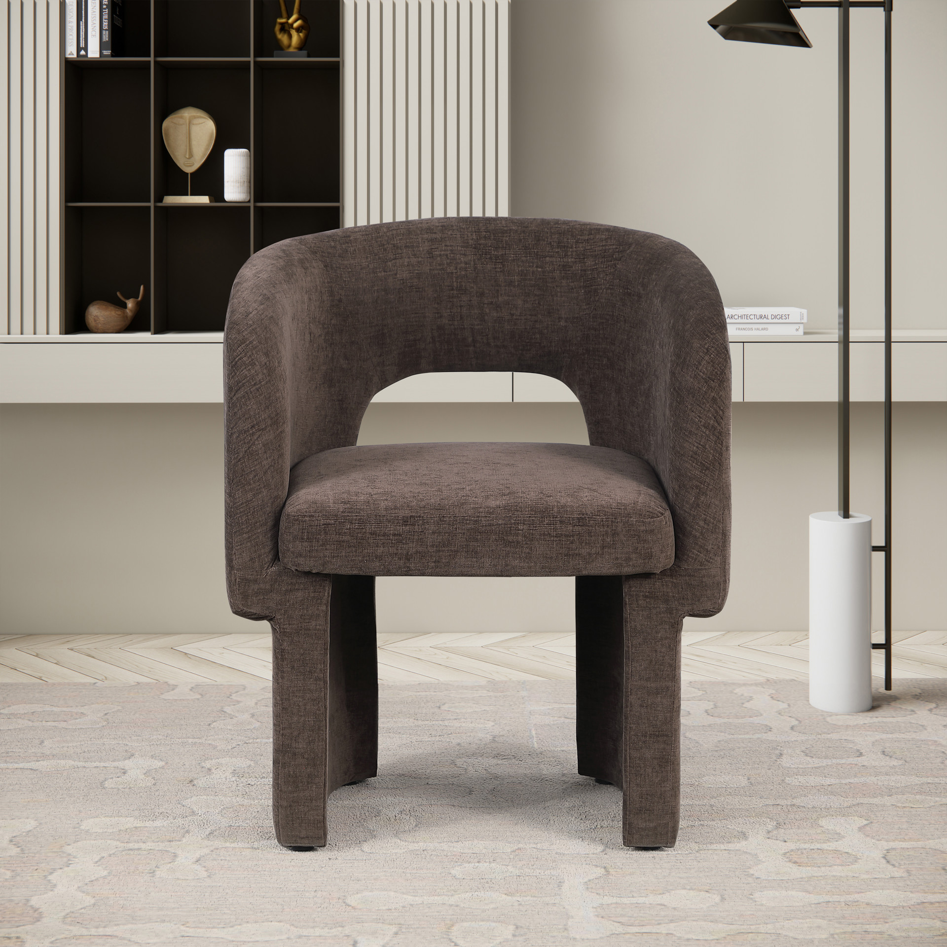 Give your dining room a blast of contemporary energy with this Emmet chenille fabric dining chair. Rich chenille fabric upholstery covers this chair from top to bottom, giving it a luxe feel that's soft to the touch and to the skin.
