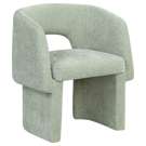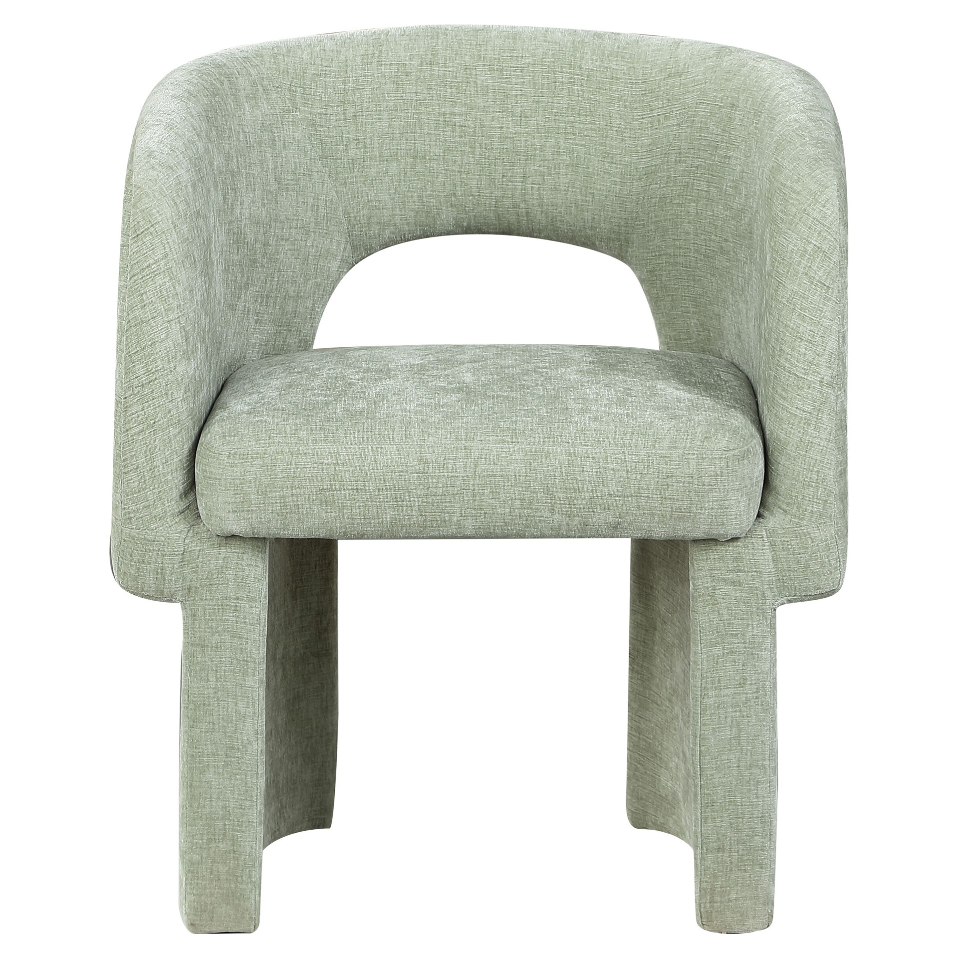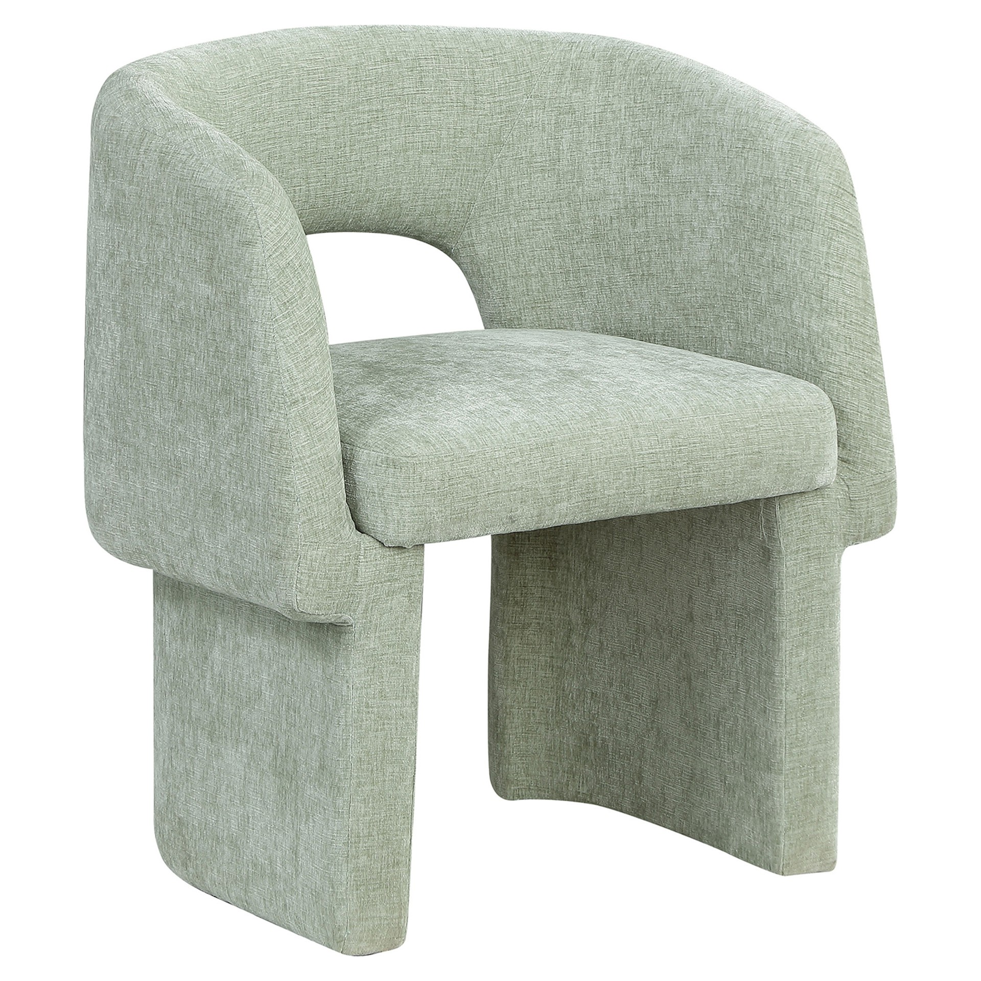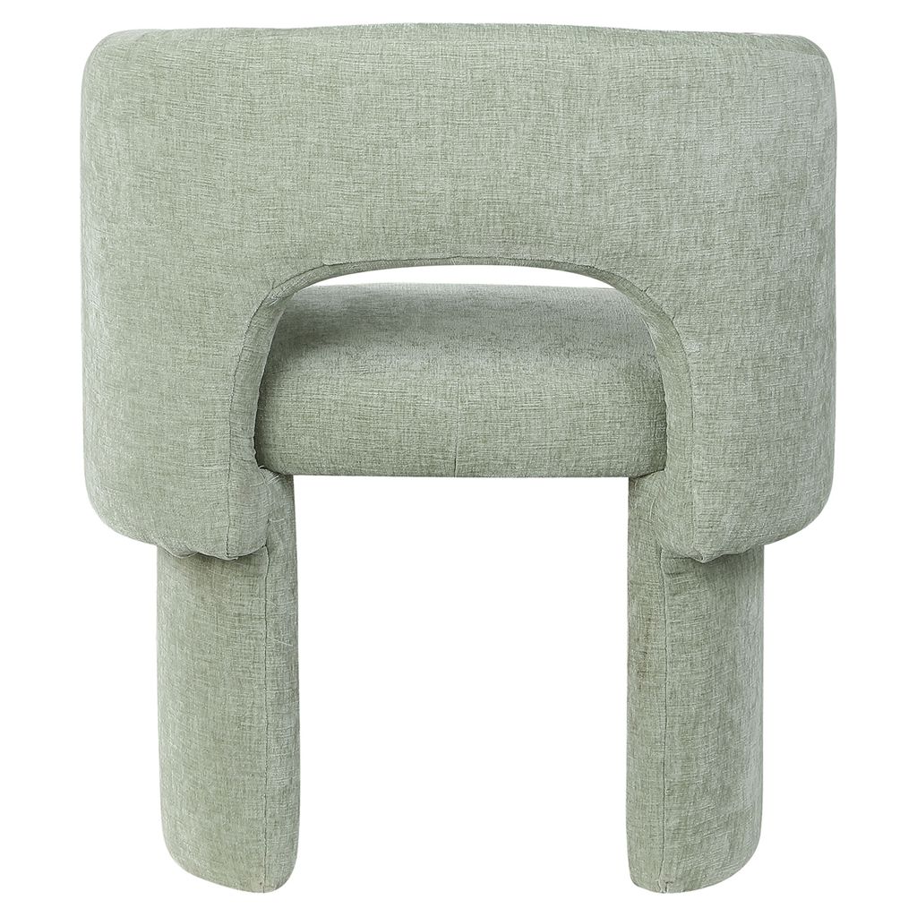 Rich mint chenille fabric upholstery covers this chair from top to bottom, giving it a luxe feel that's soft to the touch and to the skin.