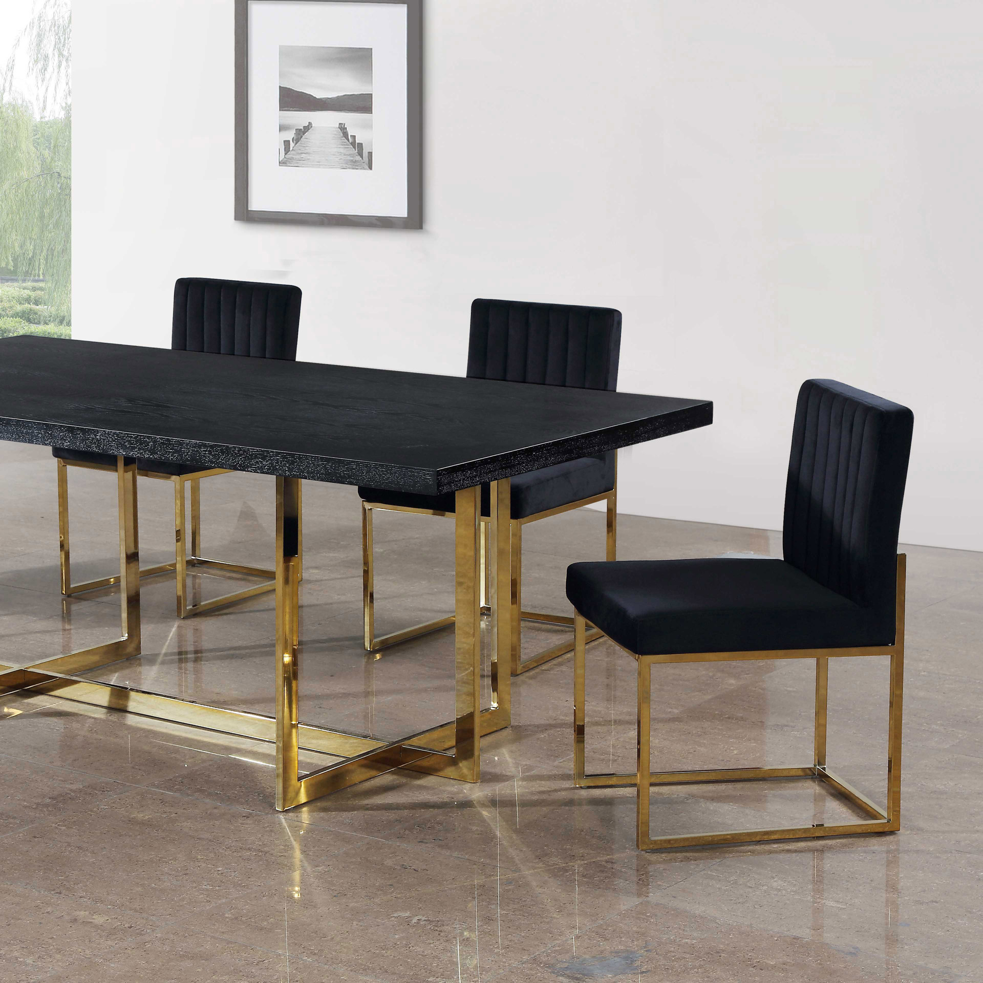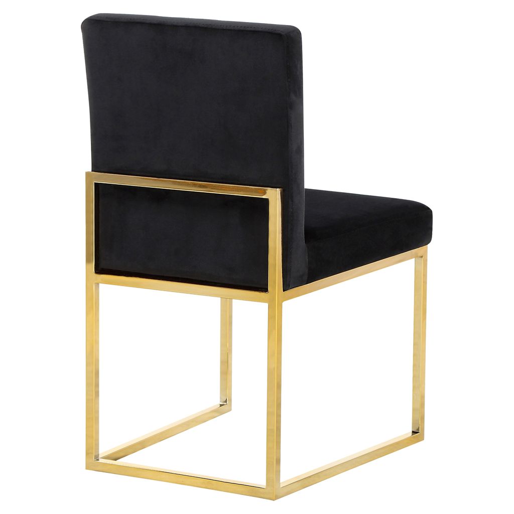 The seat and back are upholstered in rich black velvet for a lavish vibe and a pop of sumptuous color to liven up your room, and both are padded well to make sure diners stay comfy while they enjoy their meal.