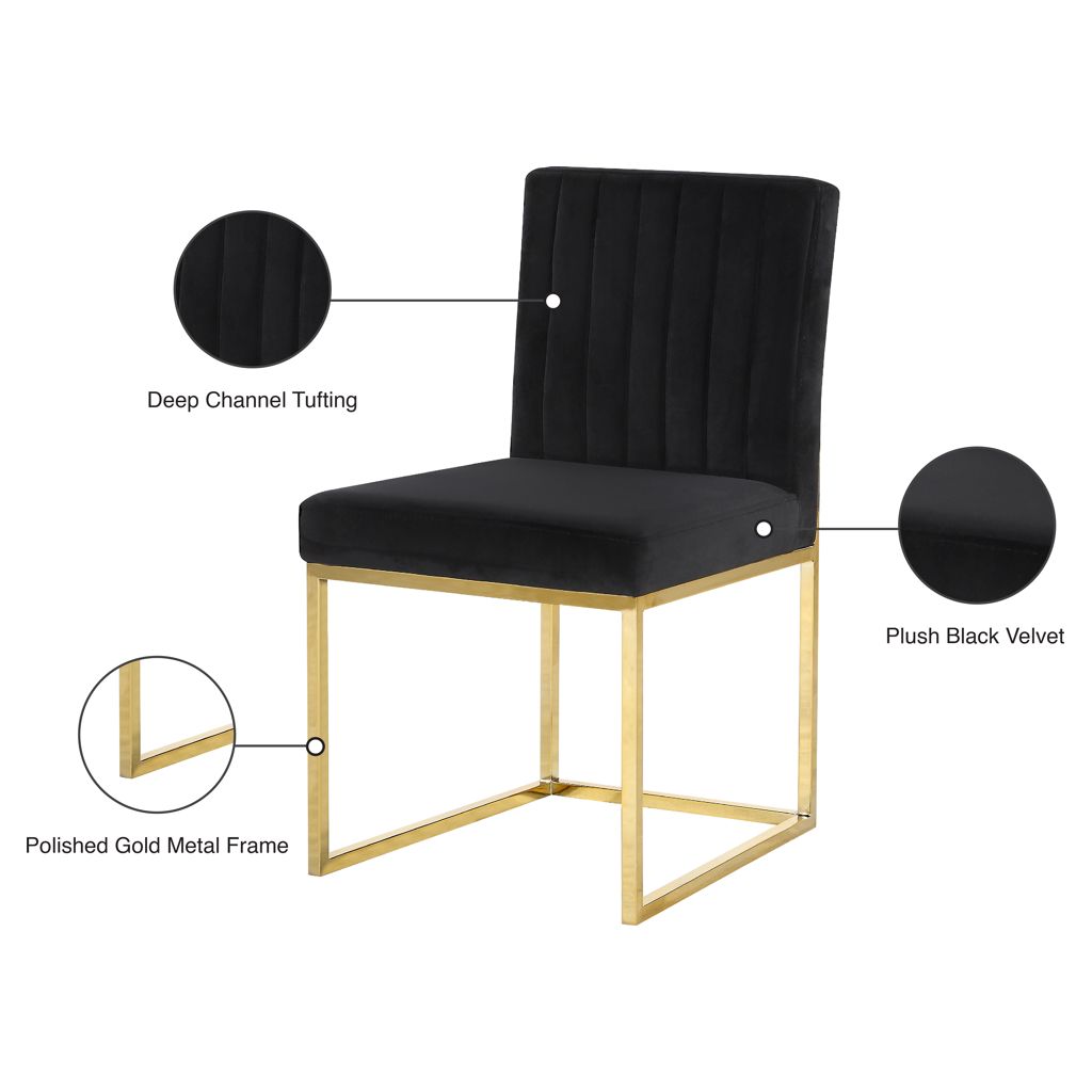 Take dining to a posh new level with this Giselle Black Velvet Dining Chair.