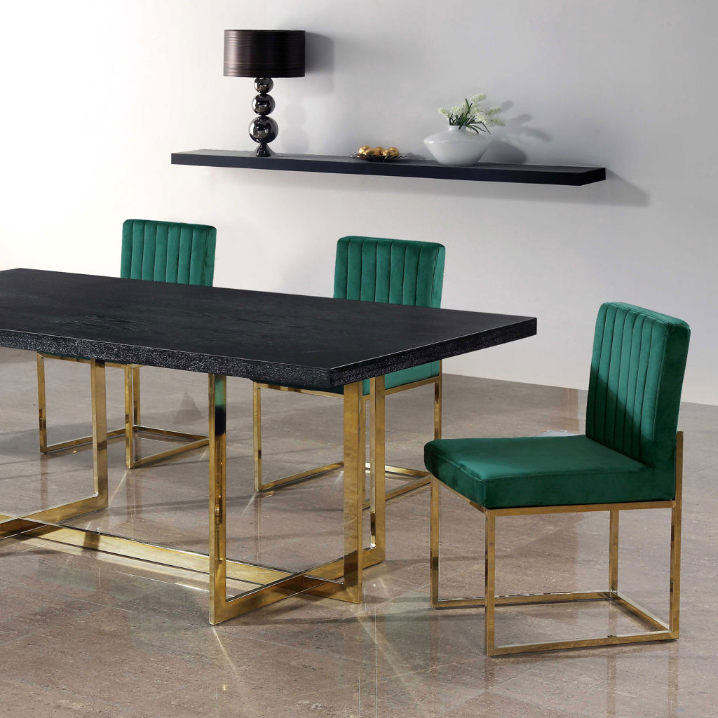 The seat and back are upholstered in rich green velvet for a lavish vibe and a pop of sumptuous color to liven up your room, and both are padded well to make sure diners stay comfy while they enjoy their meal.