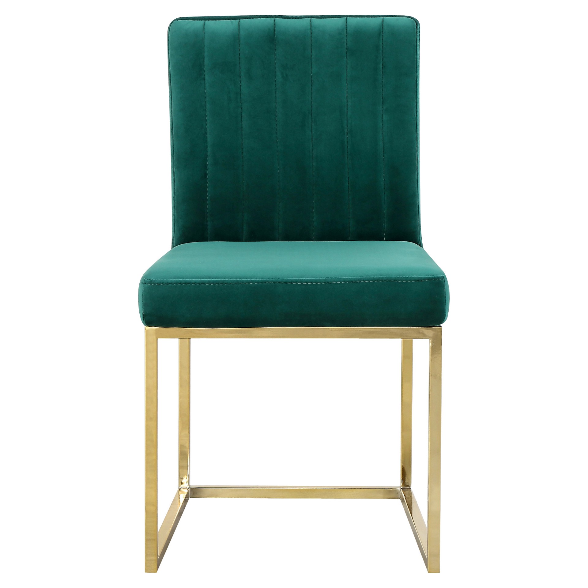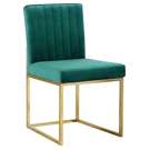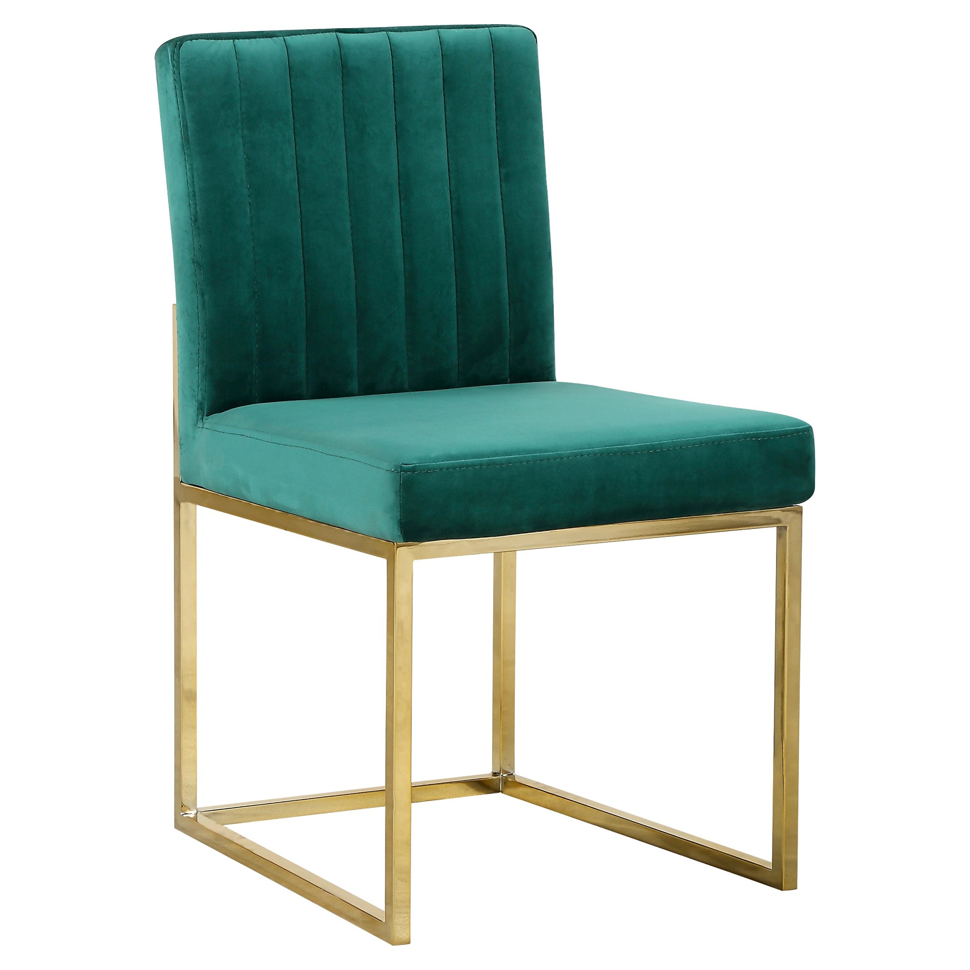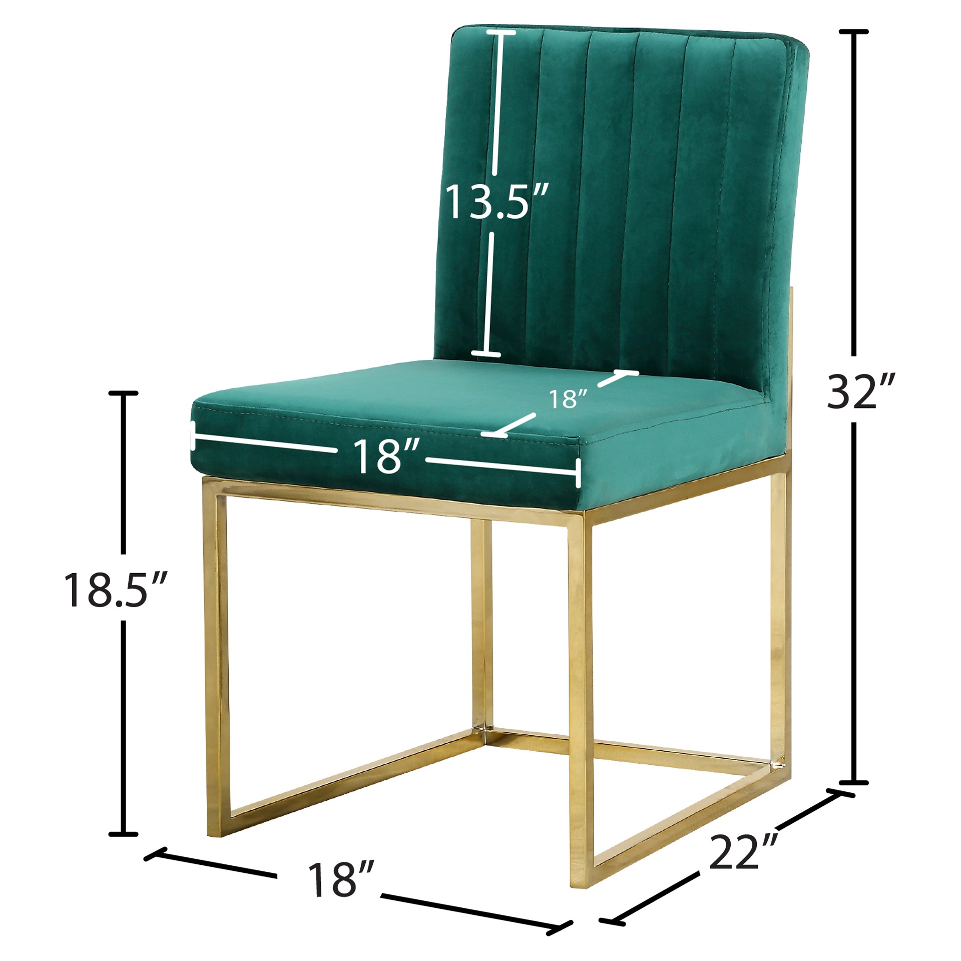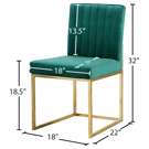 Take dining to a posh new level with this Giselle Green Velvet Dining Chair. A boxy design makes it a nice addition to contemporary spaces, and it's armless design makes it easy to get into and out of with ease.