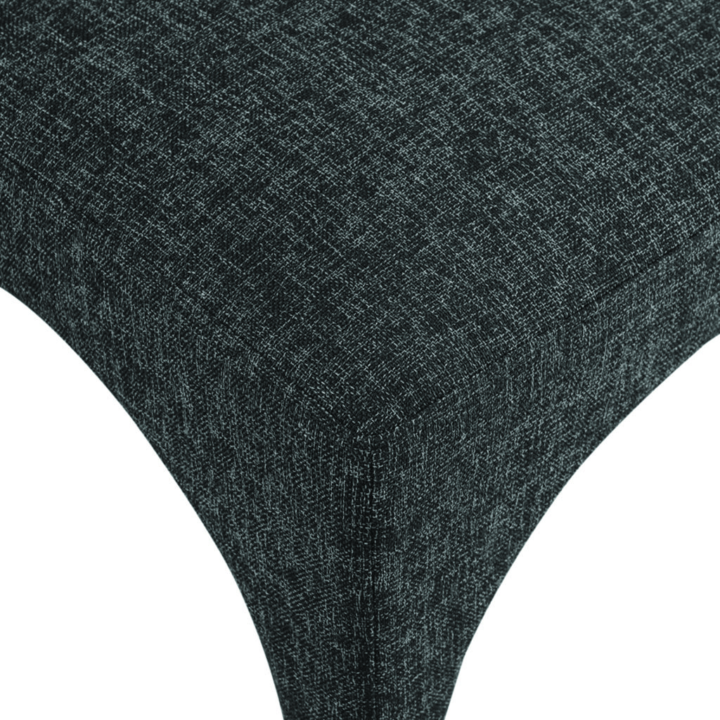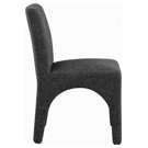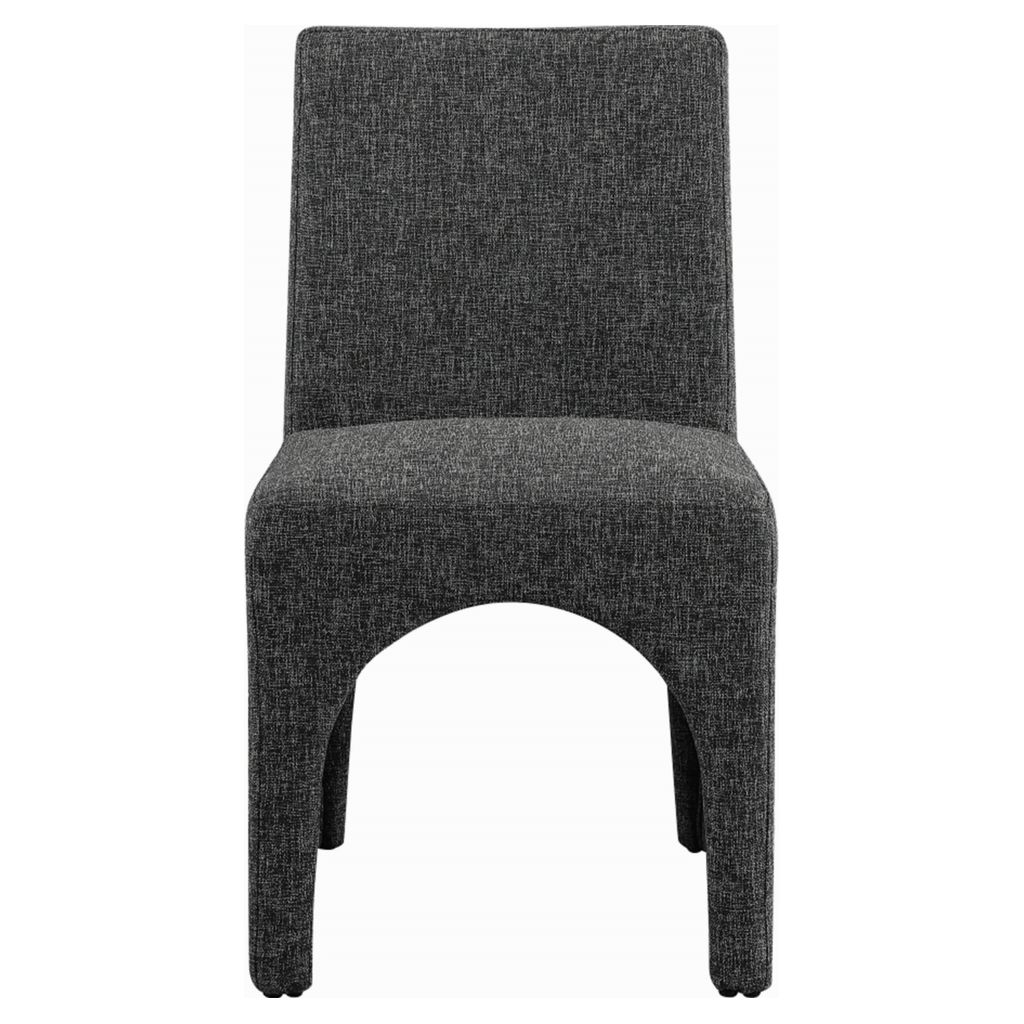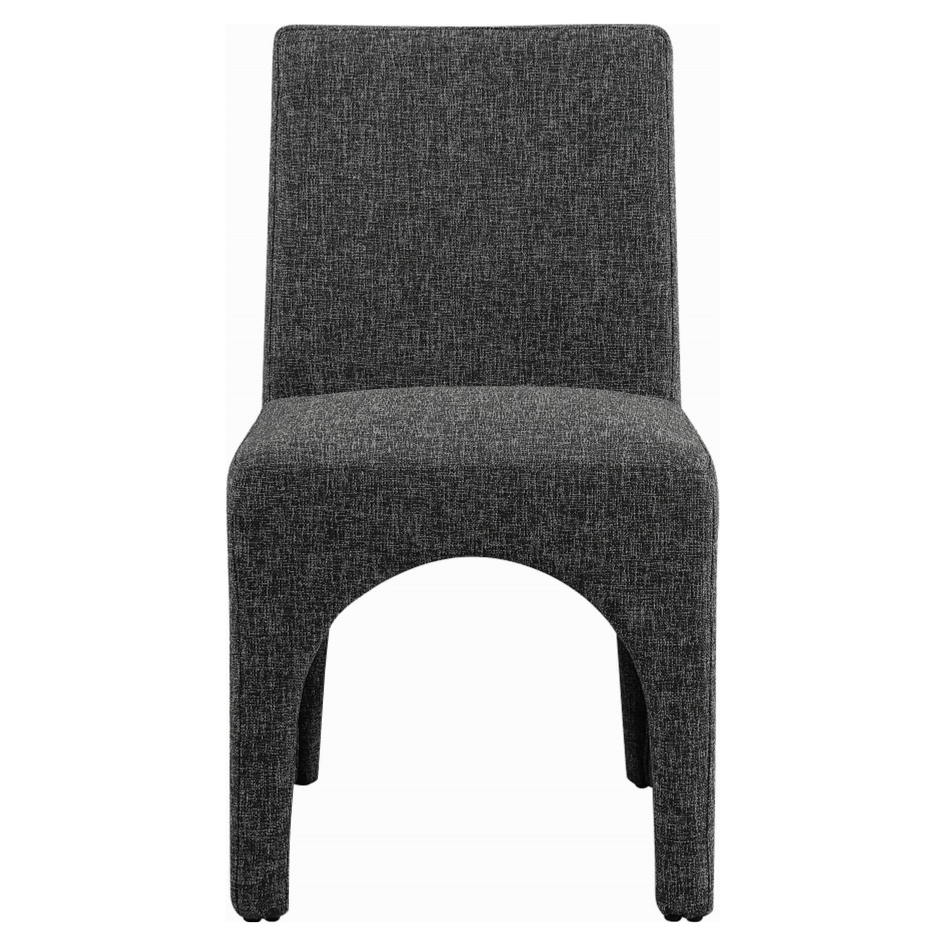 This chair is upholstered with a plush black fabric that has a subtle white weave, giving your dining room a refined and sophisticated look.