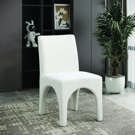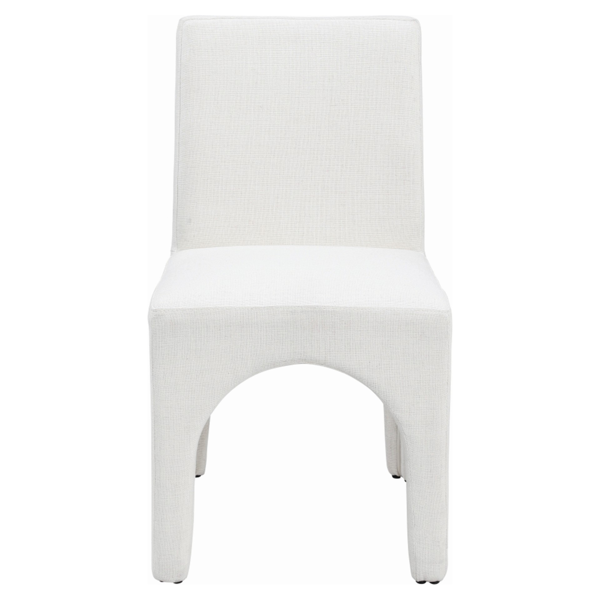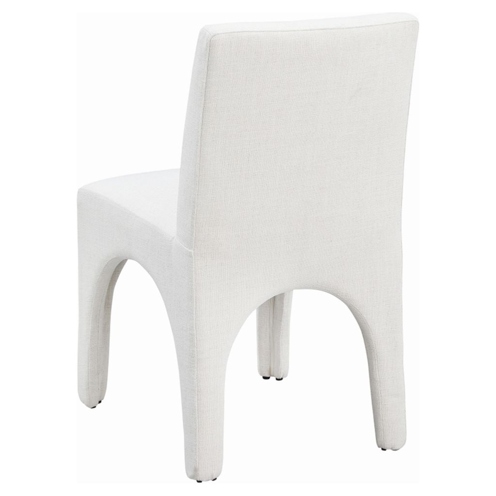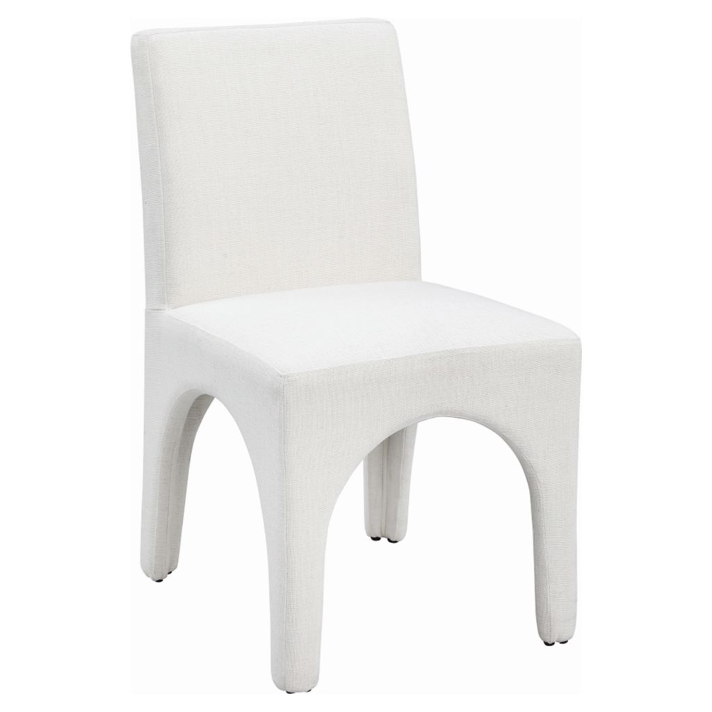This chair is upholstered with a plush cream fabric that has a subtle white weave, giving your dining room a refined and sophisticated look.