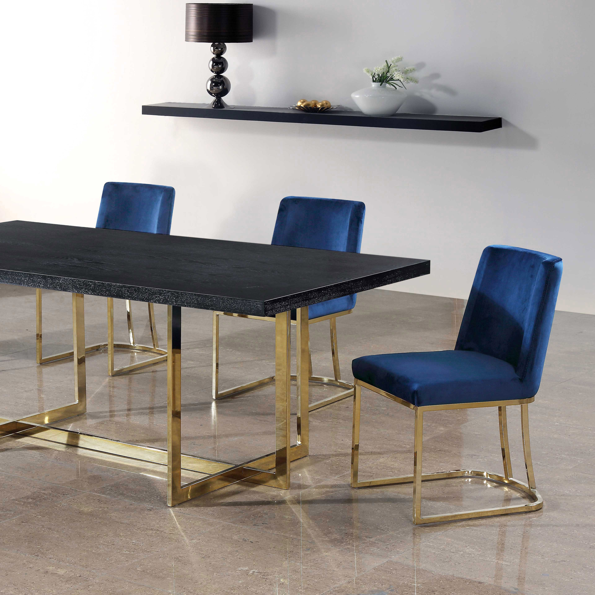 The navy velvet and gold metal combination ensures that you make a big statement in your space.