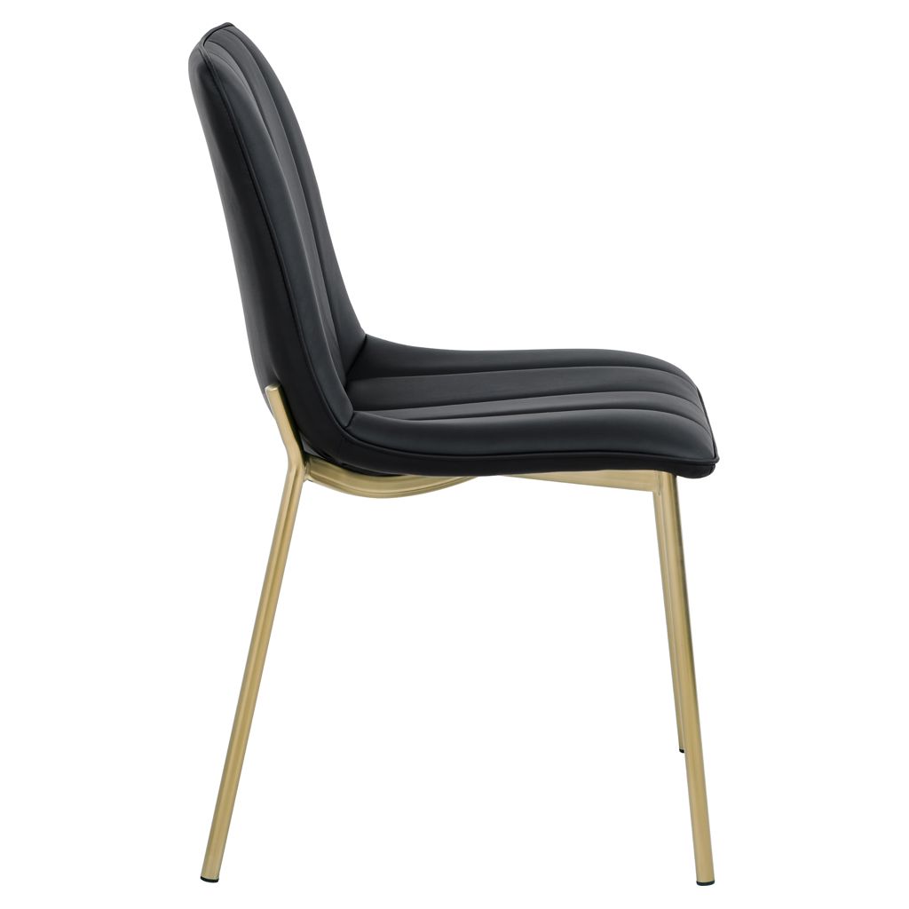 Channel tufting on the back of the chair adds to its overall beautiful demeanor, while brushed gold legs on a metal frame give the chair a durable touch.