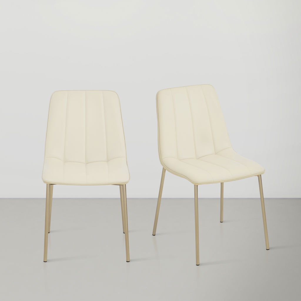 Channel tufting on the back of the chair adds to its overall beautiful demeanor, while brushed gold legs on a metal frame give the chair a durable touch.