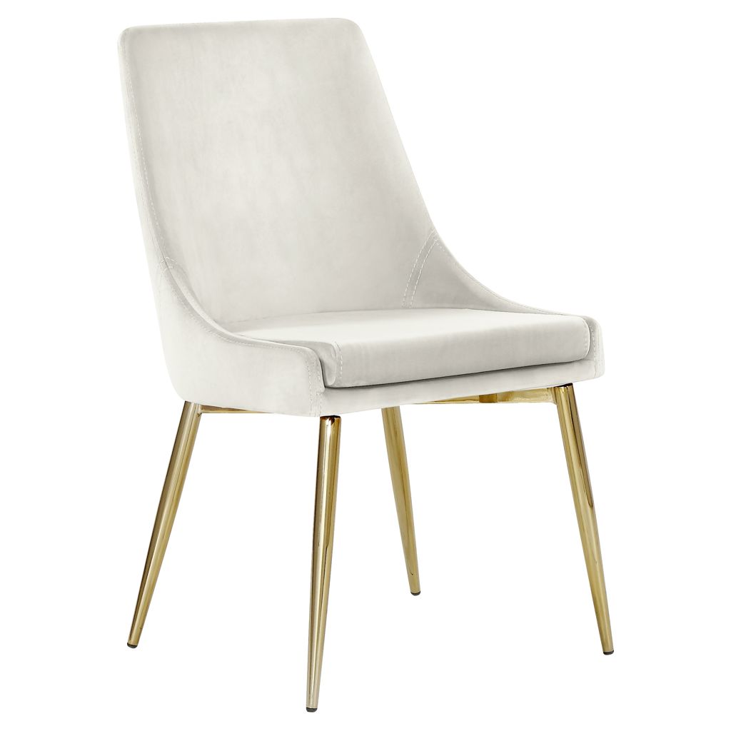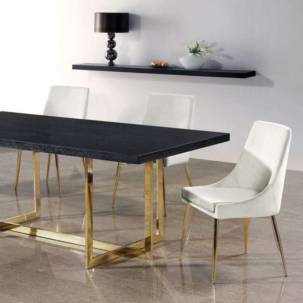Extend contemporary panache to the dining room with this Karina Cream Velvet Dining Chair.