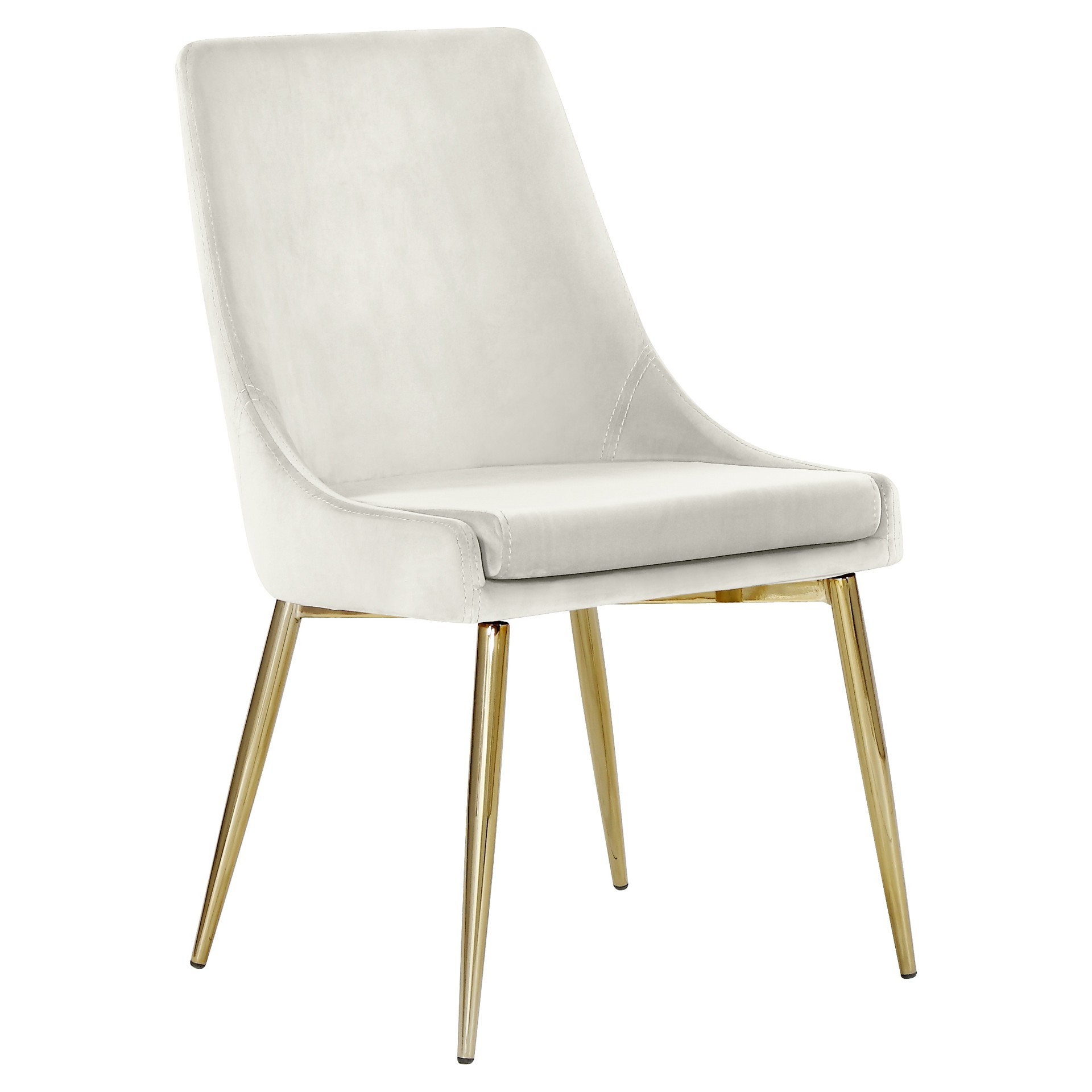 This dining chair features upholstery in sleek cream velvet for a modern look and has an armless design for a retro-inspired vibe.