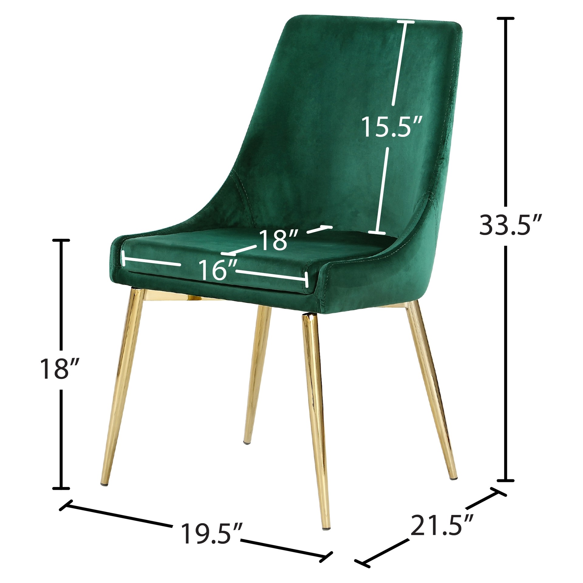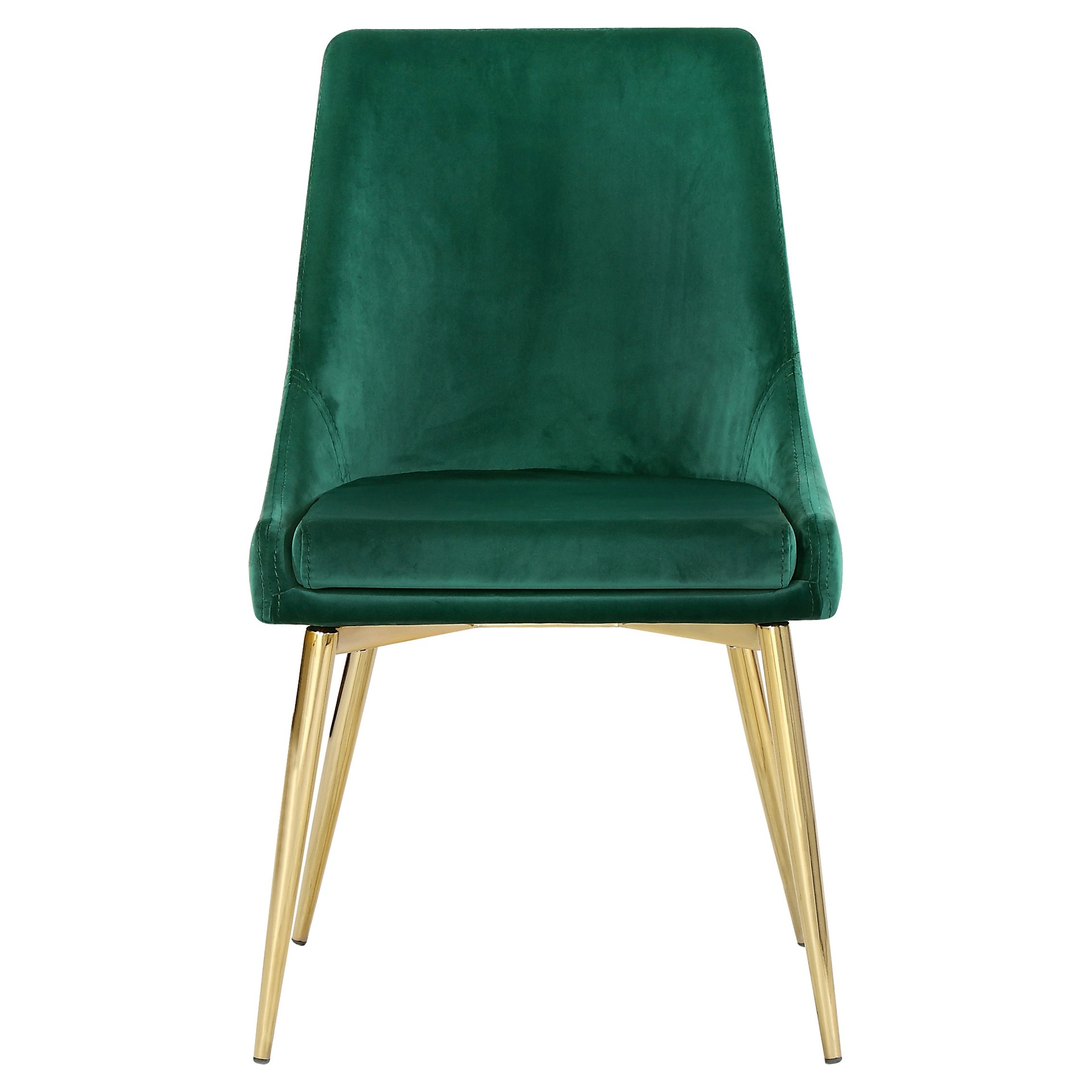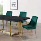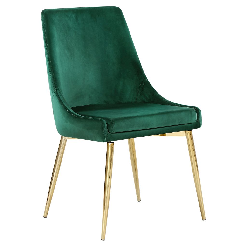 The stark green makes a contrasting statement with ease. The slanted legs of this chair are gold finished for added modernity and to provide reliable and durable support while you dine.