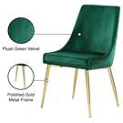 This dining chair features upholstery in sleek green velvet for a modern look and has an armless design for a retro-inspired vibe.