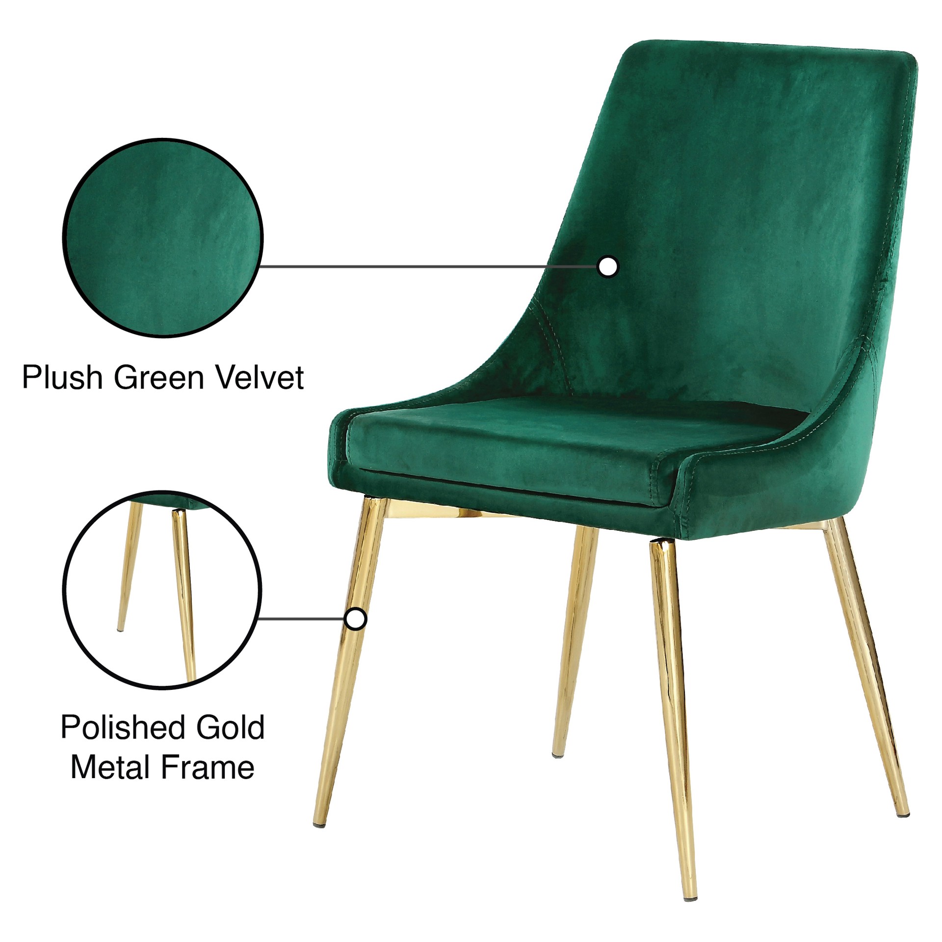 Extend contemporary panache to the dining room with this Karina Green Velvet Dining Chair.