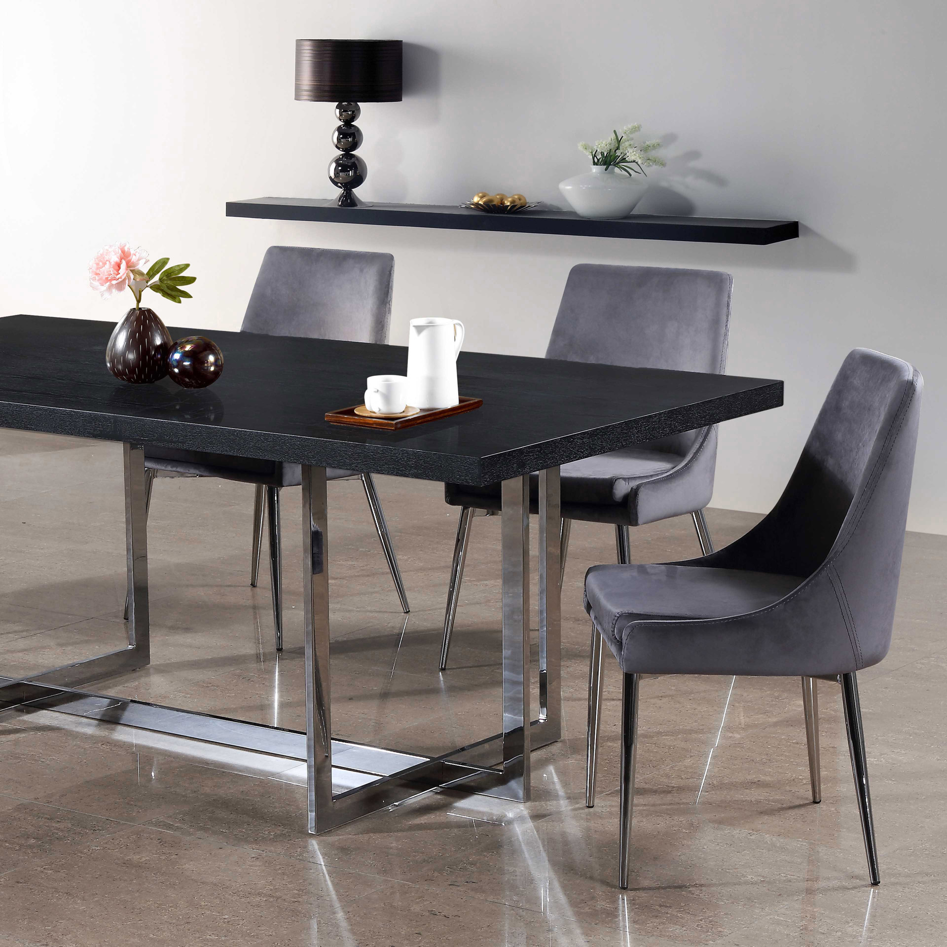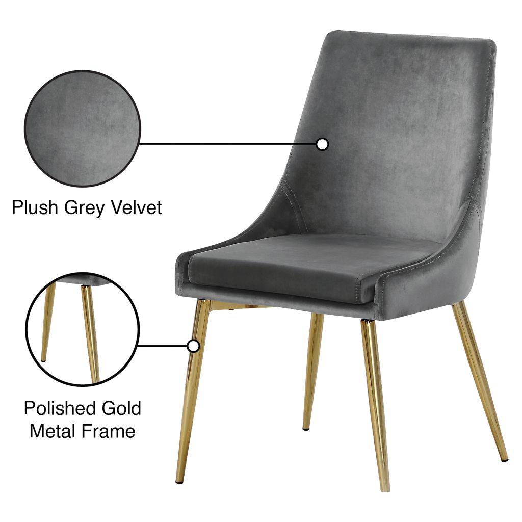 Extend contemporary panache to the dining room with this Karina Grey Velvet Dining Chair.