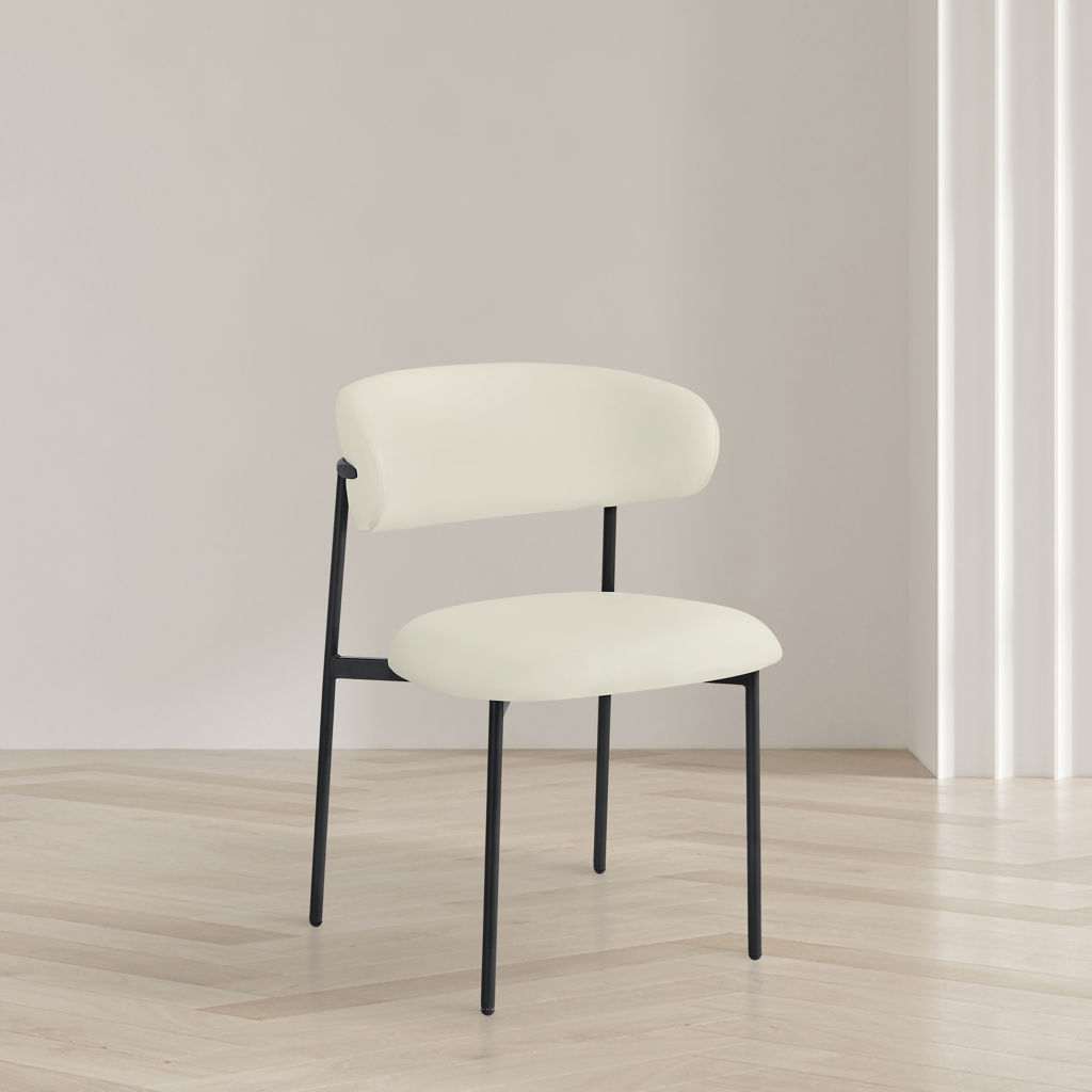 Boasting a matte black finish on the frame and legs for an elegant, refined feel, this faux leather dining chair features a curved back for total comfort all the way through the desert course.