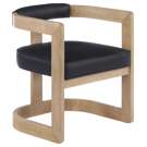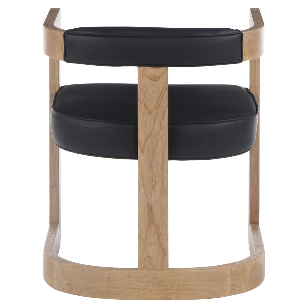 A soft black faux leather cushion and backrest add comfort while you sit and dine, as well as give the chair a 'wild side' flavor. Its contemporary design works well in any living space.