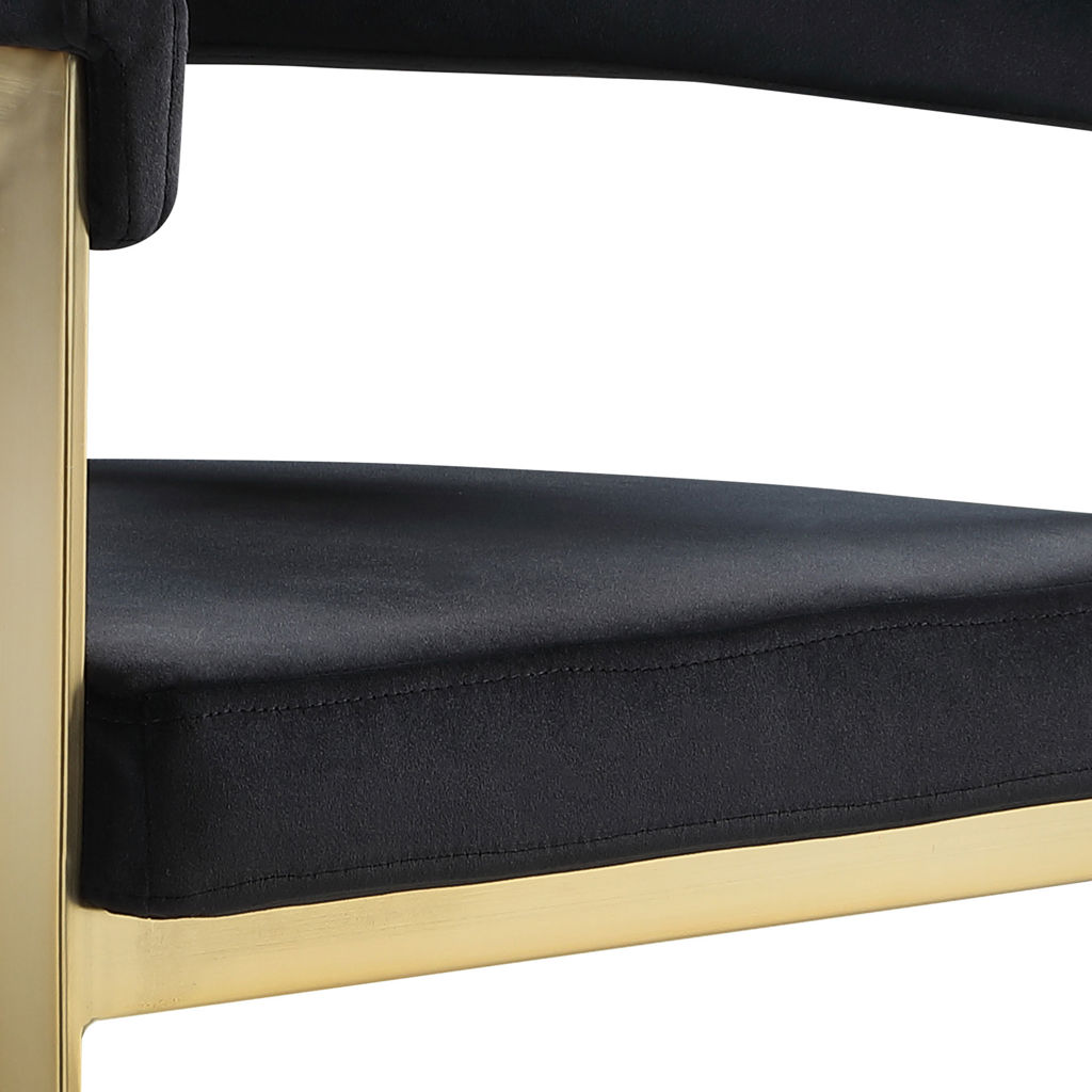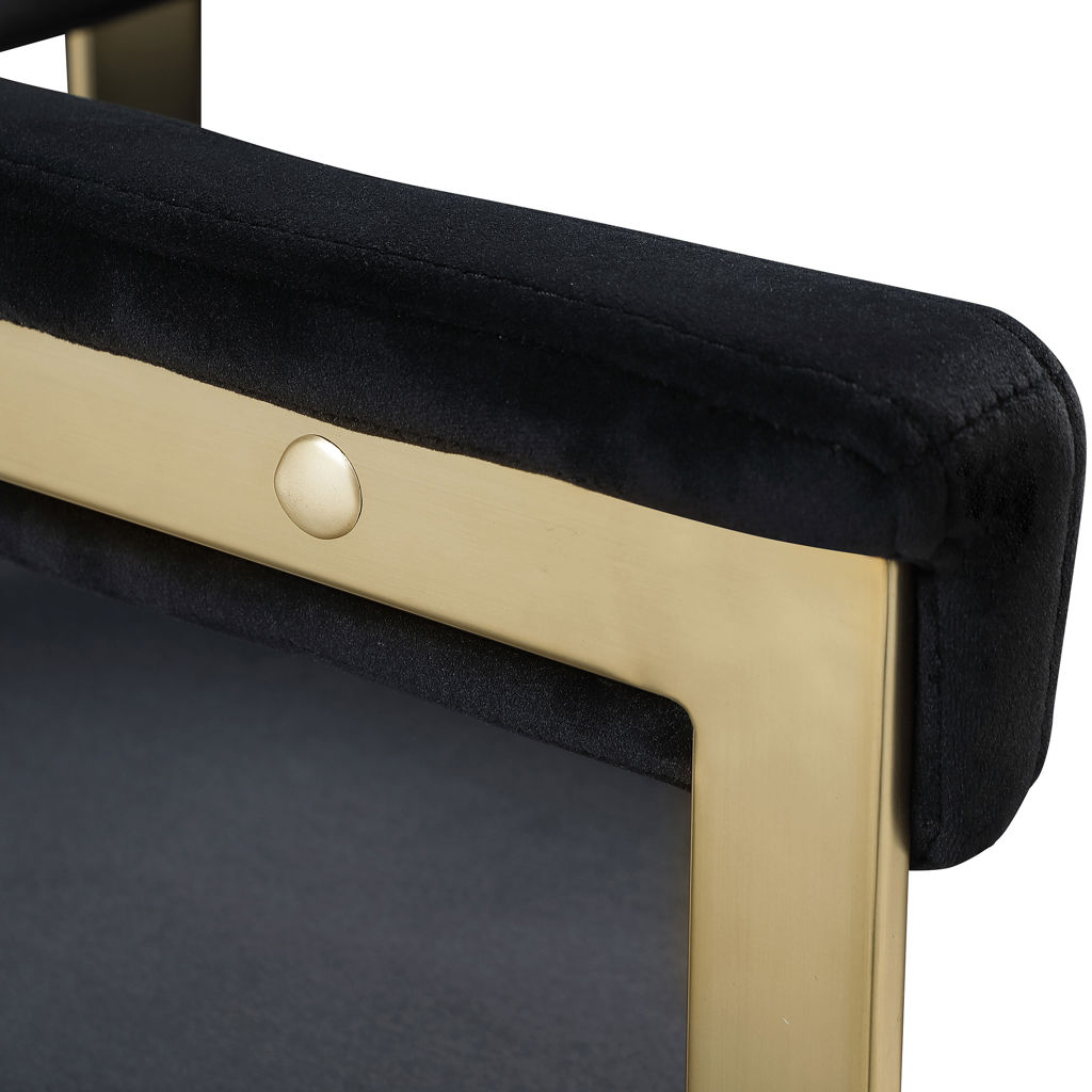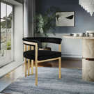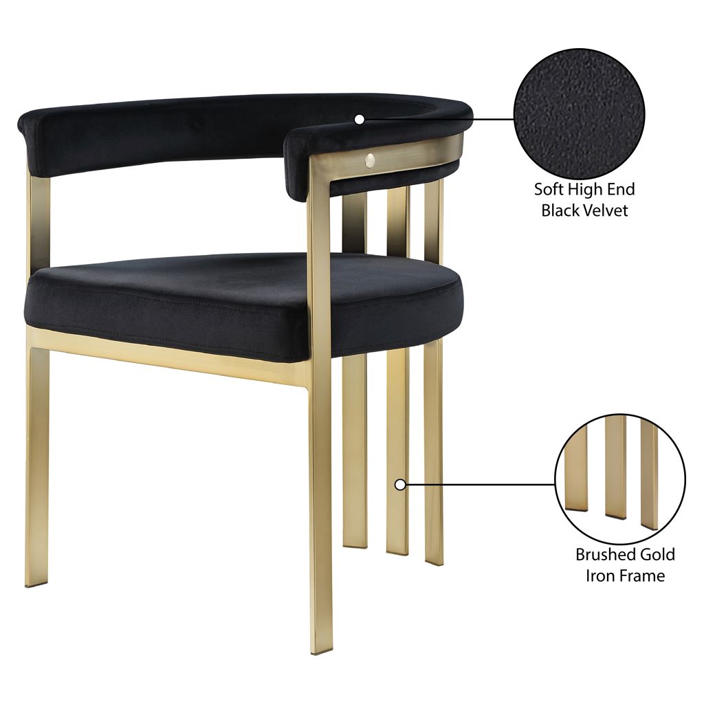 Turn your dining space into a contemporary haven with this Marcello black velvet dining chair. Its soft, high-end black velvet is soft for you to sit on, while its brushed brass iron frame ensures durability for years to come.