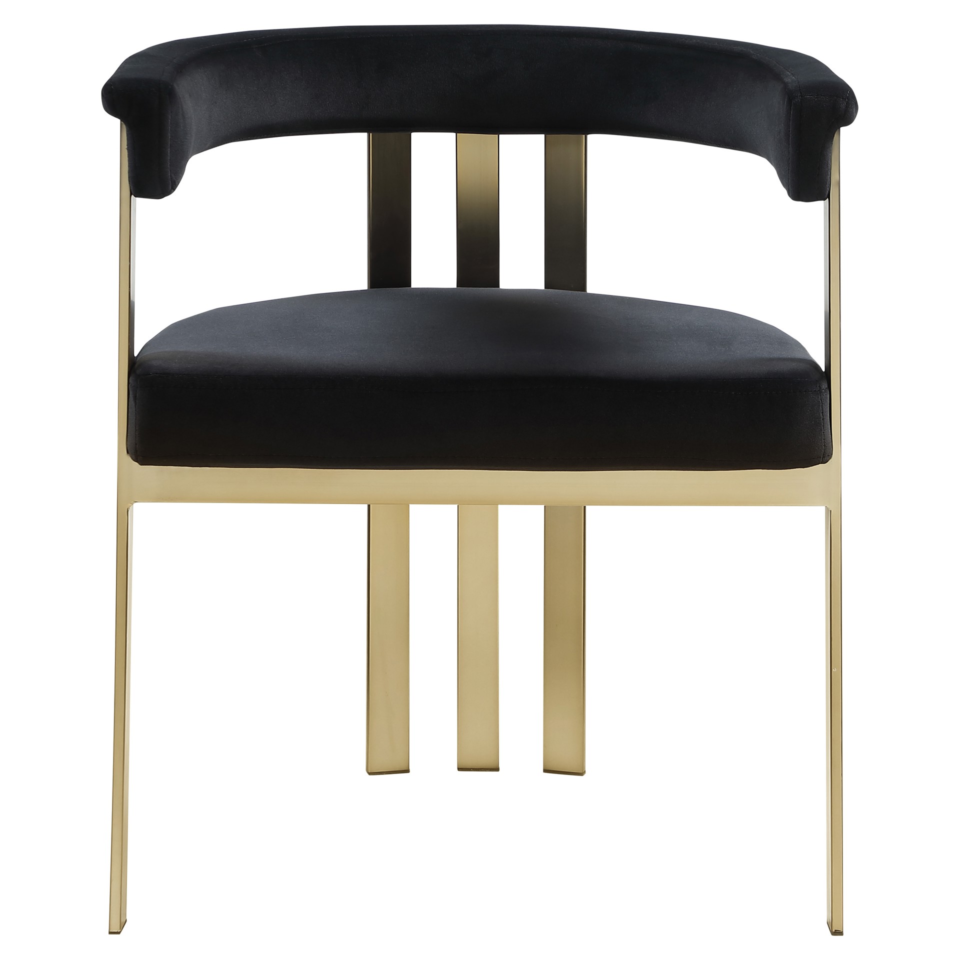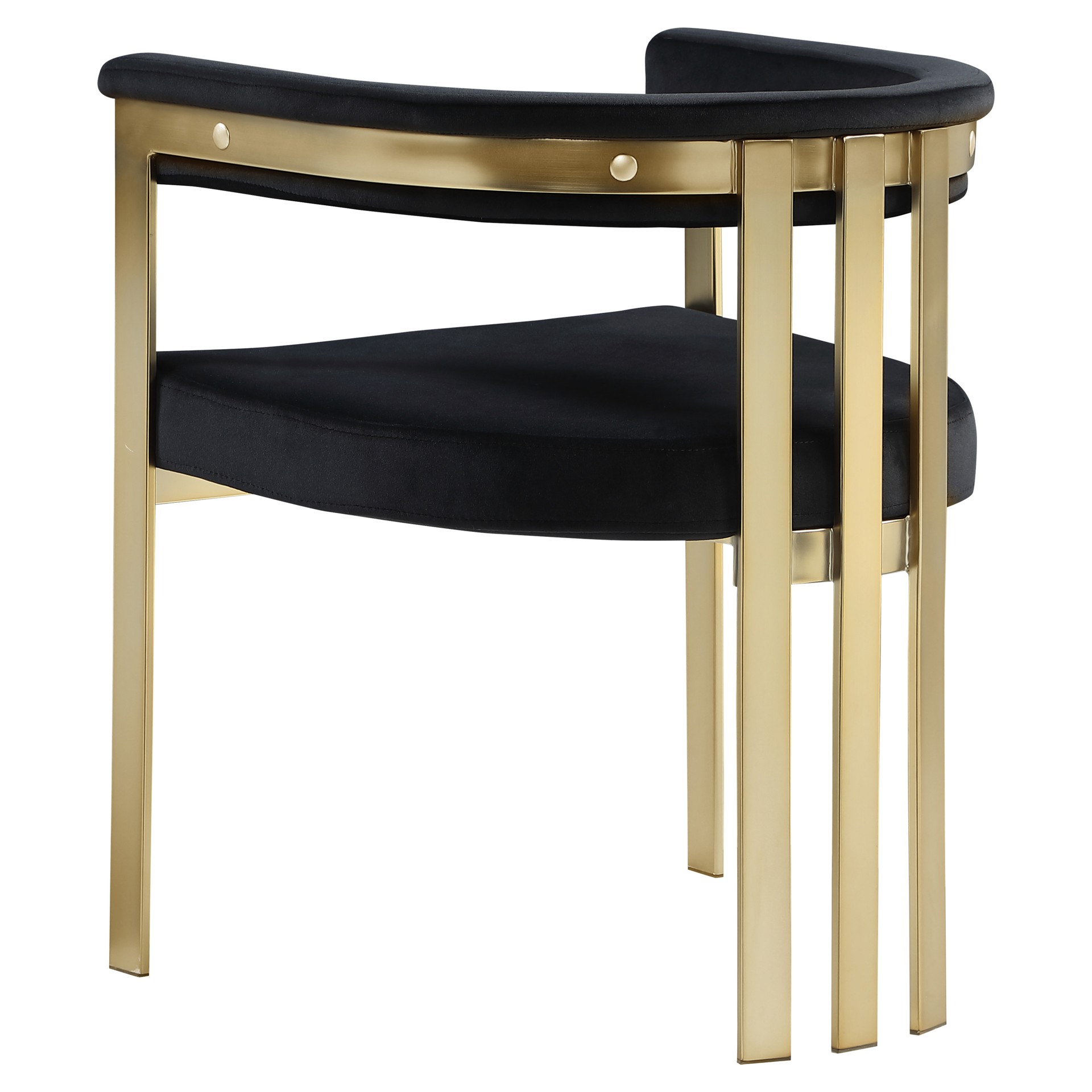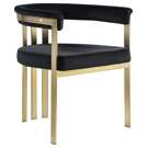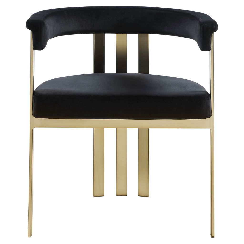 Turn your dining space into a contemporary haven with this Marcello black velvet dining chair. Its soft, high-end black velvet is soft for you to sit on, while its brushed brass iron frame ensures durability for years to come.