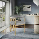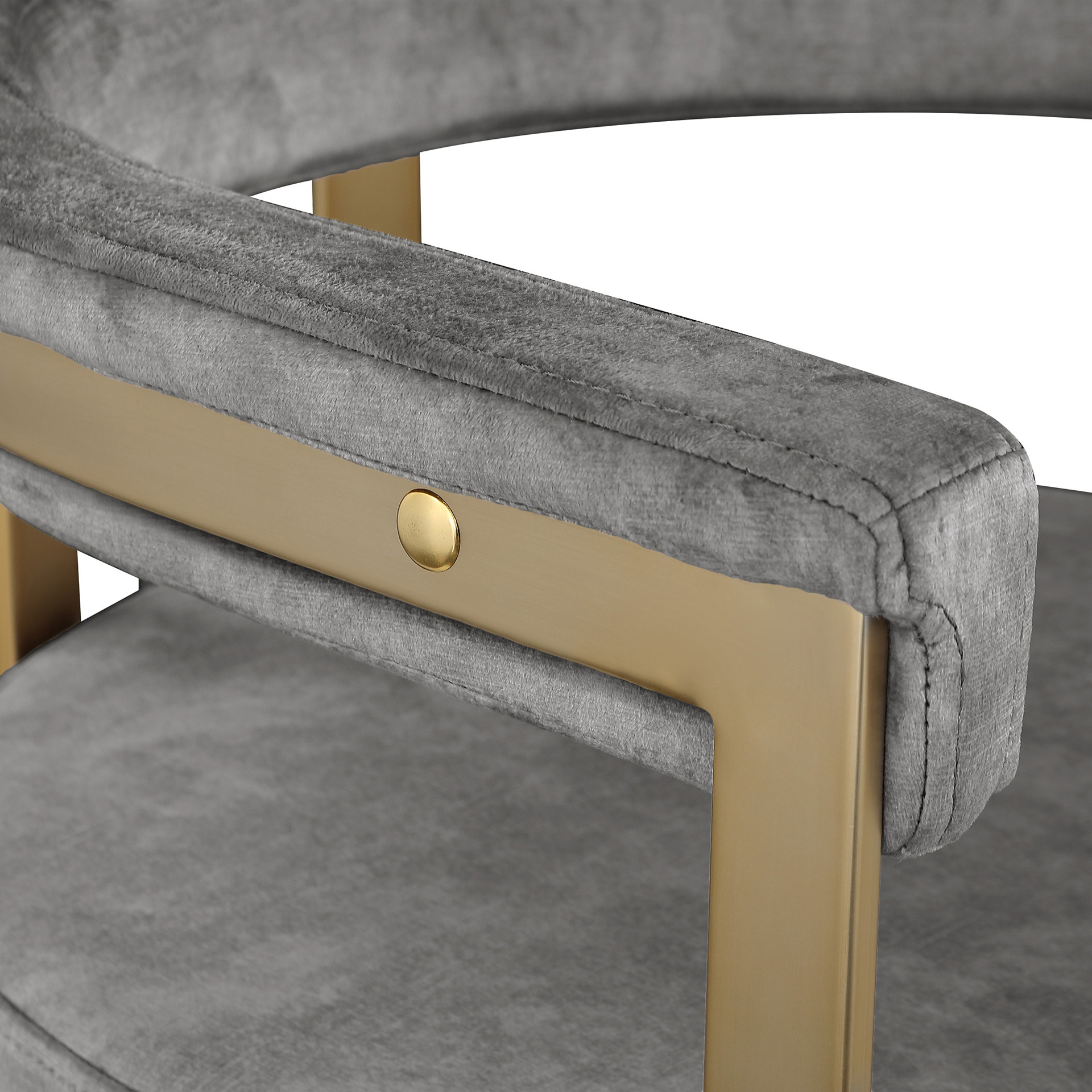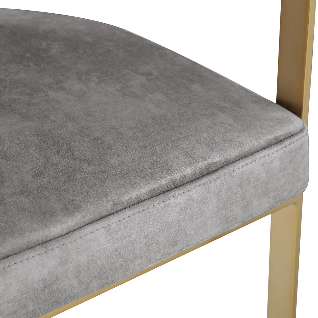 Its soft, high-end grey velvet is soft for you to sit on, while its brushed brass iron frame ensures durability for years to come.
