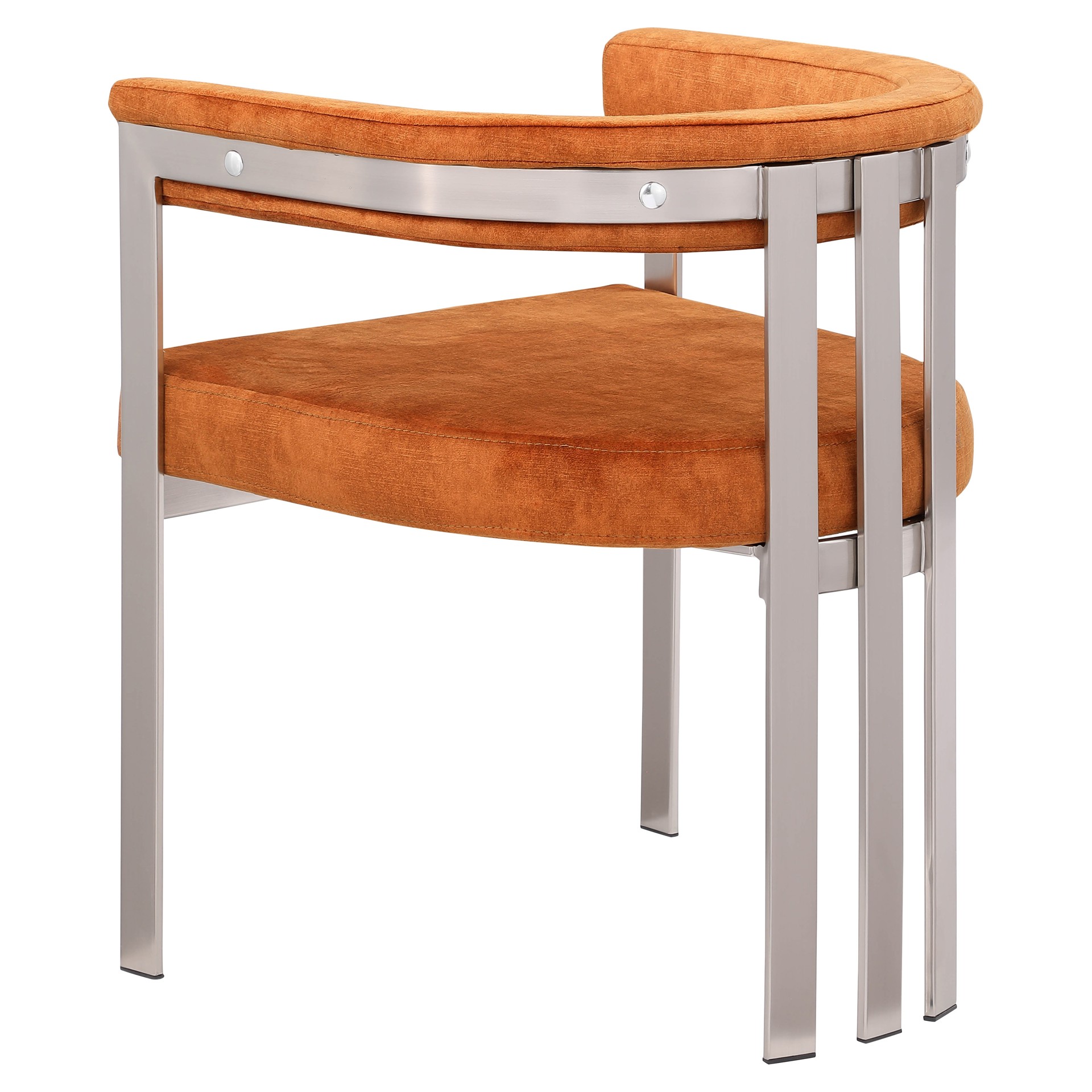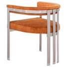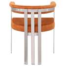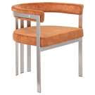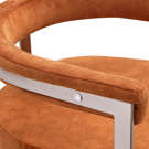 Its soft, high-end cognac velvet is soft for you to sit on, while its brushed chrome iron frame ensures durability for years to come.