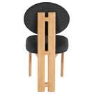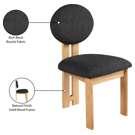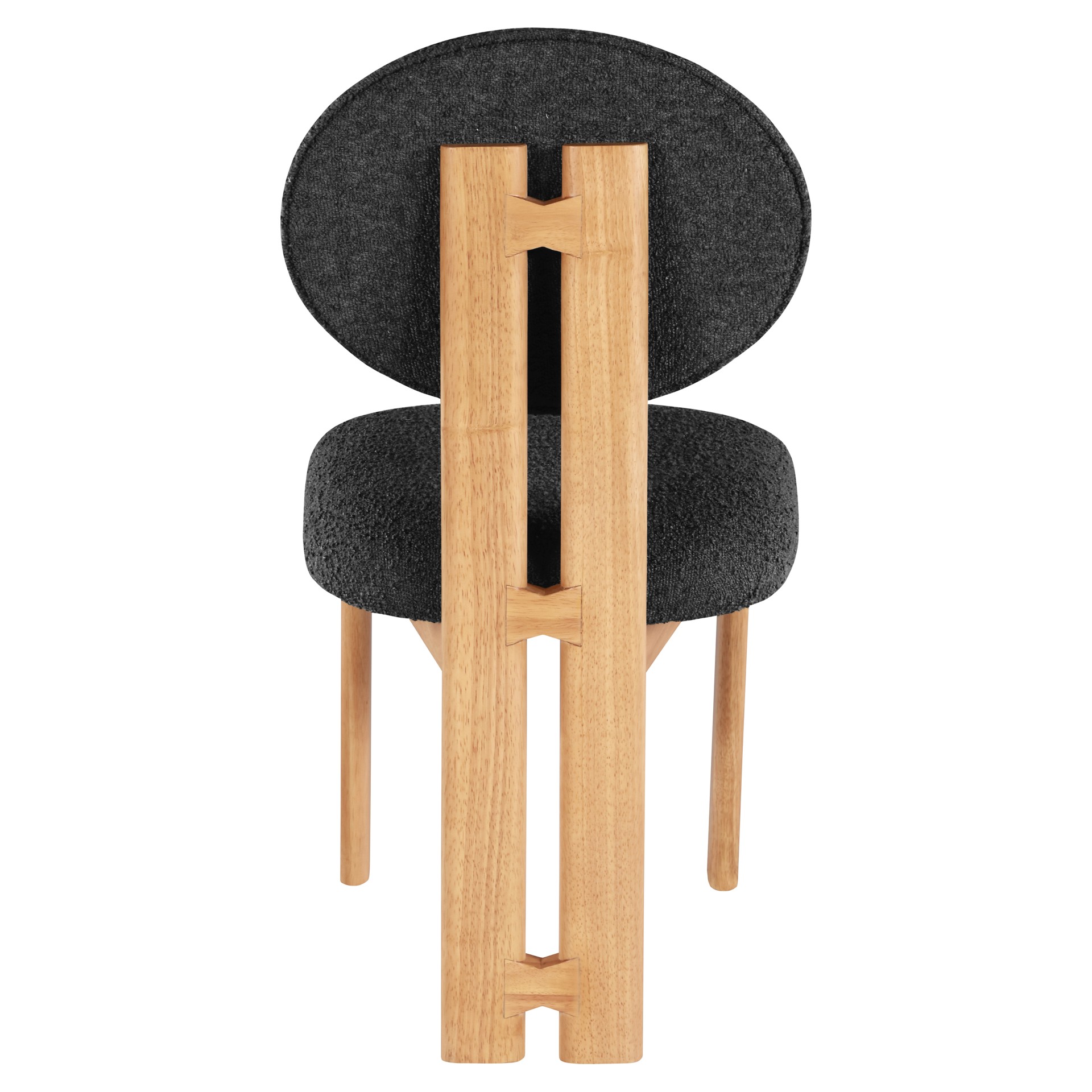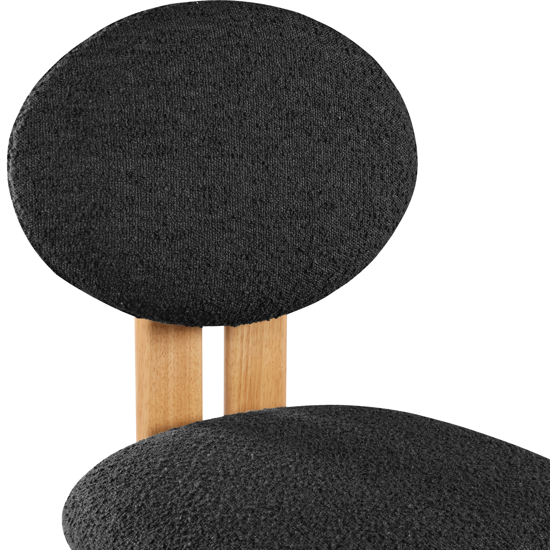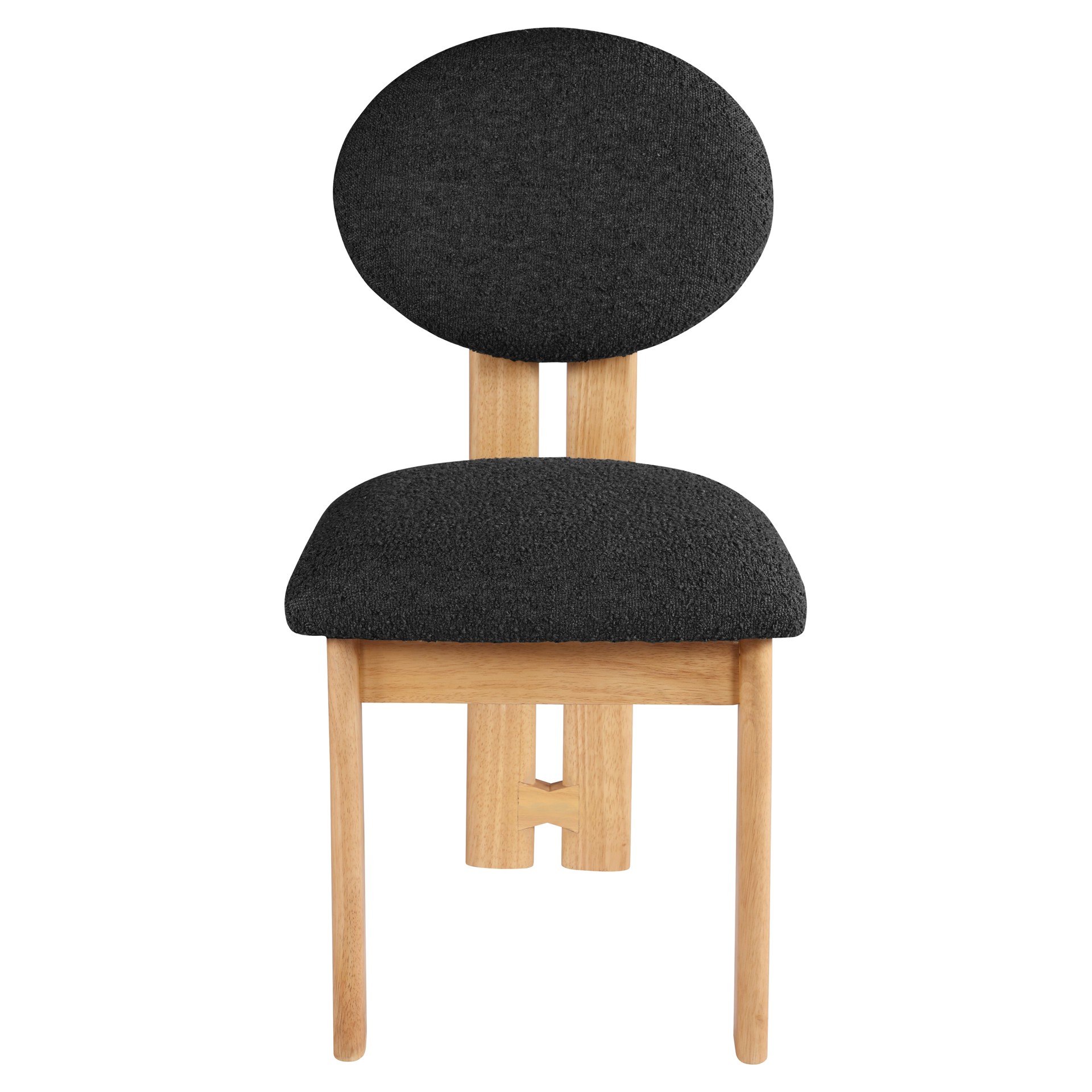 Featuring a lustrous black boucle fabric and a sturdy natural finish solid wood frame, this piece is sure to captivate and entice.