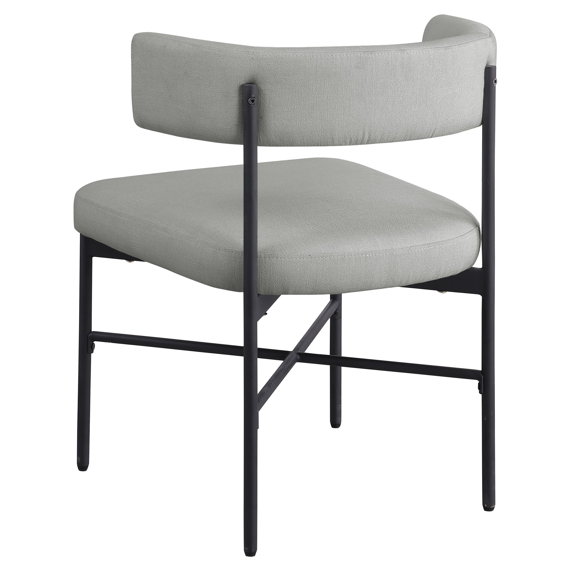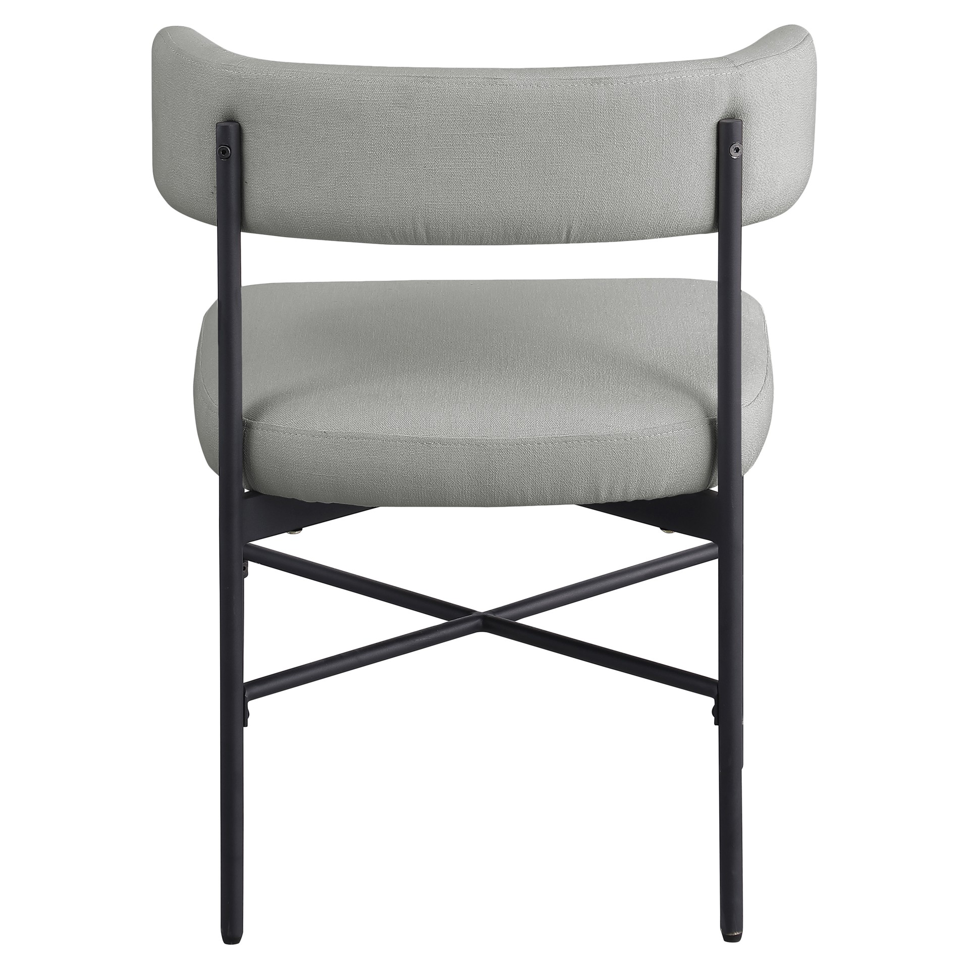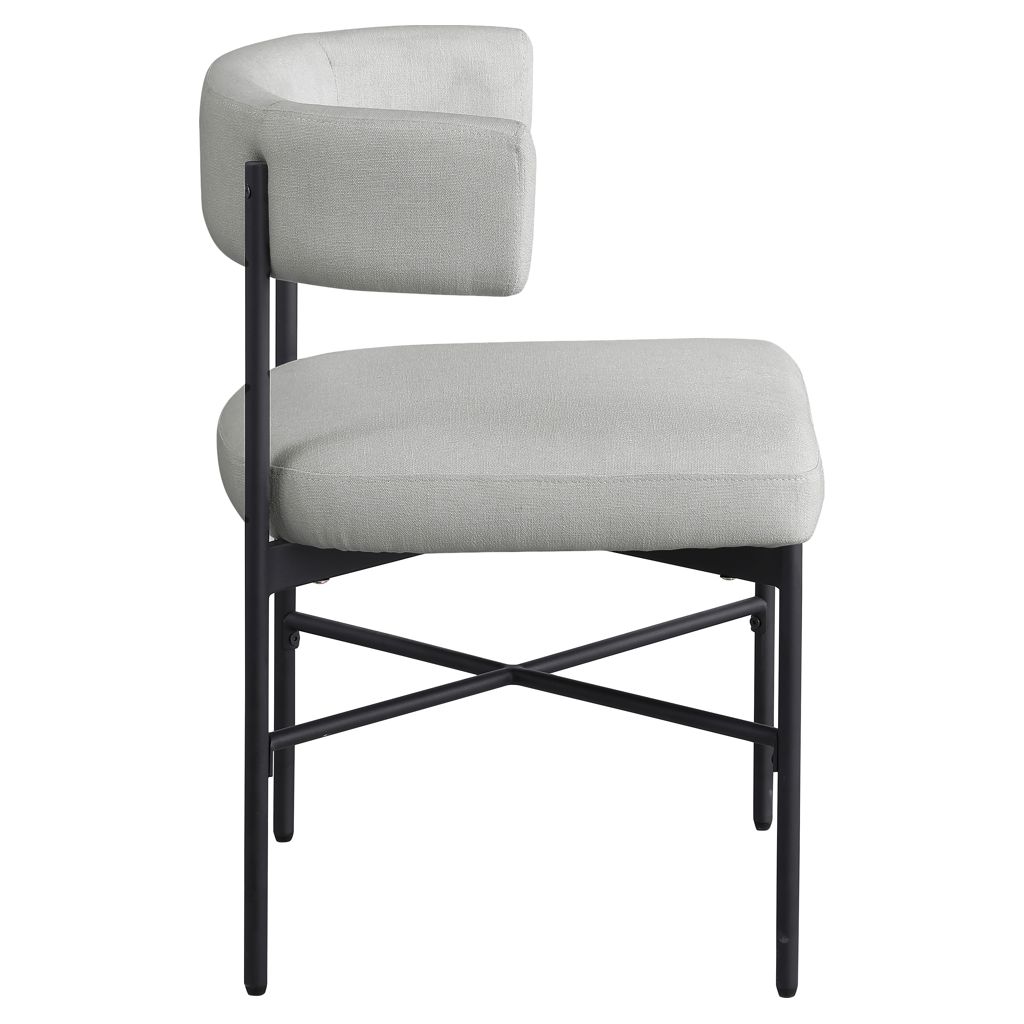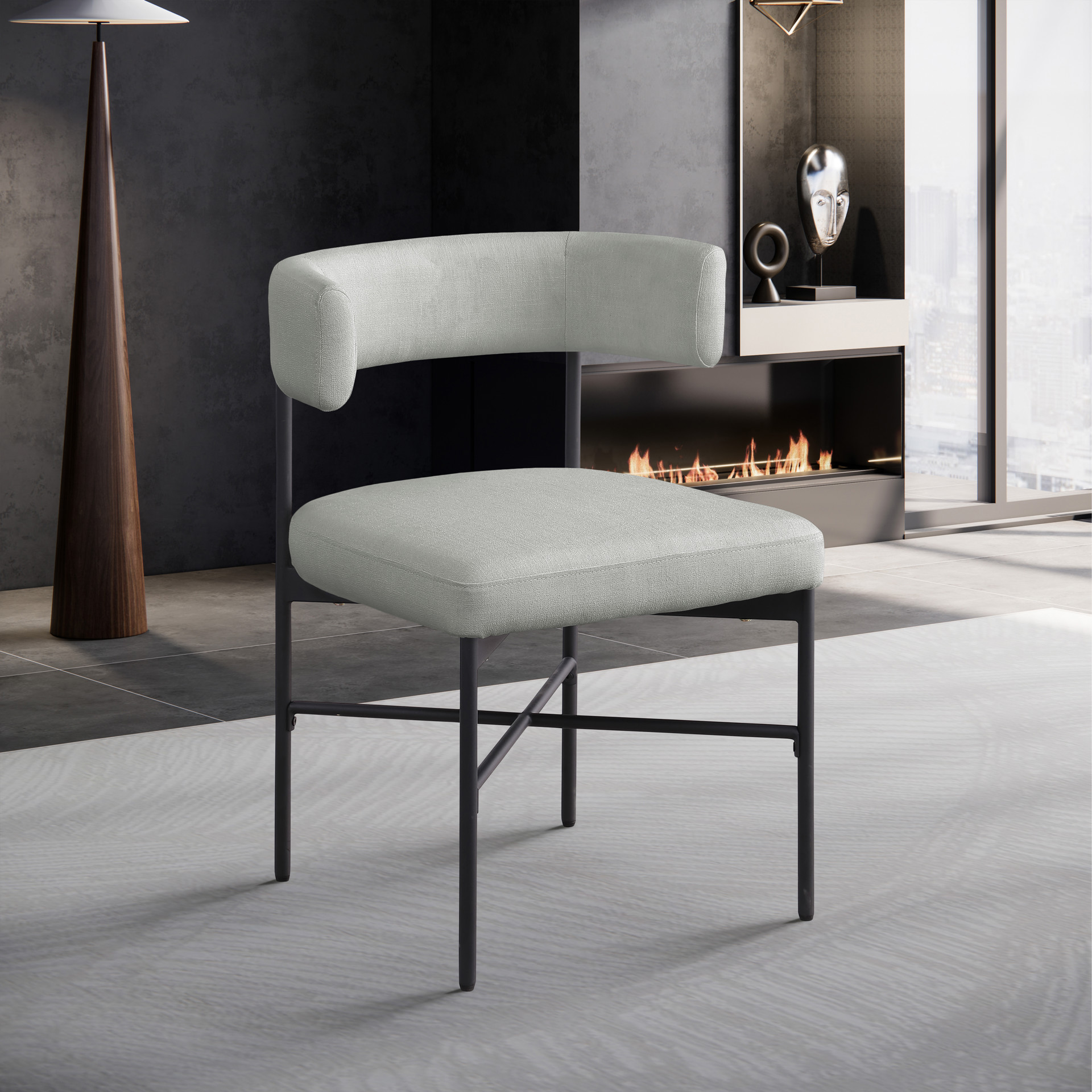 This lovely chair features rich light grey durable linen textured fabric upholstery on the curved seat back and seat, giving your space an elegant and refined feel.
