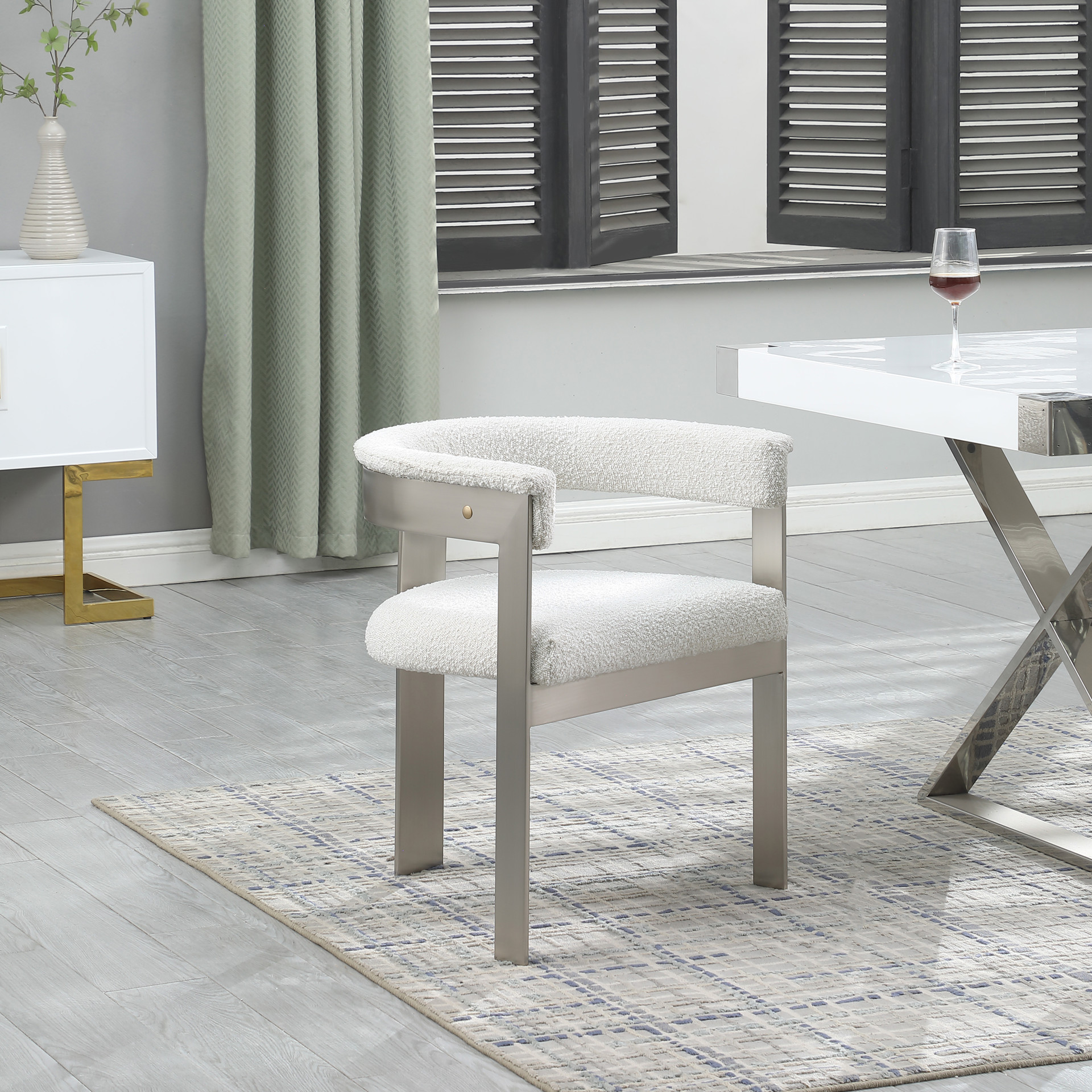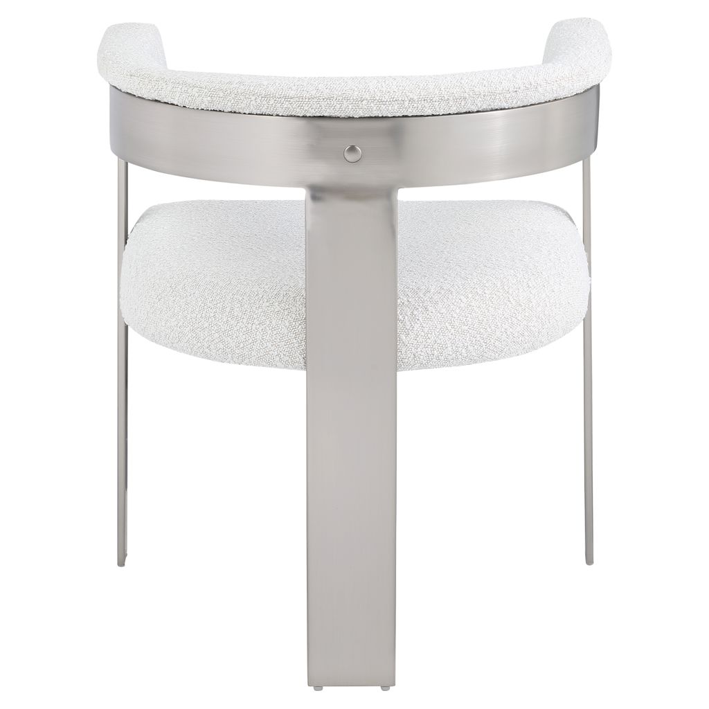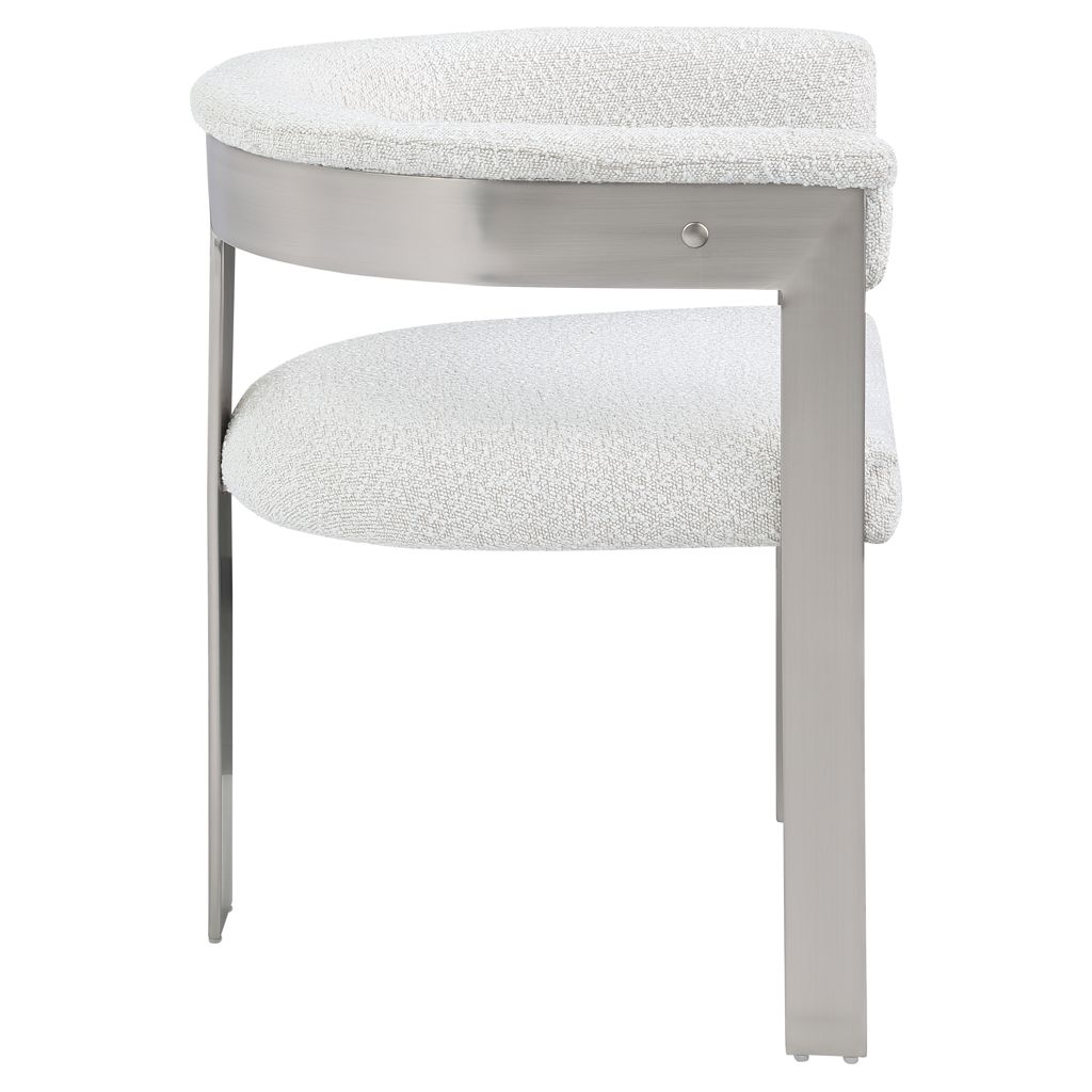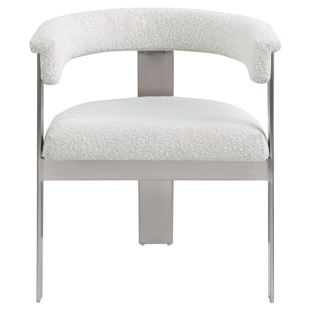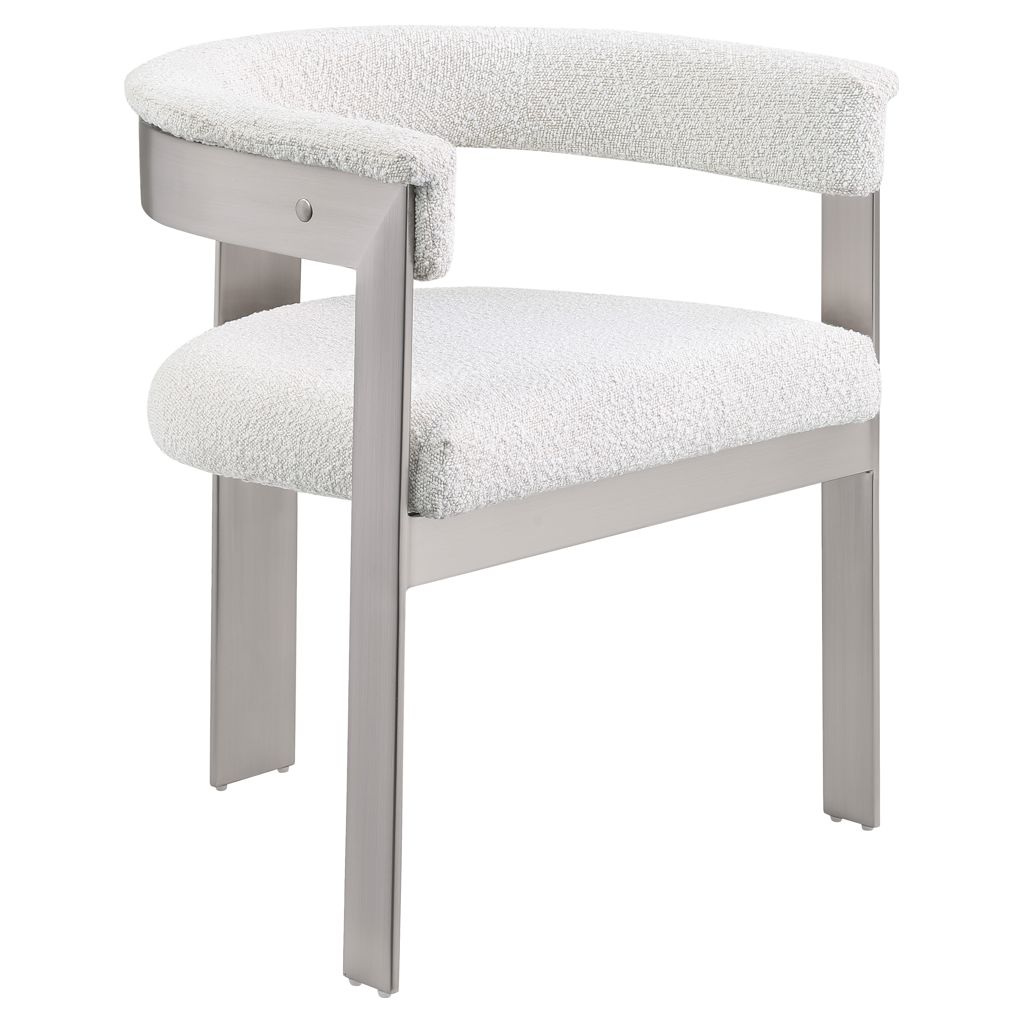 Enjoy an elevated dining experience when you bring home this cream Romeo boucle dining chair.