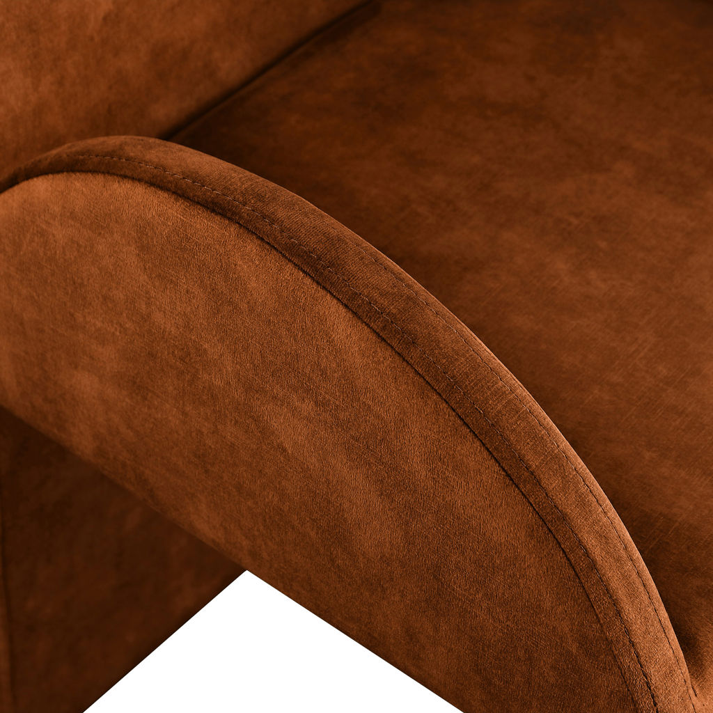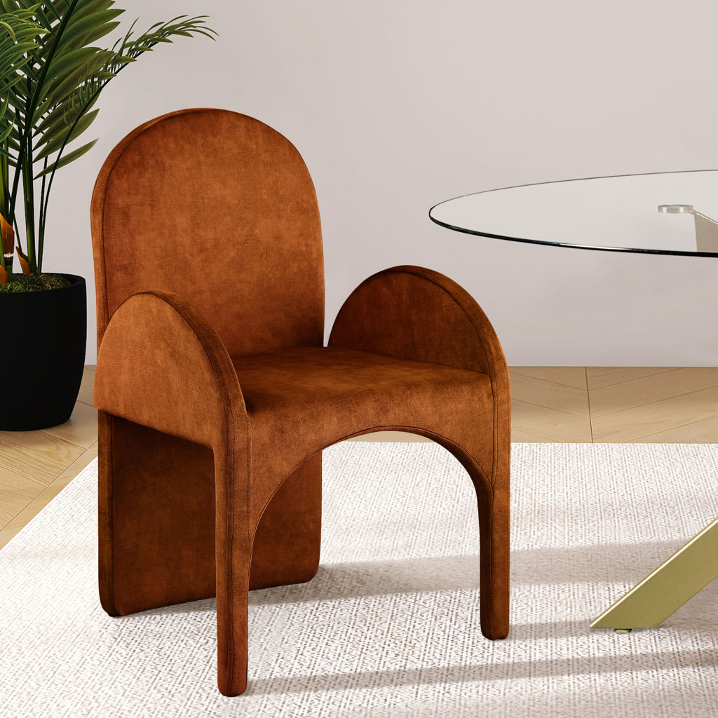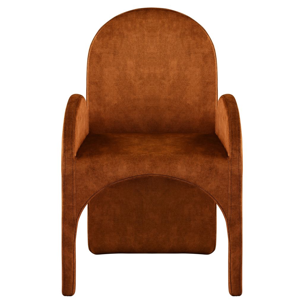 Featuring a luxurious cognac velvet upholstery, this fully upholstered armchair offers comfort and support while you enjoy your meals. Its steel frame ensures durability, so you can enjoy the chair for years to come.