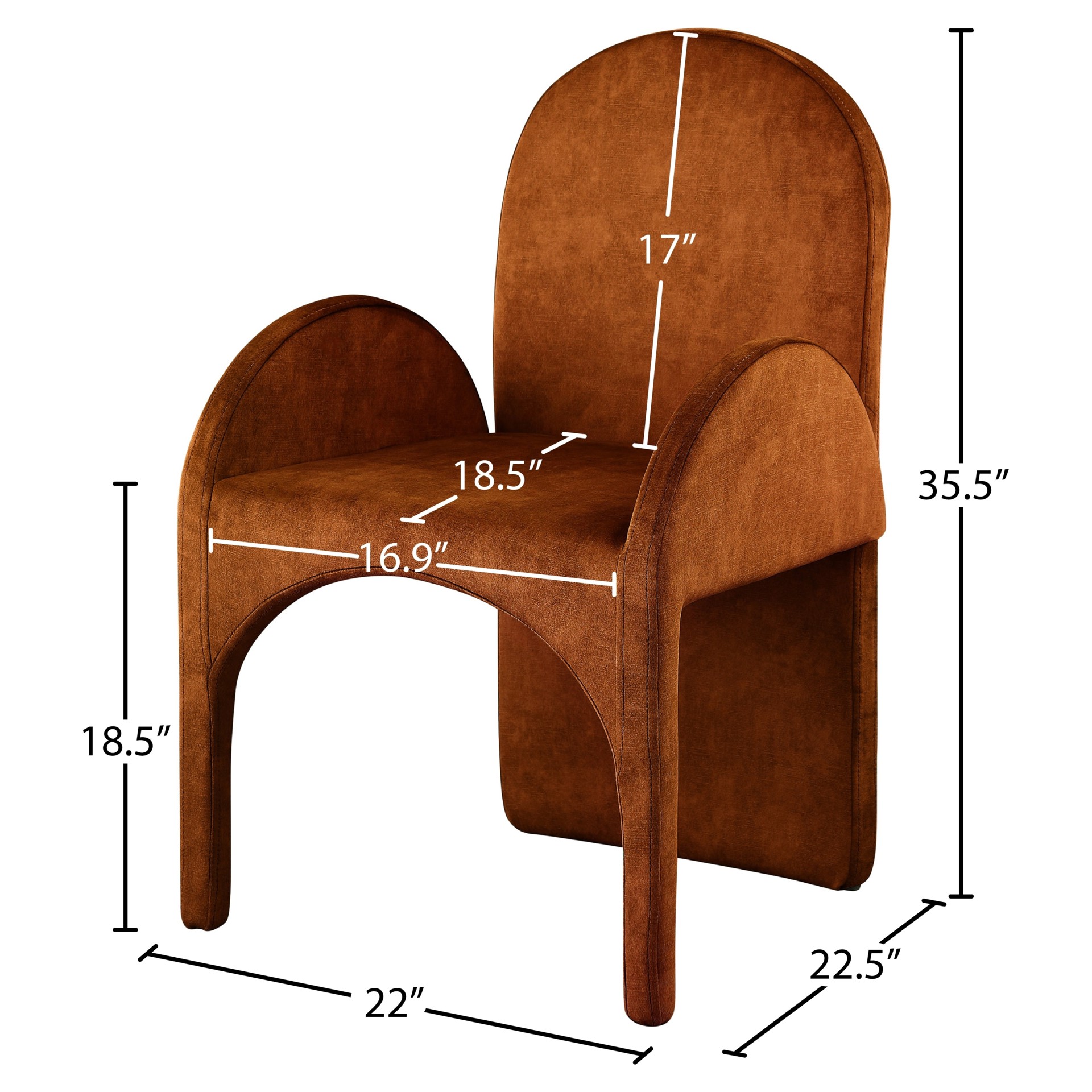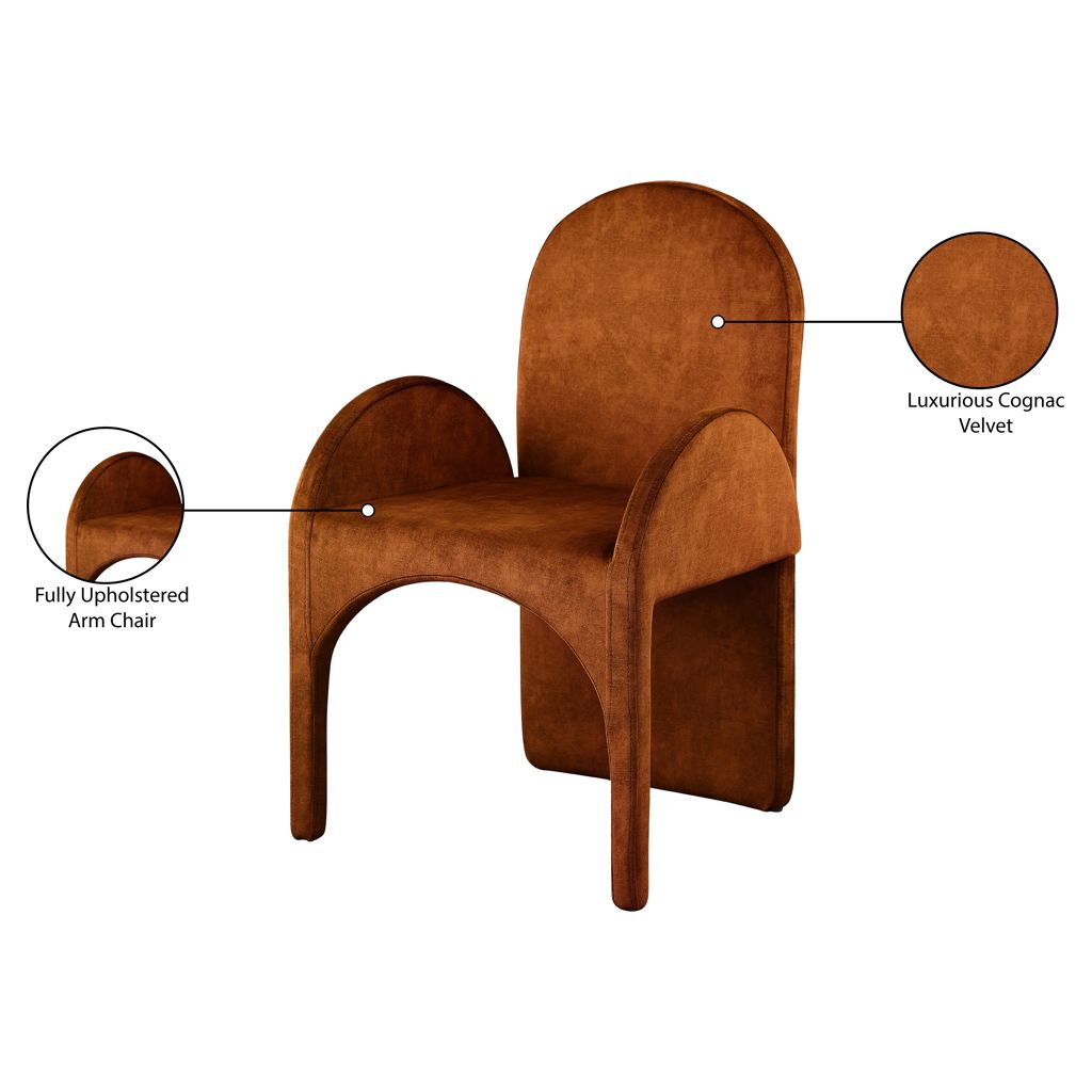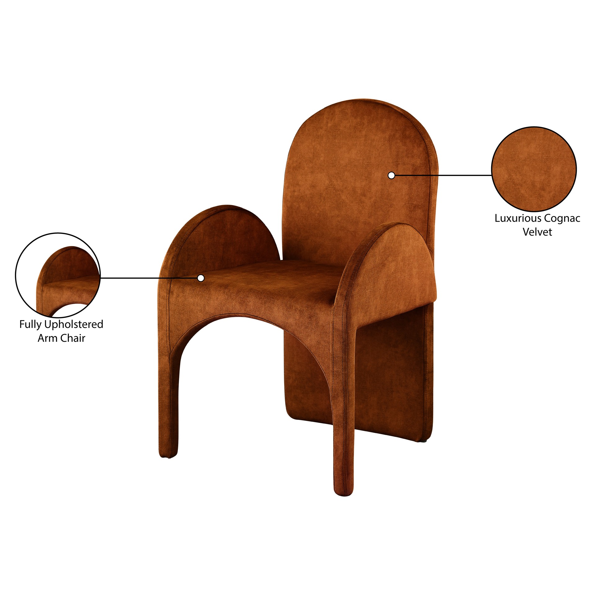 Turn your dining room into a regal haven with this Summer cognac velvet dining arm chair.