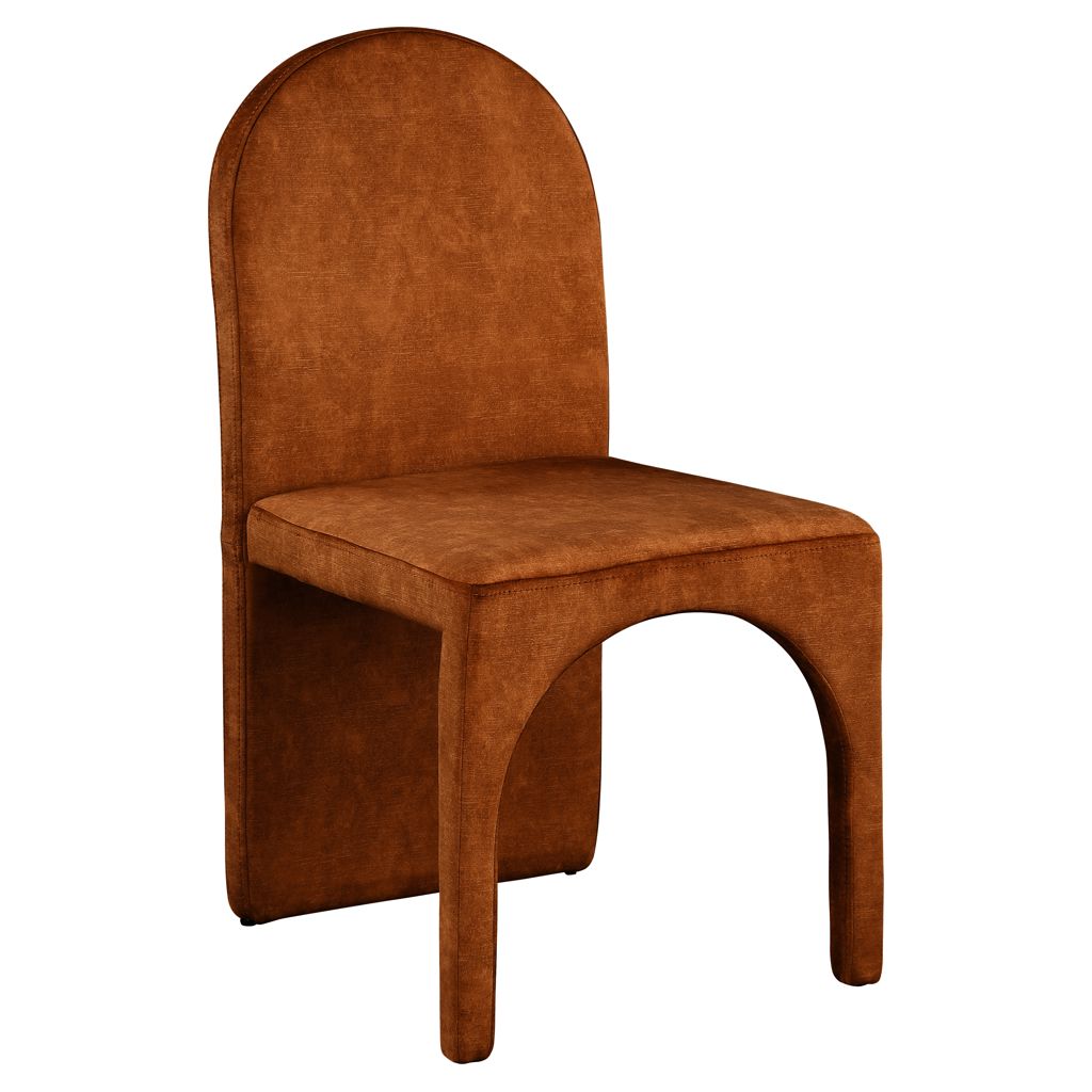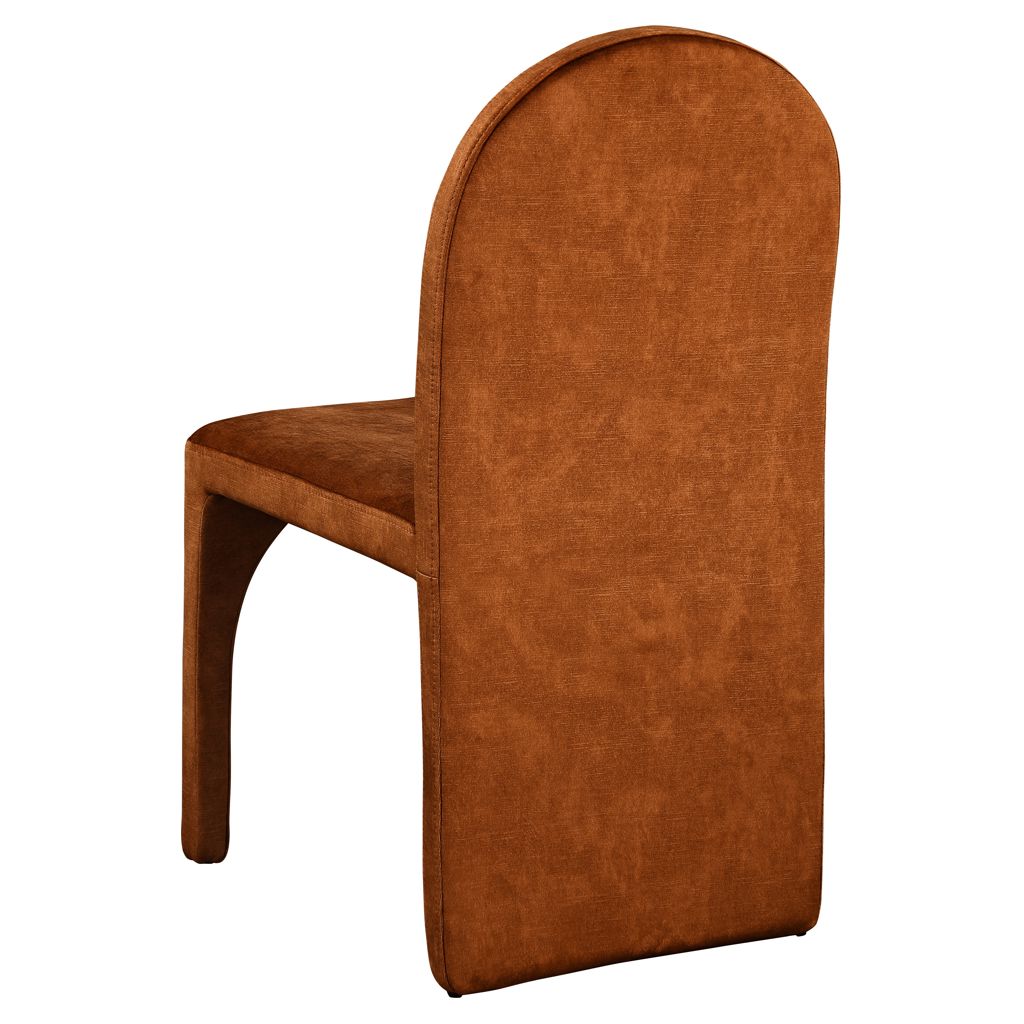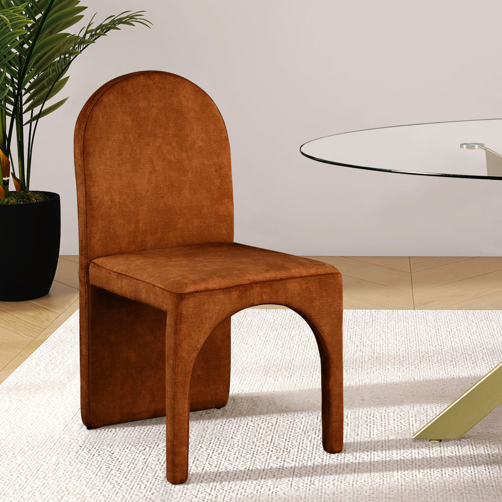 Featuring a luxurious cognac velvet upholstery, this fully upholstered side chair offers comfort and support while you enjoy your meals.