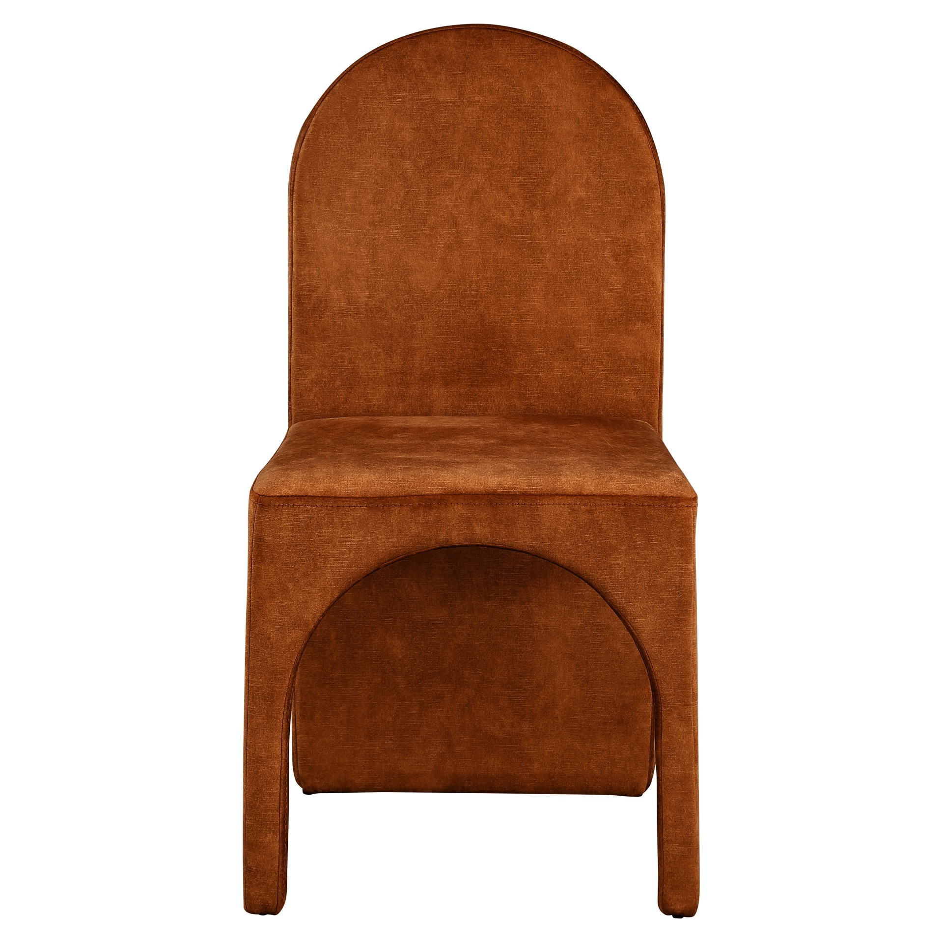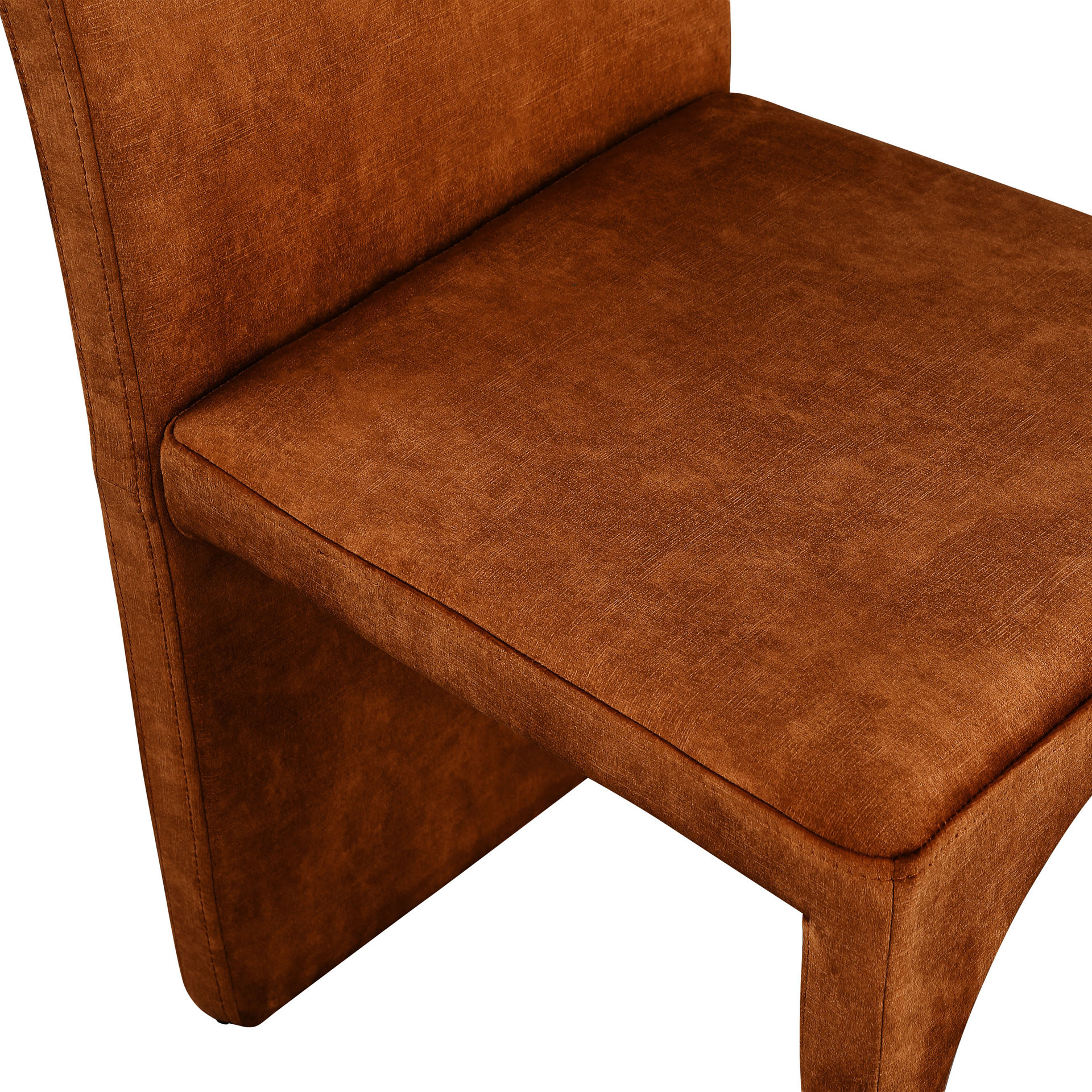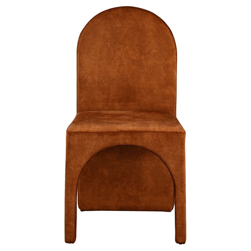 Featuring a luxurious cognac velvet upholstery, this fully upholstered side chair offers comfort and support while you enjoy your meals.