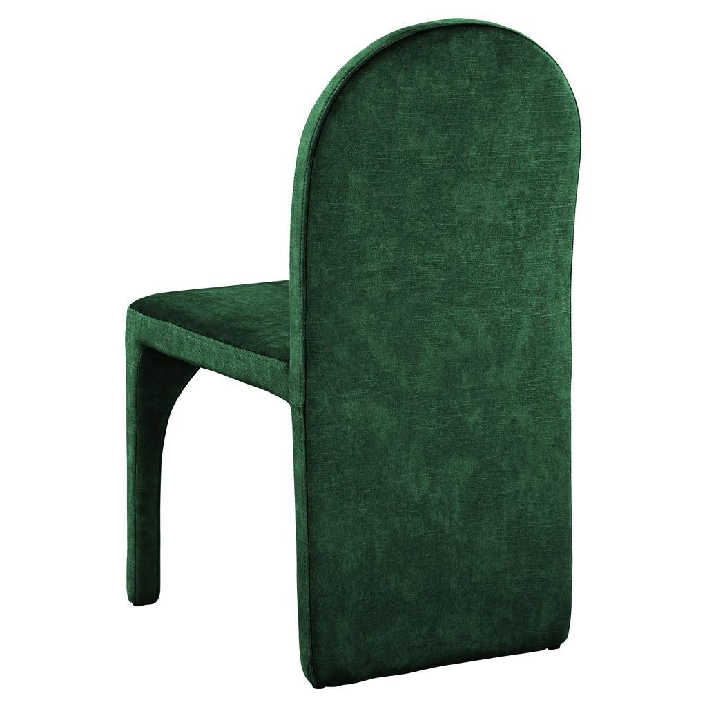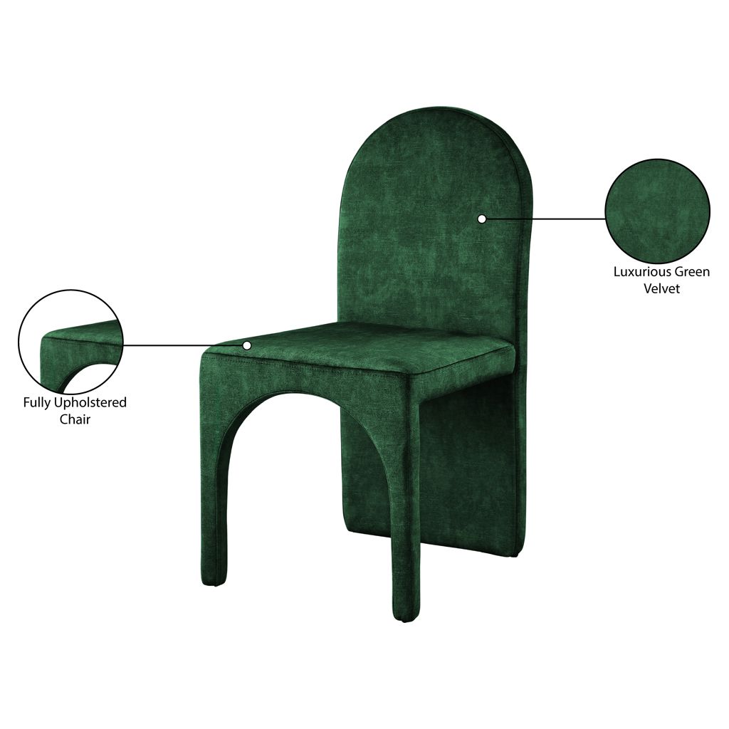 Featuring a luxurious green velvet upholstery, this fully upholstered side chair offers comfort and support while you enjoy your meals.
