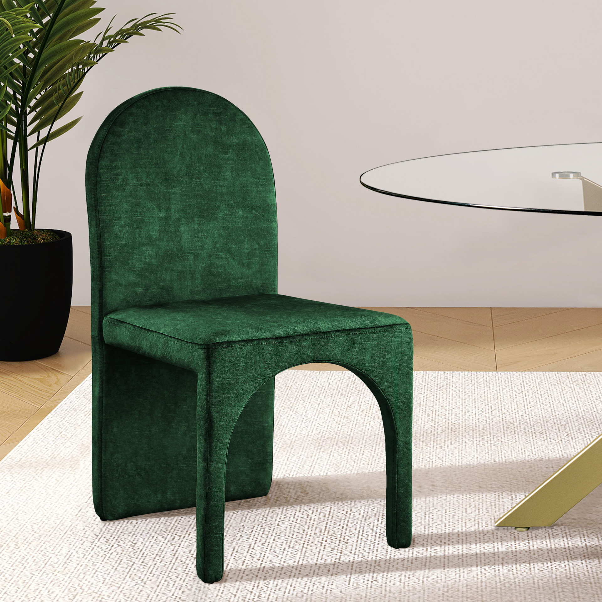 Its arched, contemporary design is both unique and fashionable, providing your dinner guests with a conversation piece as well as a comfortable place to sit.