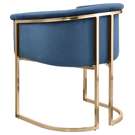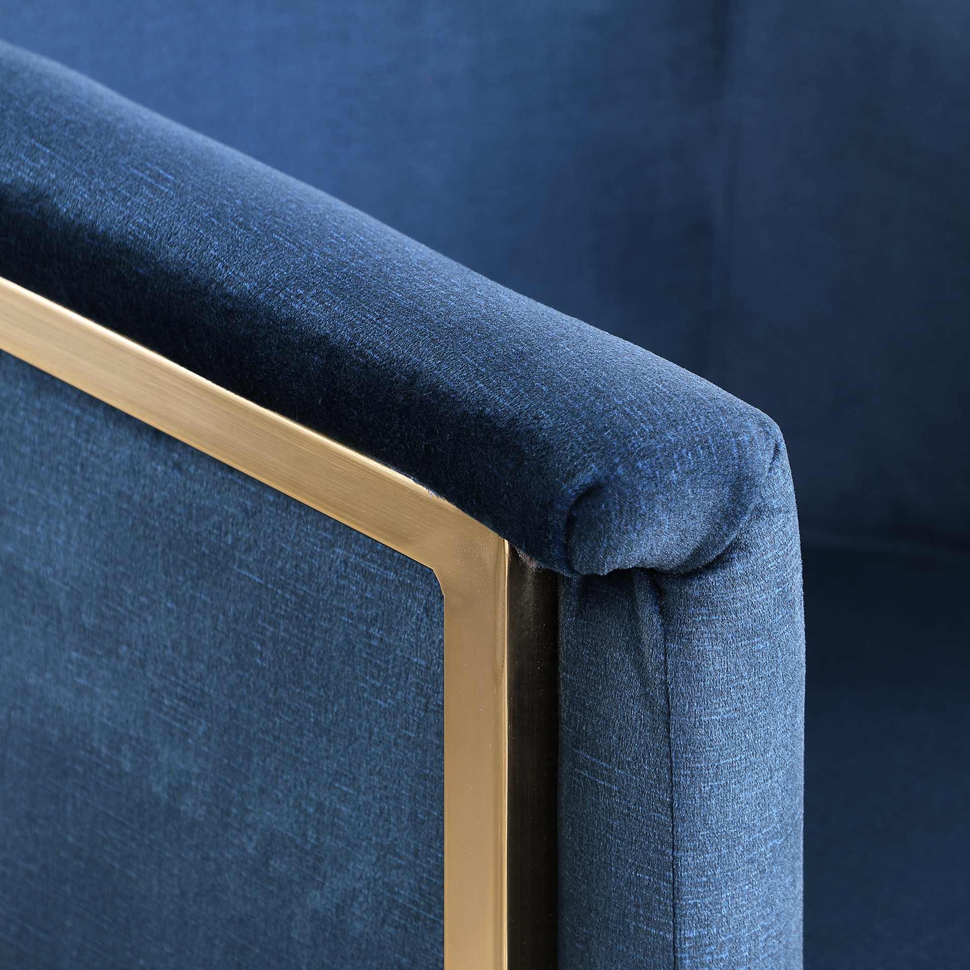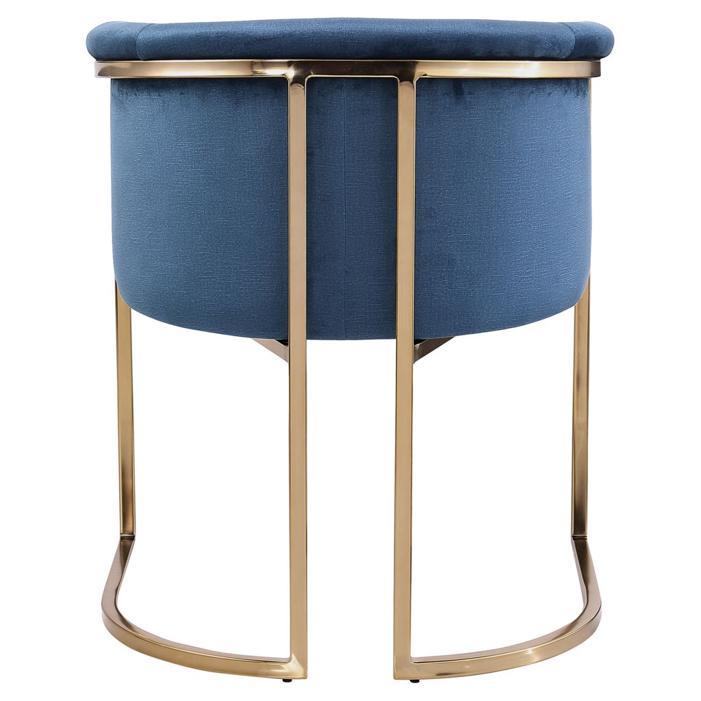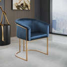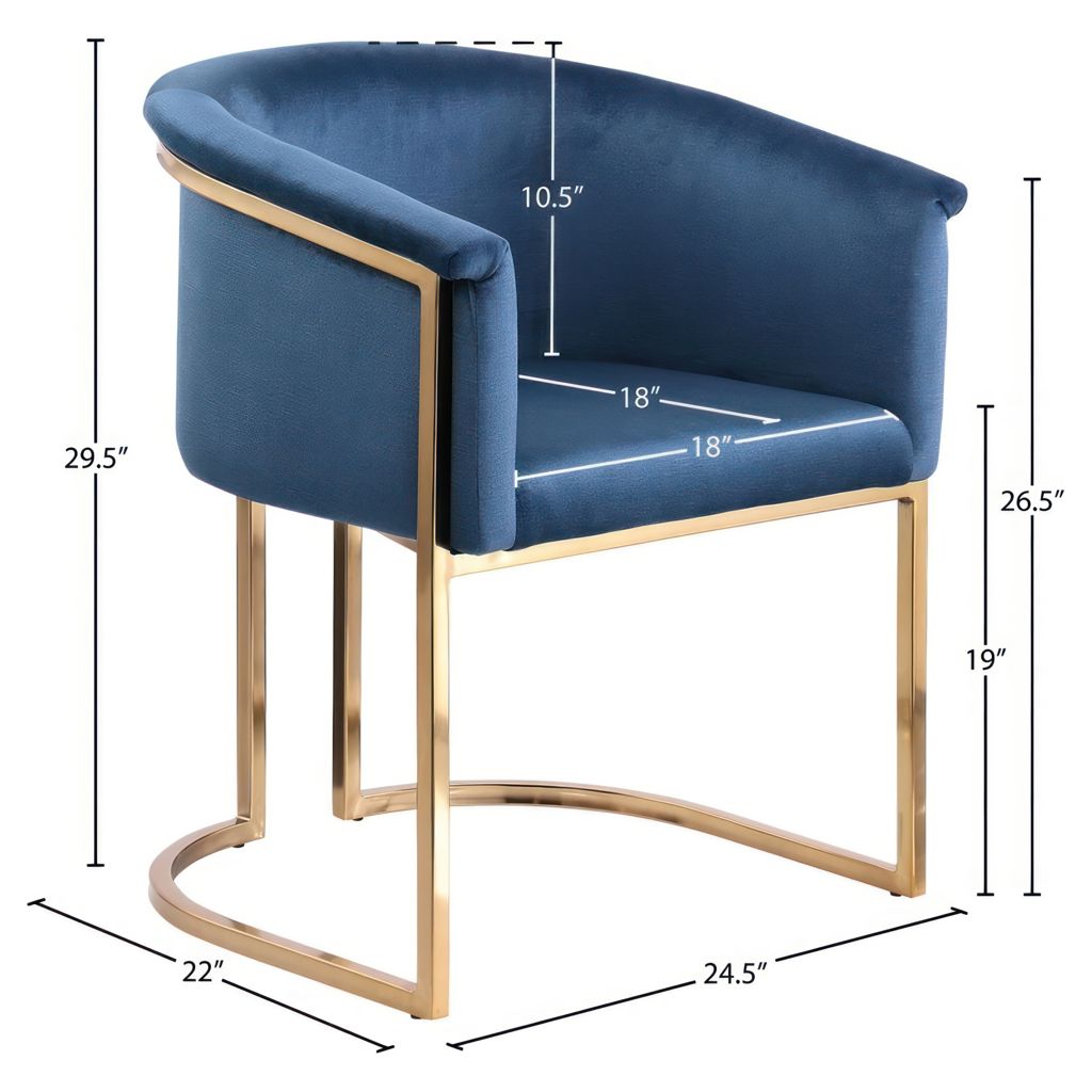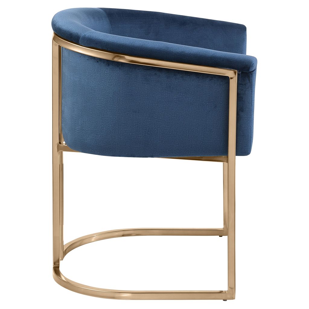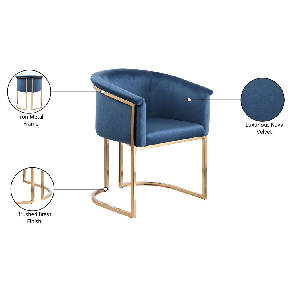 Rich navy velvet covers the seat, arms and back of this comfortable yet beautiful chair.