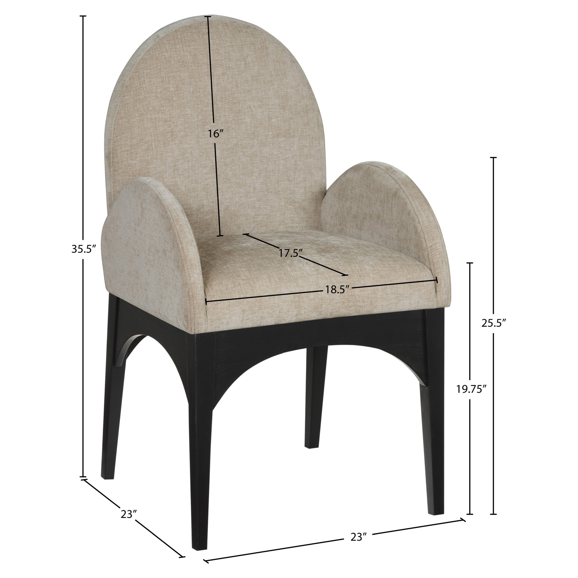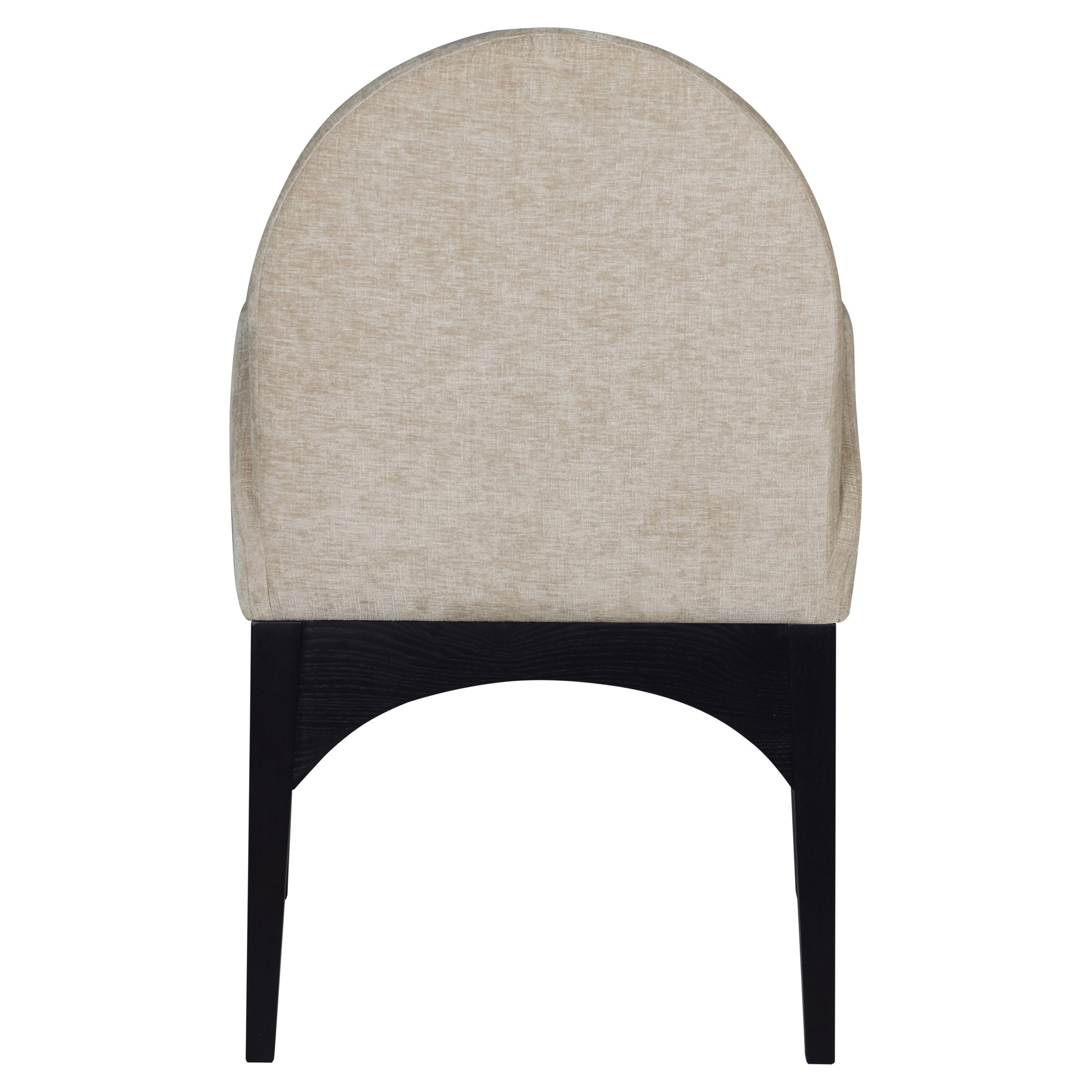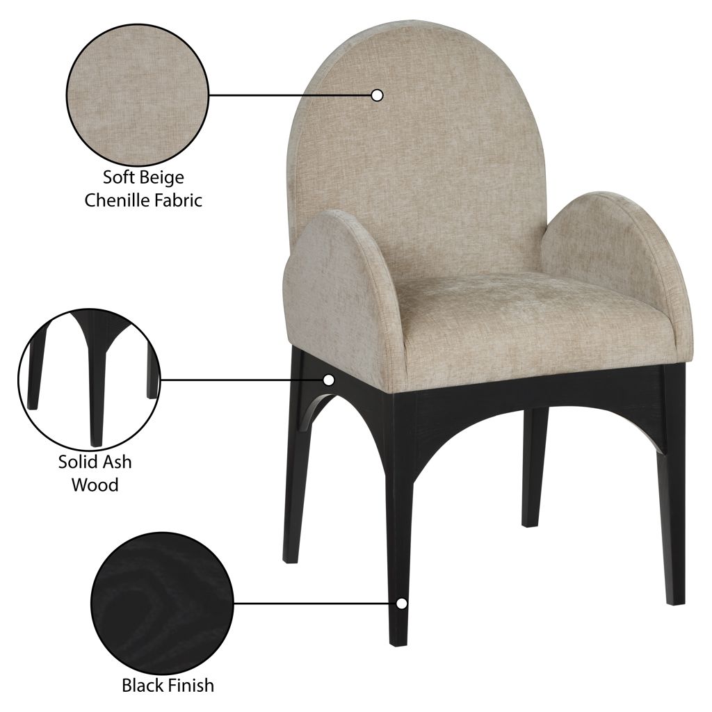 The plush beige chenille fabric on the seat and backrest of the chair offers a soft and cozy seating experience, making it an ideal choice for long dinner conversations with family and friends.