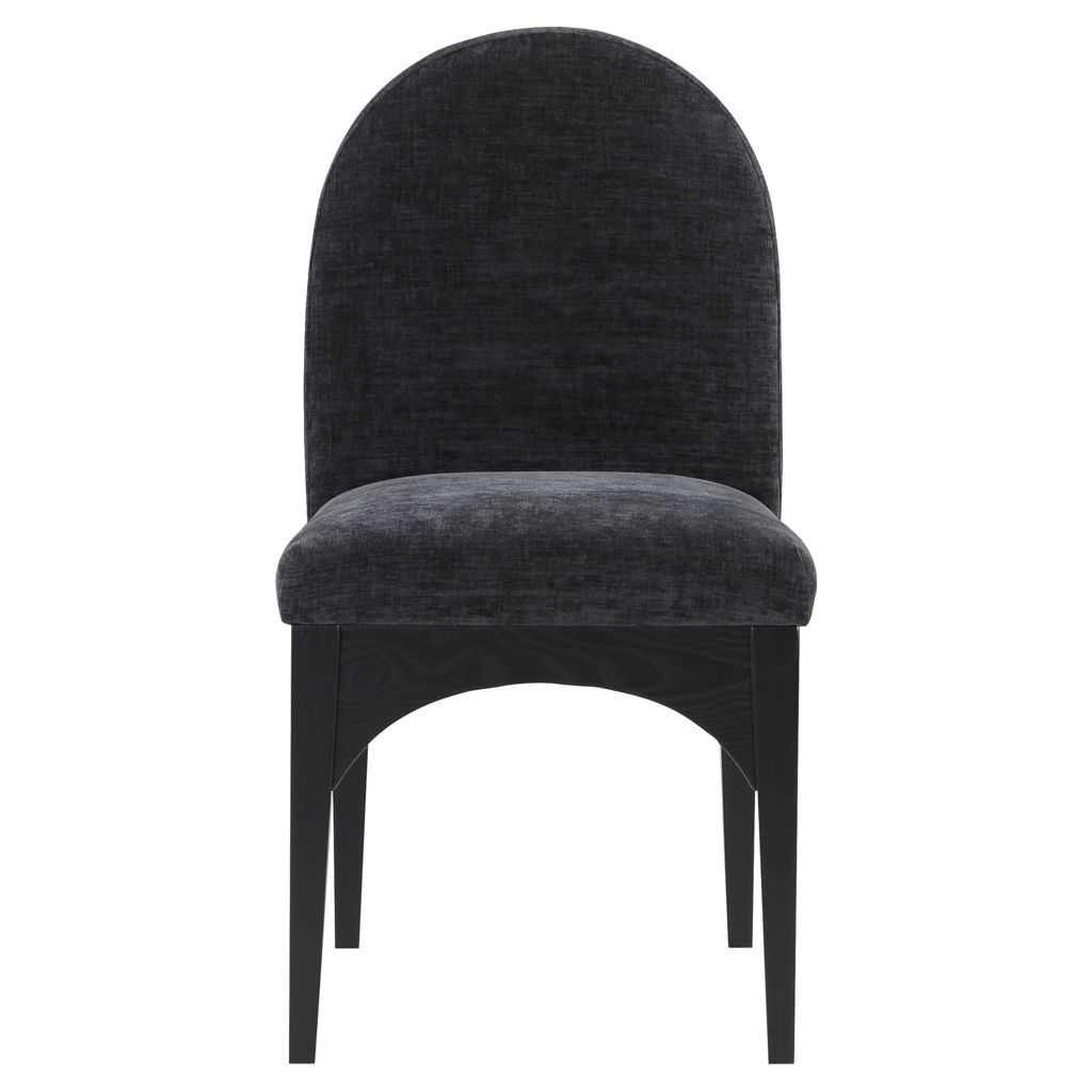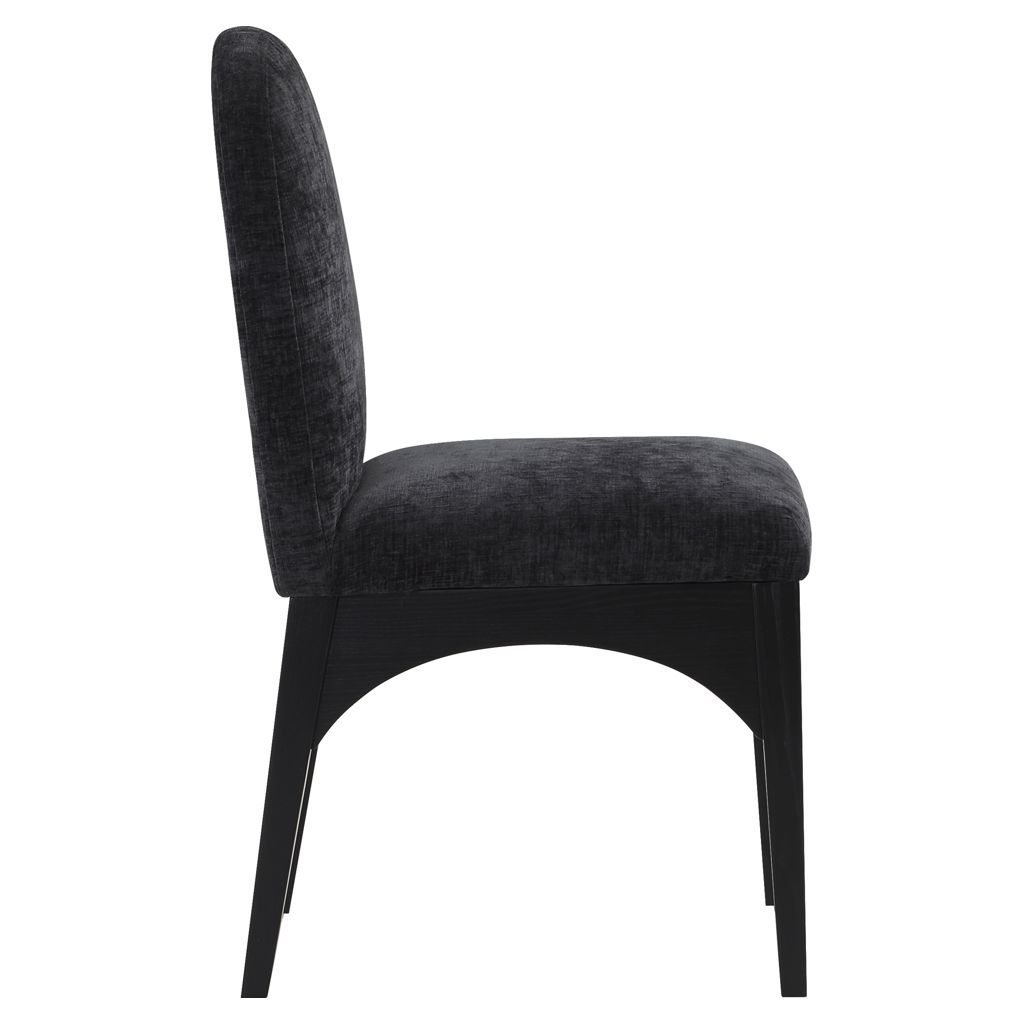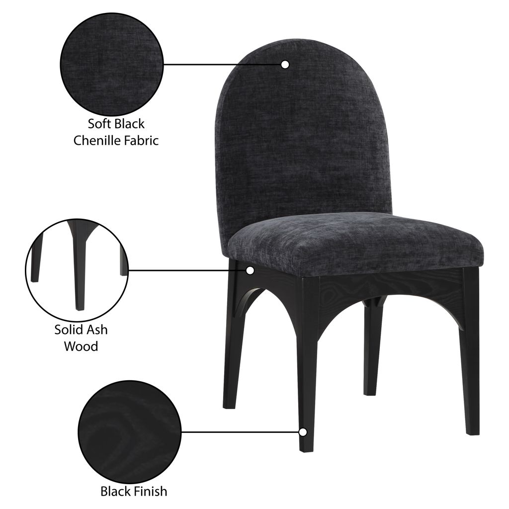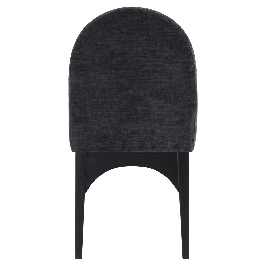 The plush black chenille fabric on the seat and backrest of the chair offers a soft and cozy seating experience, making it an ideal choice for long dinner conversations with family and friends.