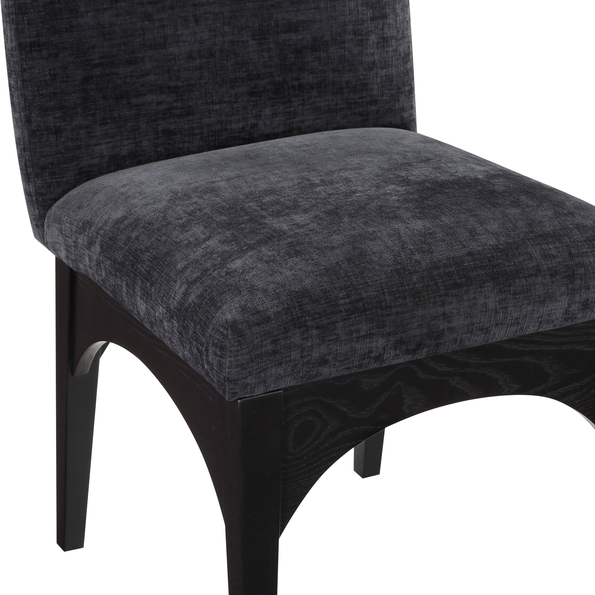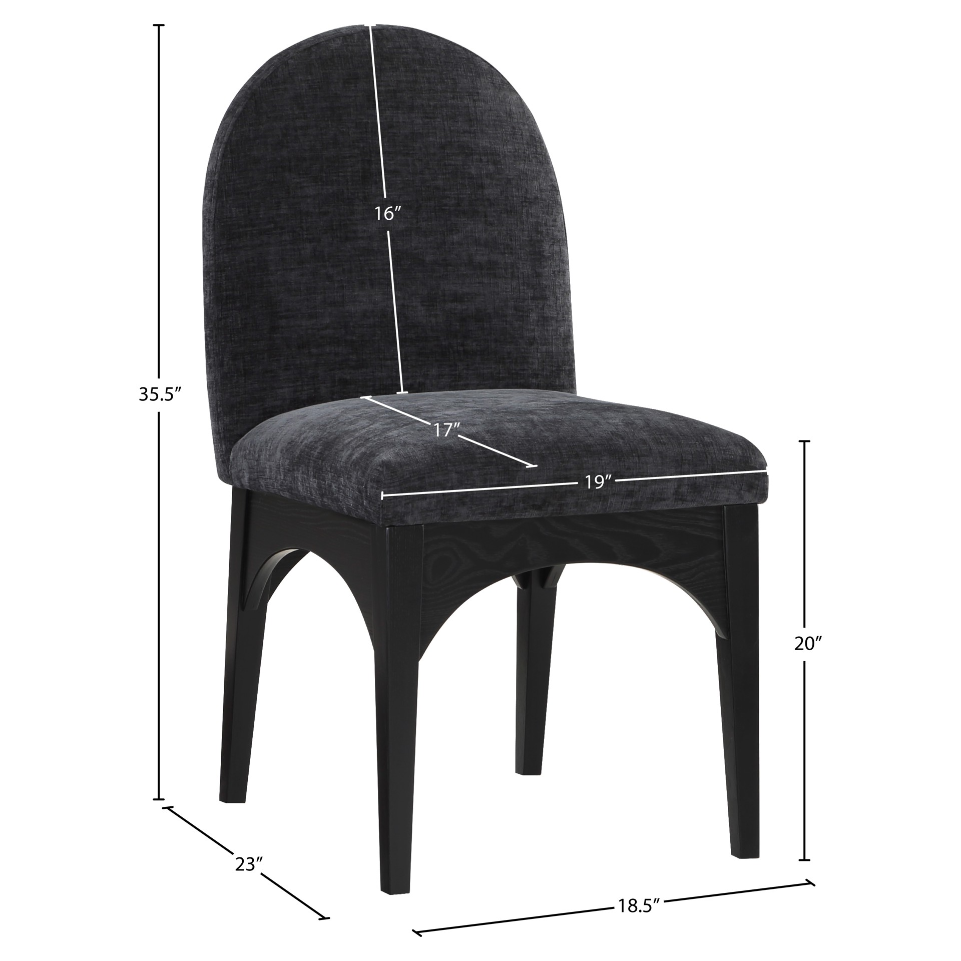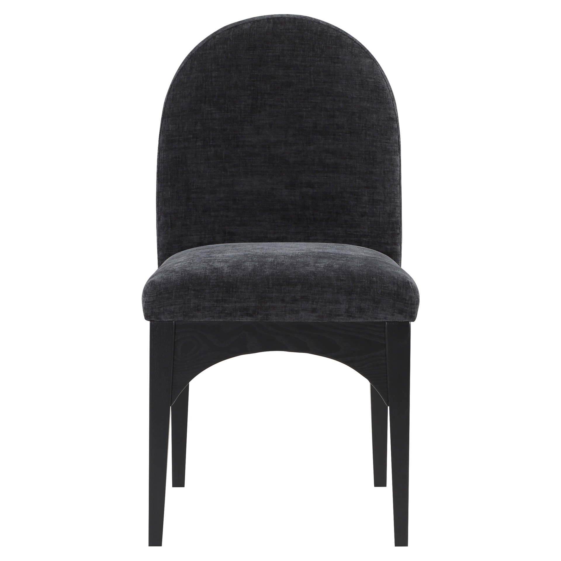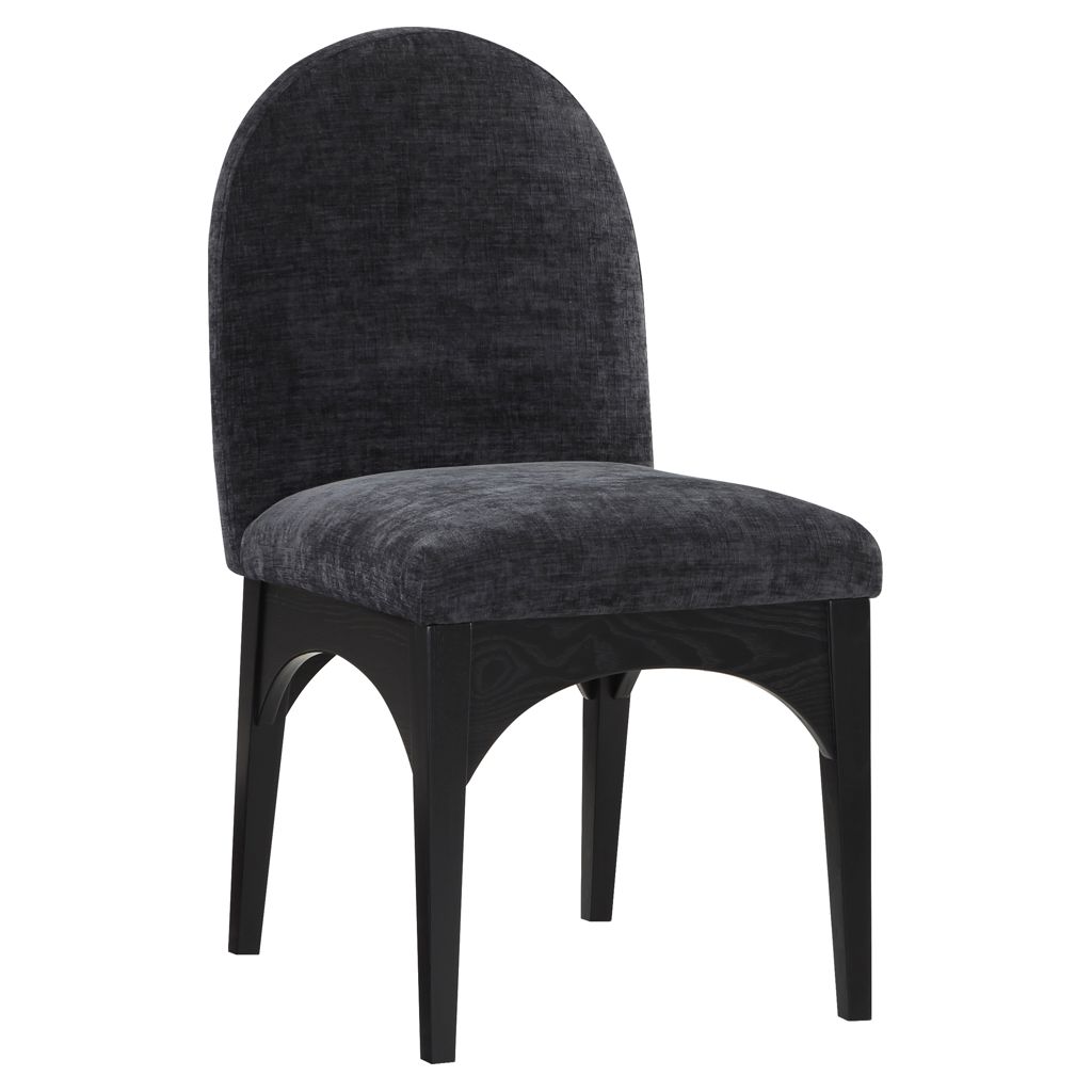 The plush black chenille fabric on the seat and backrest of the chair offers a soft and cozy seating experience, making it an ideal choice for long dinner conversations with family and friends.